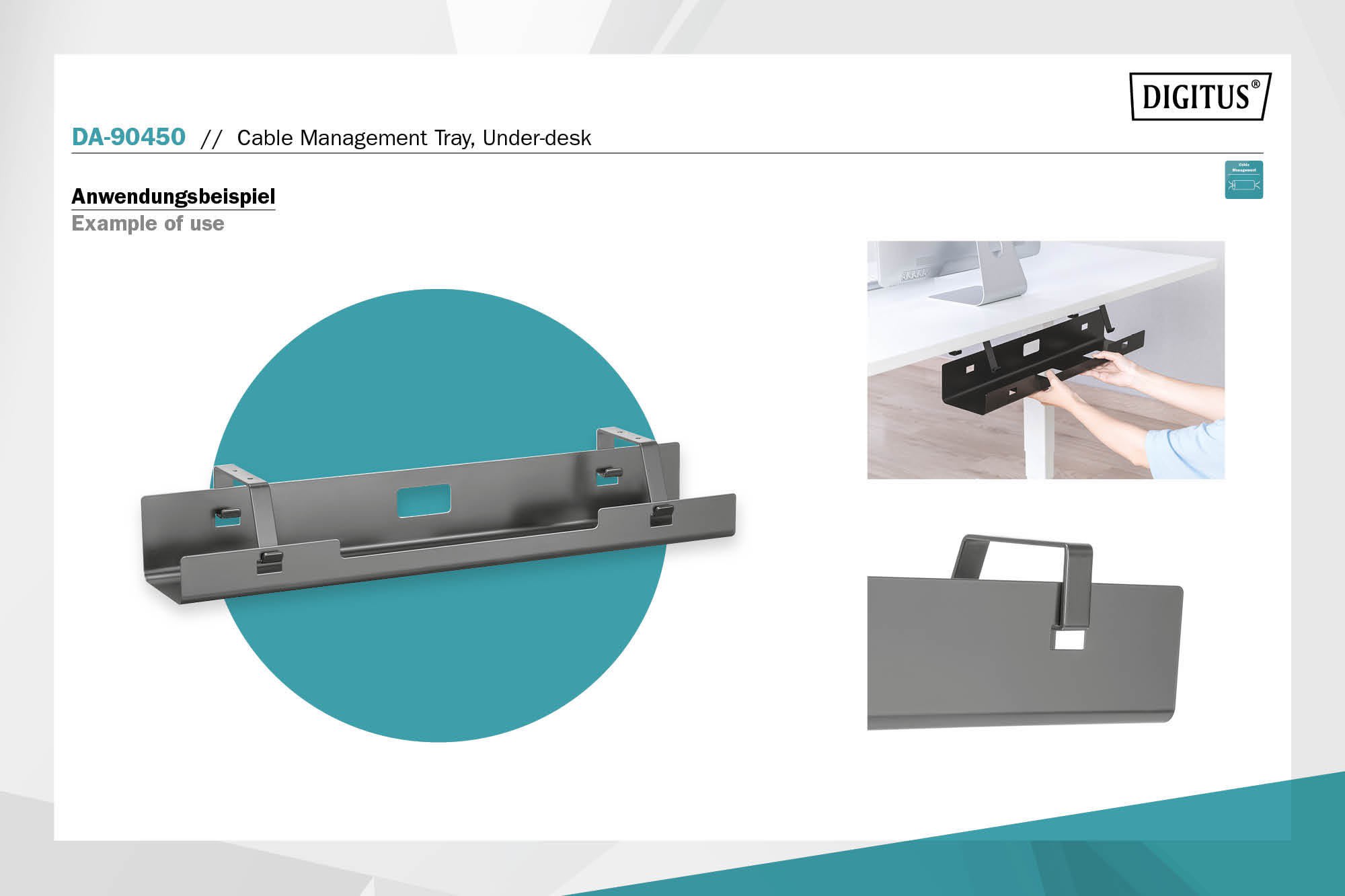 Assmann Electronic - Rail de guidage pour câbles, sous le bureau noir - DA-90450