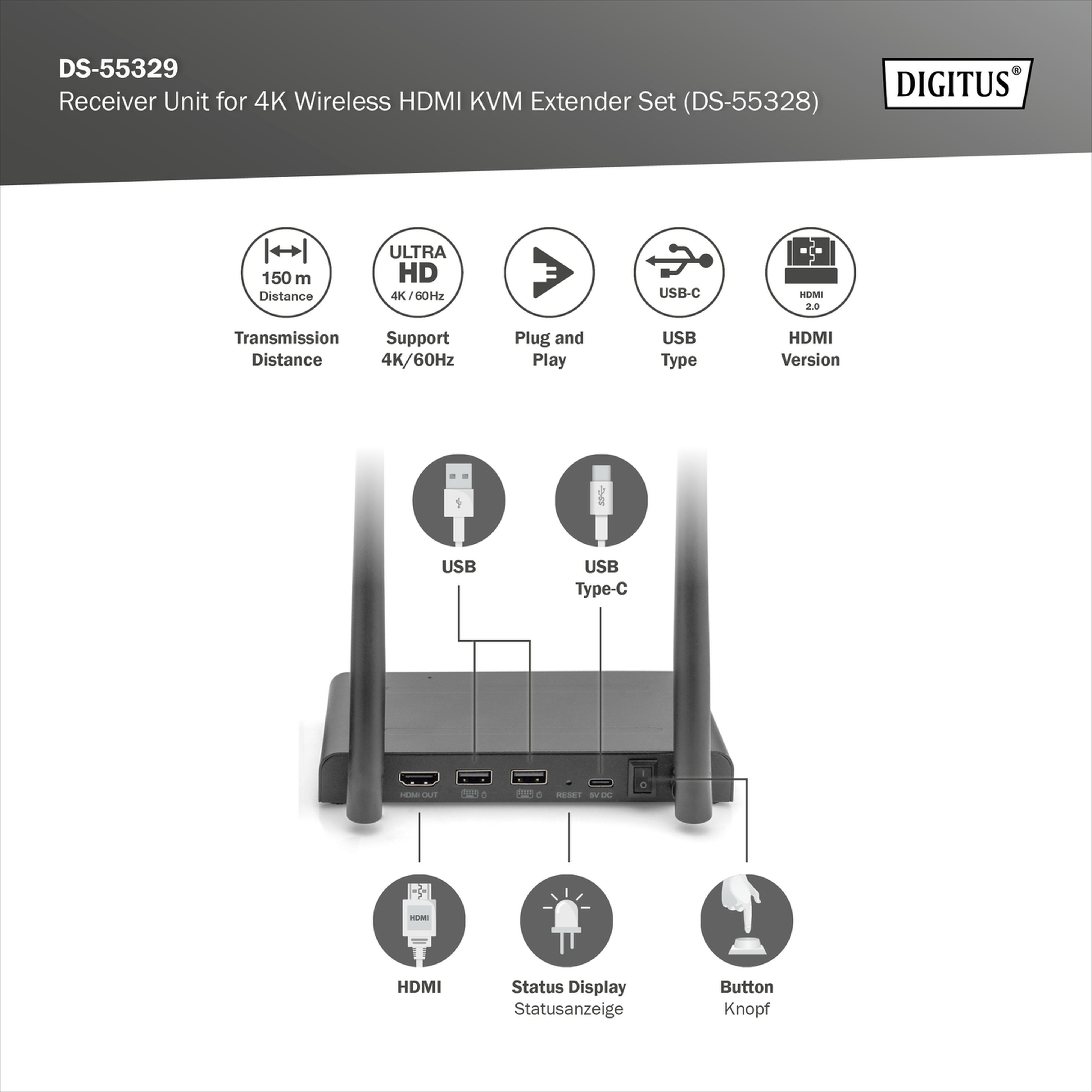 Assmann Electronic - Récepteur HDMI sans fil 4K (RX) unité supplémentaire pour DS-55328 - DS-55329