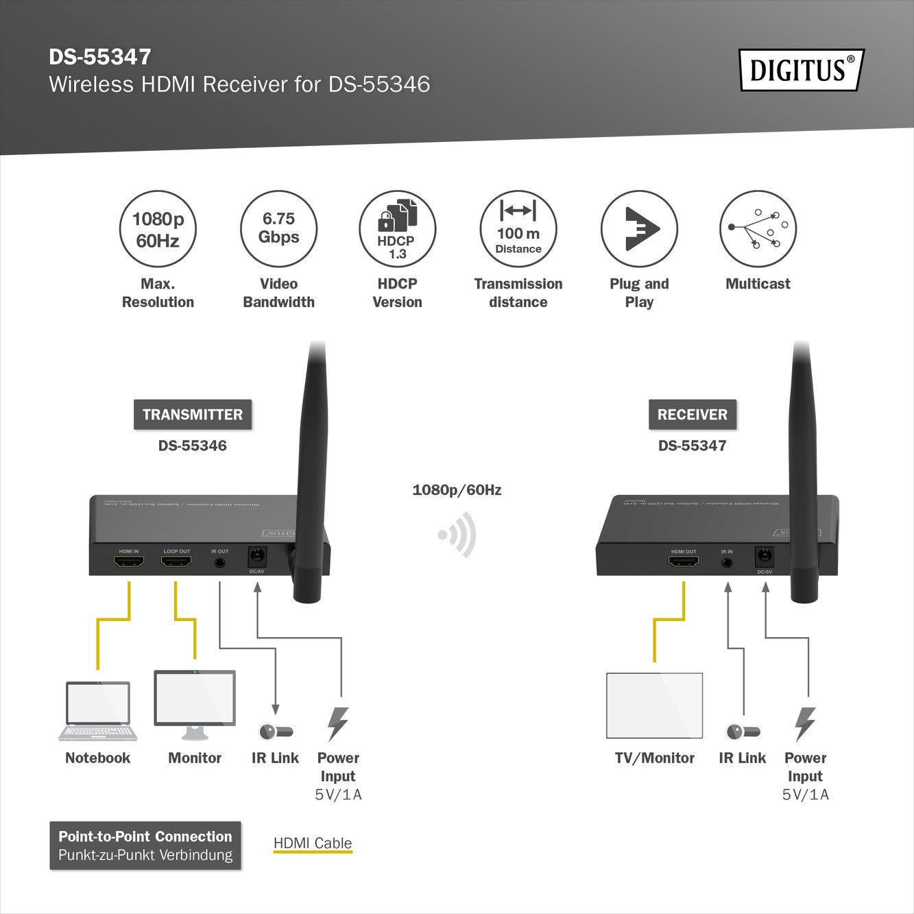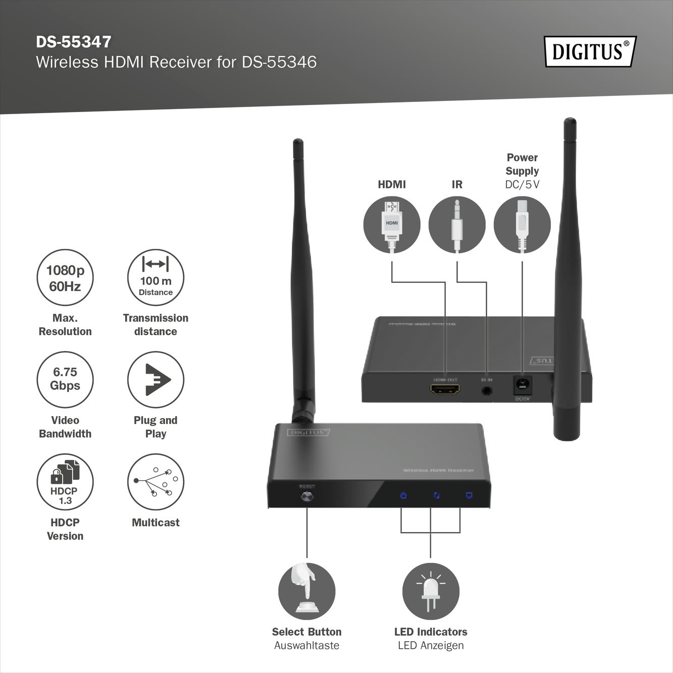 Assmann Electronic - Récepteur HDMI sans fil pour DS-55346 Full HD - DS-55347