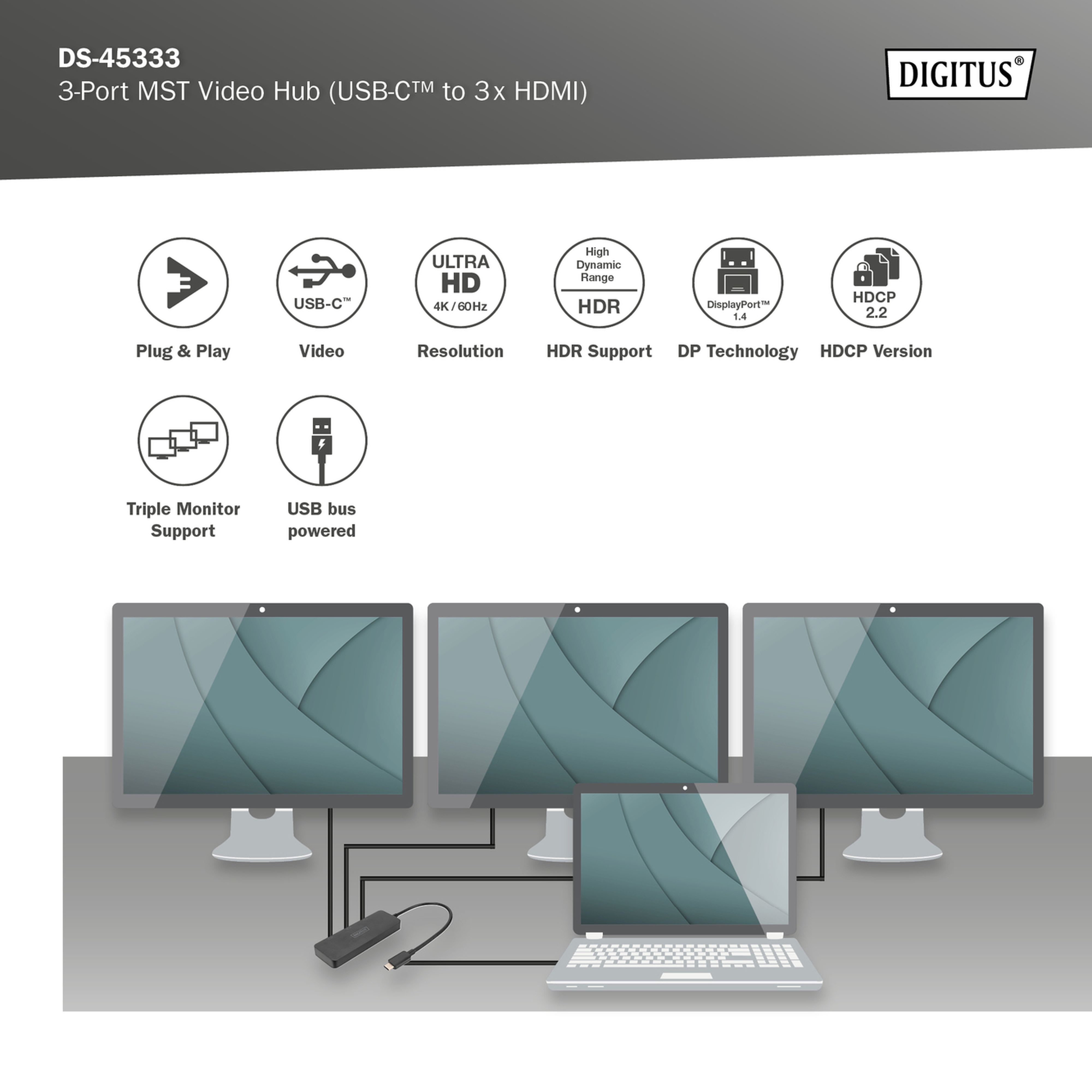 Assmann Electronic - Répartiteur vidéo 8K, 3 ports USB-C vers 3x HDMI MST oir - DS-45333