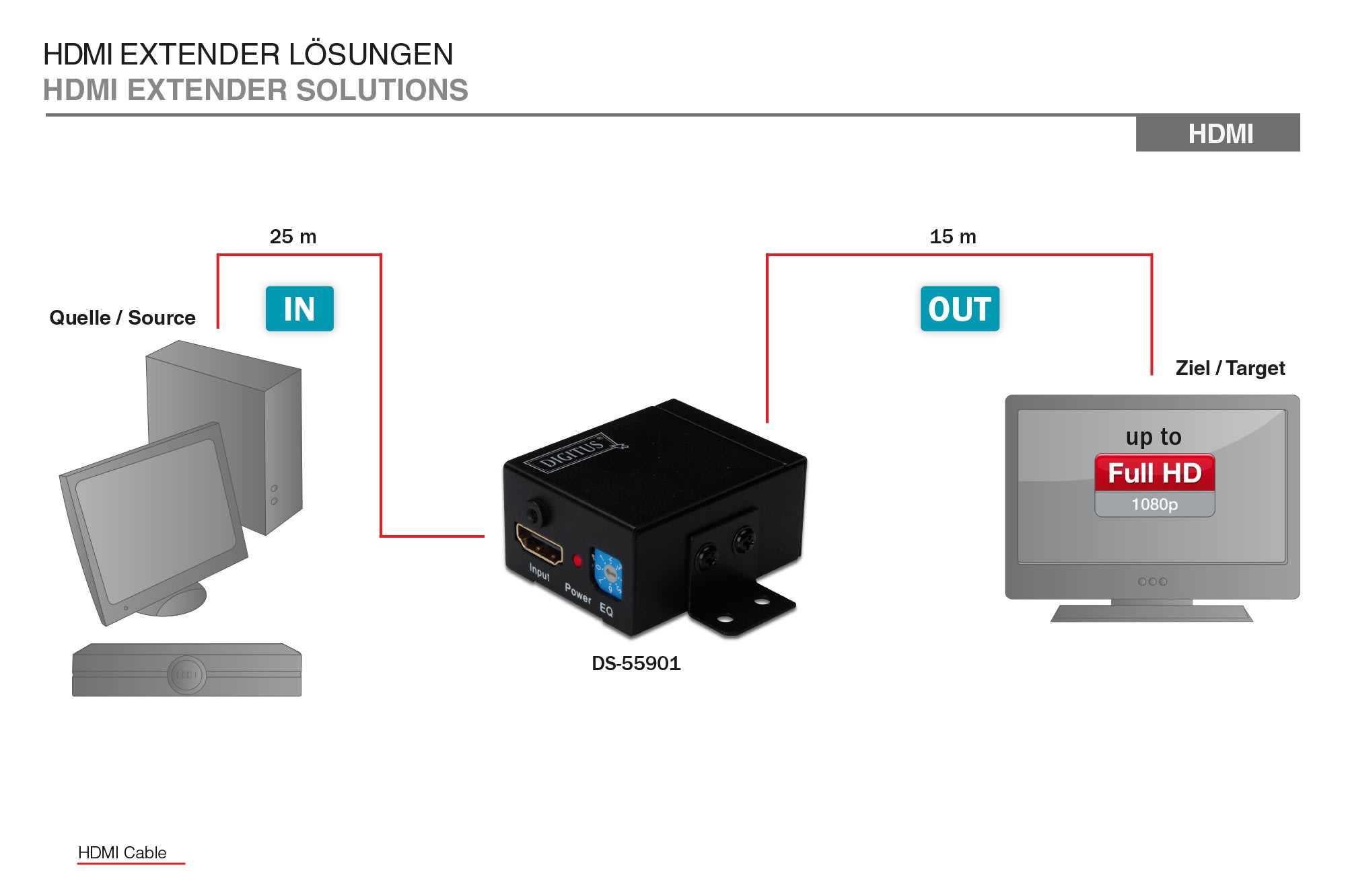 Assmann Electronic - Répéteur HDMI Full HD 1080p Largeur de bande 225MHz avec fixation murale - DS-55901
