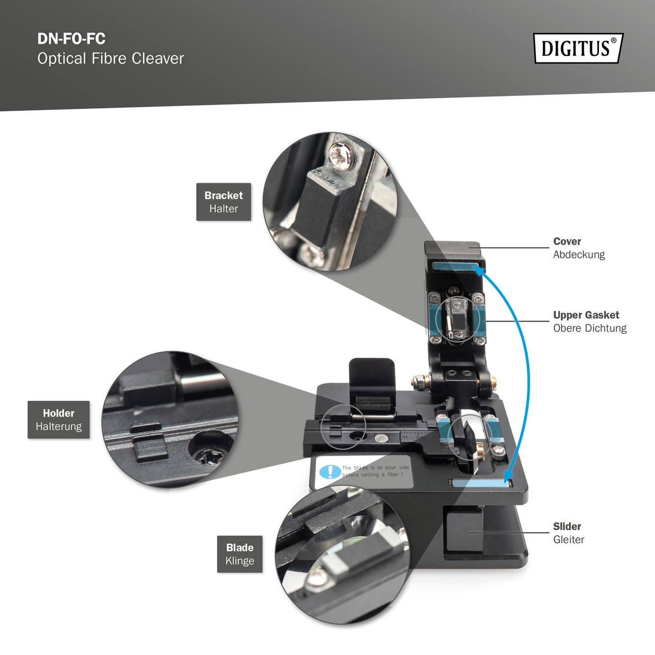 L'appareil permet de préparer les fibres optiques en une seule étape pour les épissures ou les procédés de montage mécanique. Grâce au mécanisme de séparation semi-automatique, les résidus sont directement évacués après la coupe.
