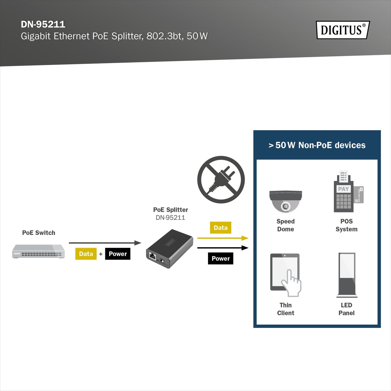 Assmann Electronic - Splitter PoE Gigabit Ethernet, 802.3af/at/bt, sortie : 12V/4,2A,24V/2,1A, 50W - DN-95211