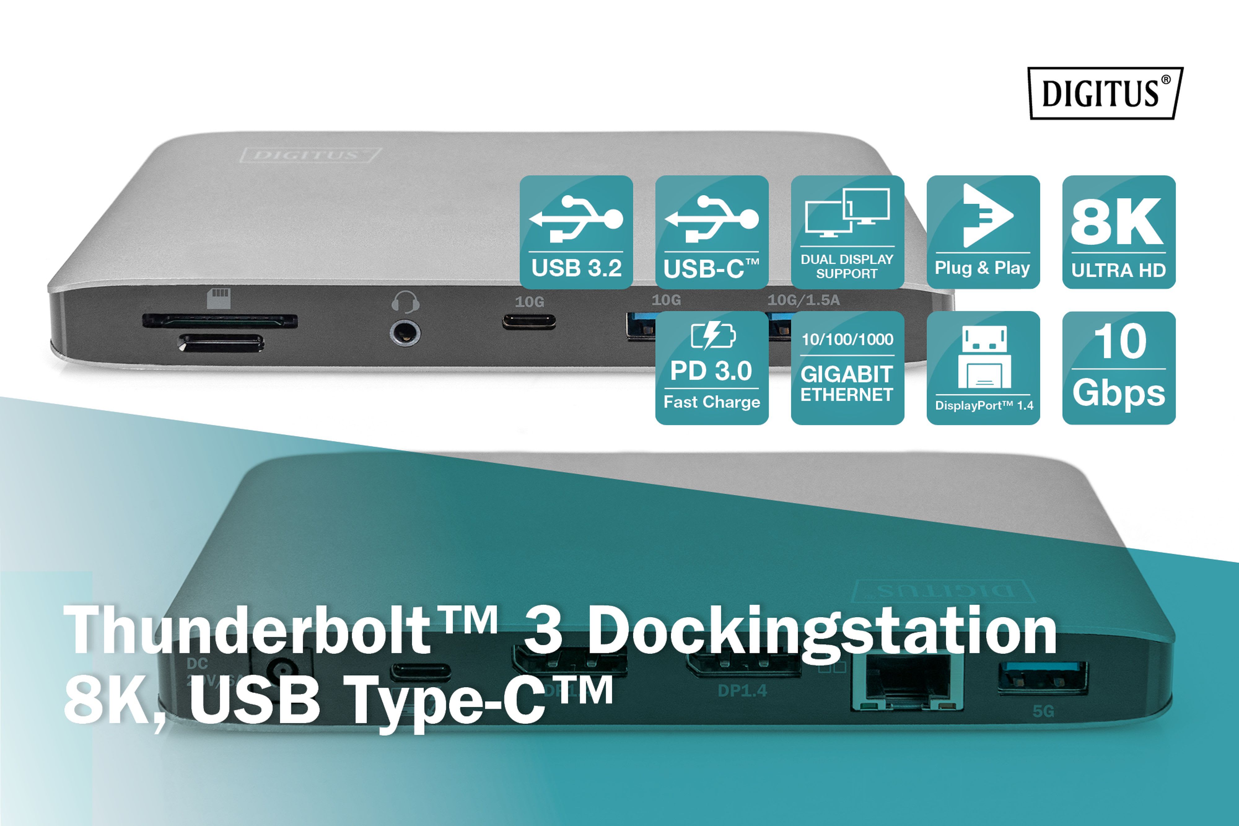 Assmann Electronic - Station d'accueil Thunderbolt 3 8K USBC 2xvidéo 3xUSB3 1xUSBC RJ45 audio - DA-70895
