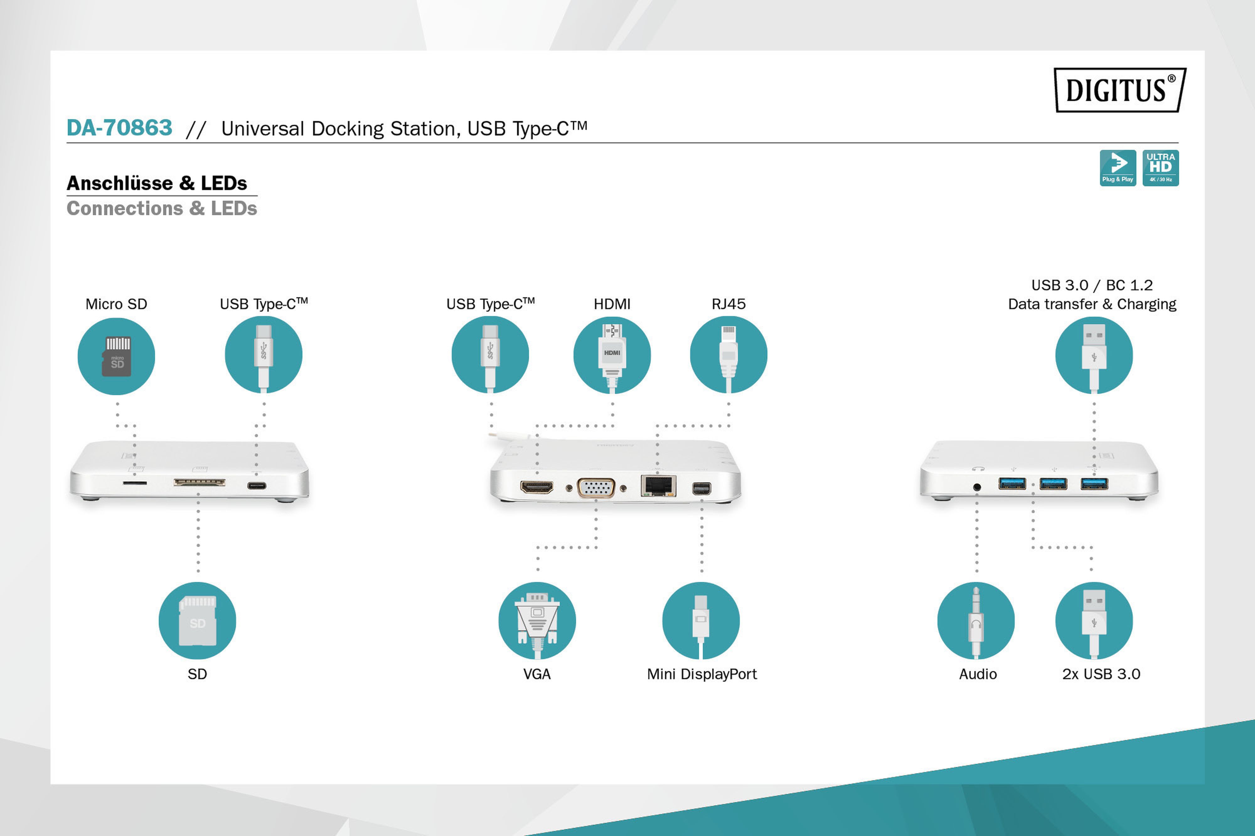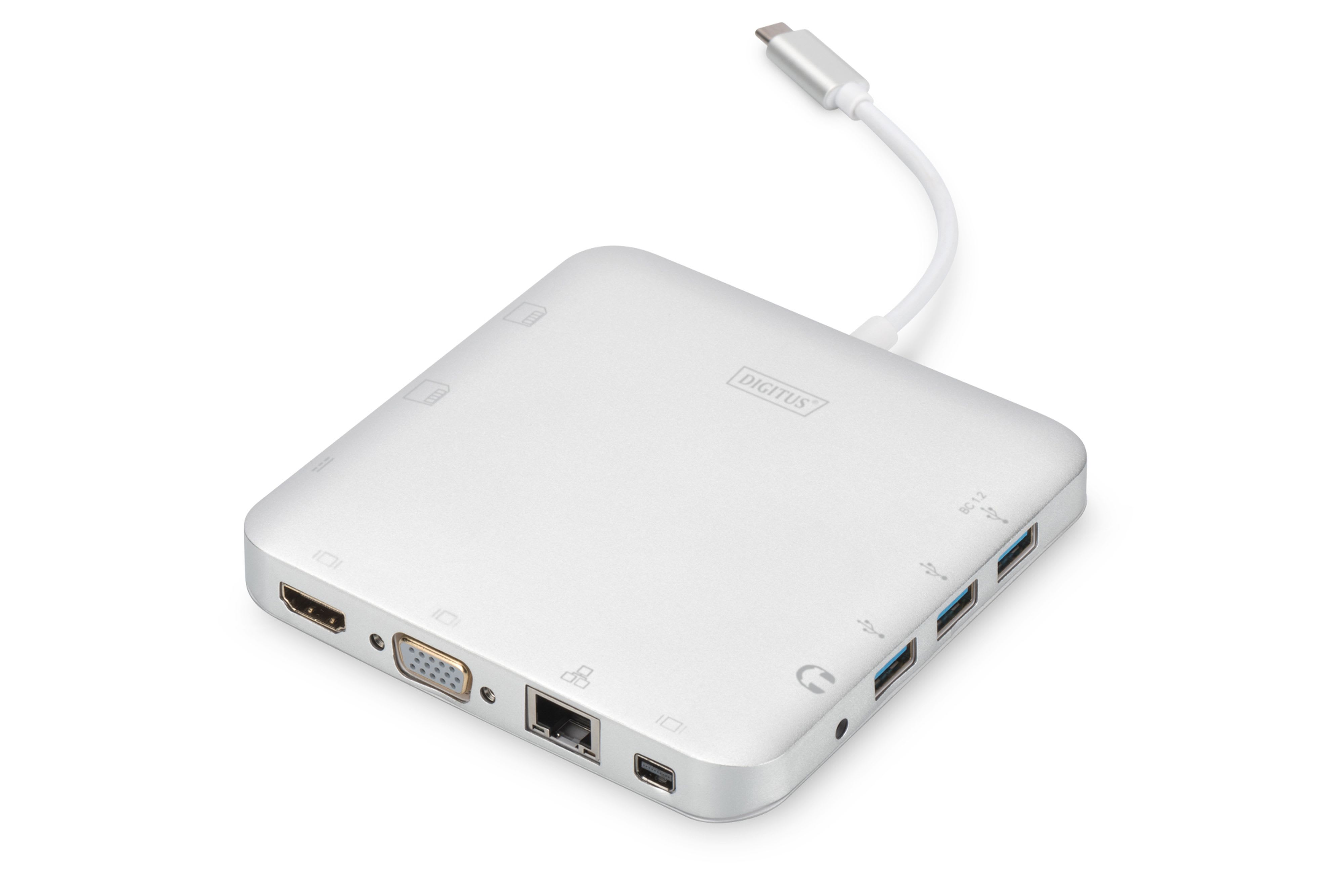 Assmann Electronic - Station d'accueil USBC 11 ports 3xvidéo 1xUSBC 3xUSB3 RJ45 2xlecteur de cartes - DA-70863
