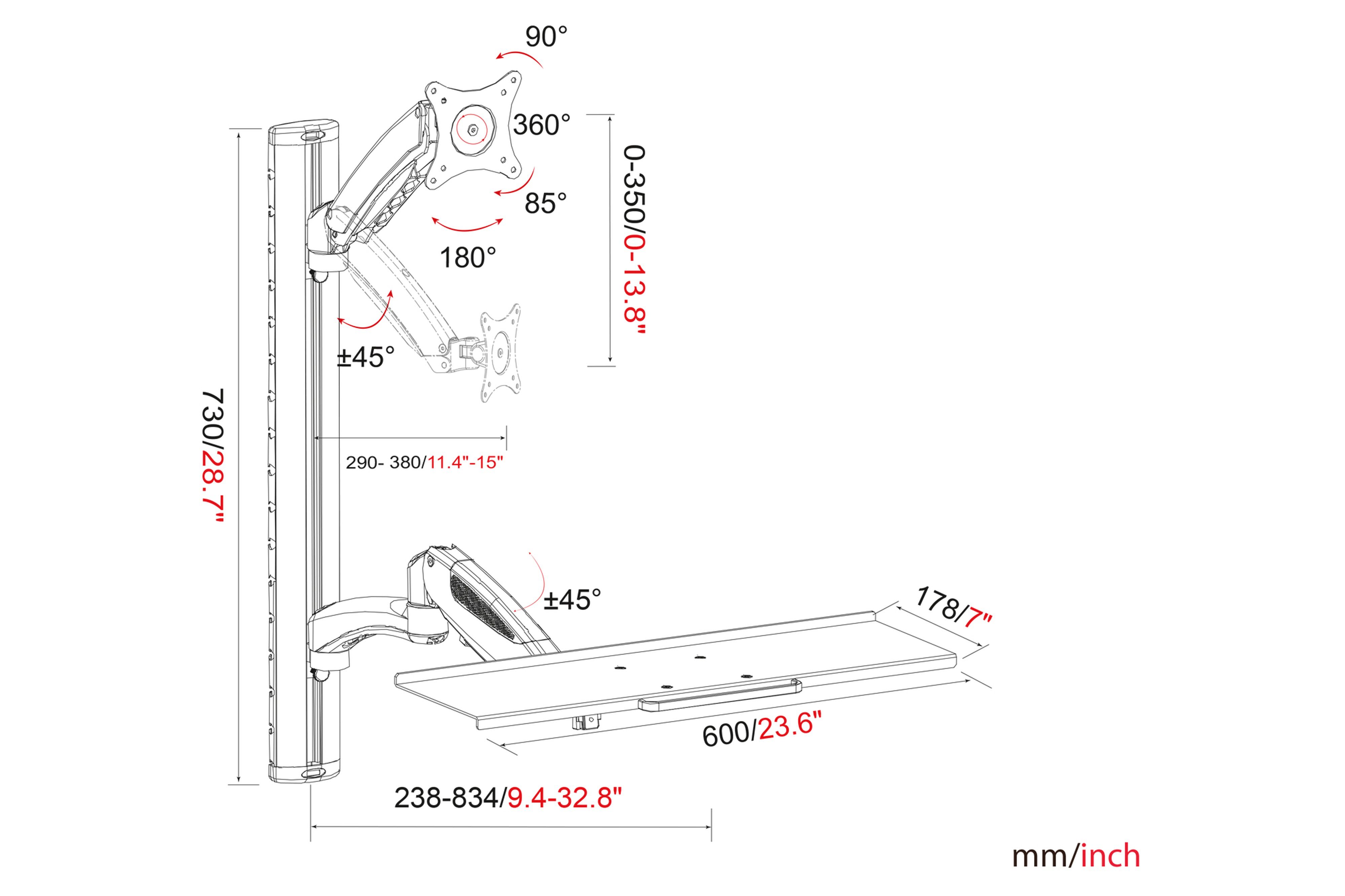 Support universel pour fixer l’écran et le clavier au mur avec un réglage en hauteur flexible