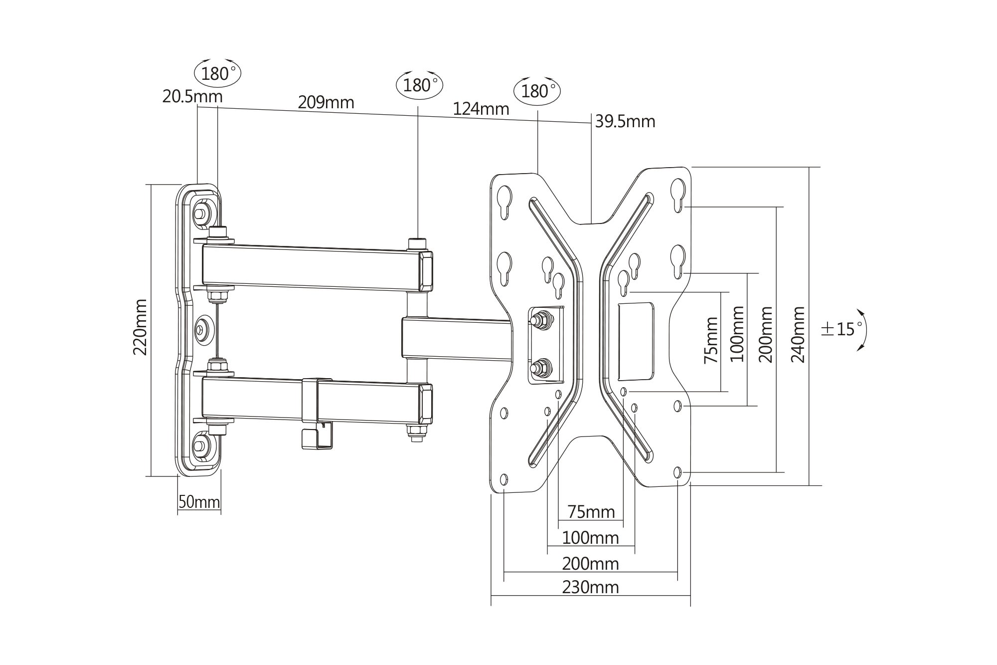 Assmann Electronic - Support 3D TV/écran max 107cm 42", 15ø, 180ø pivot, max 30kg, VESA 200x200 - DA-90357