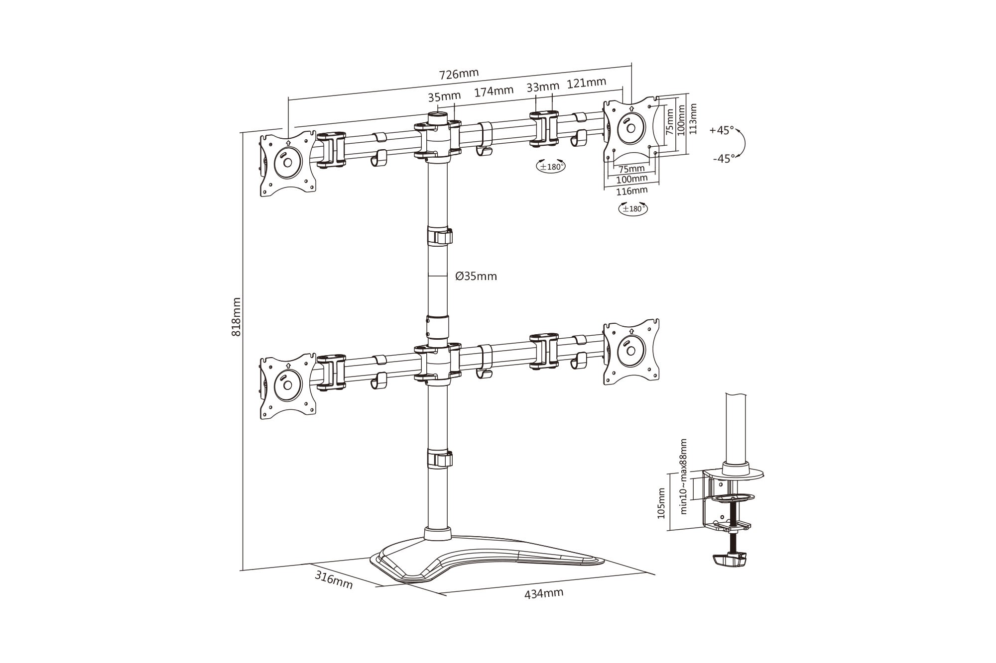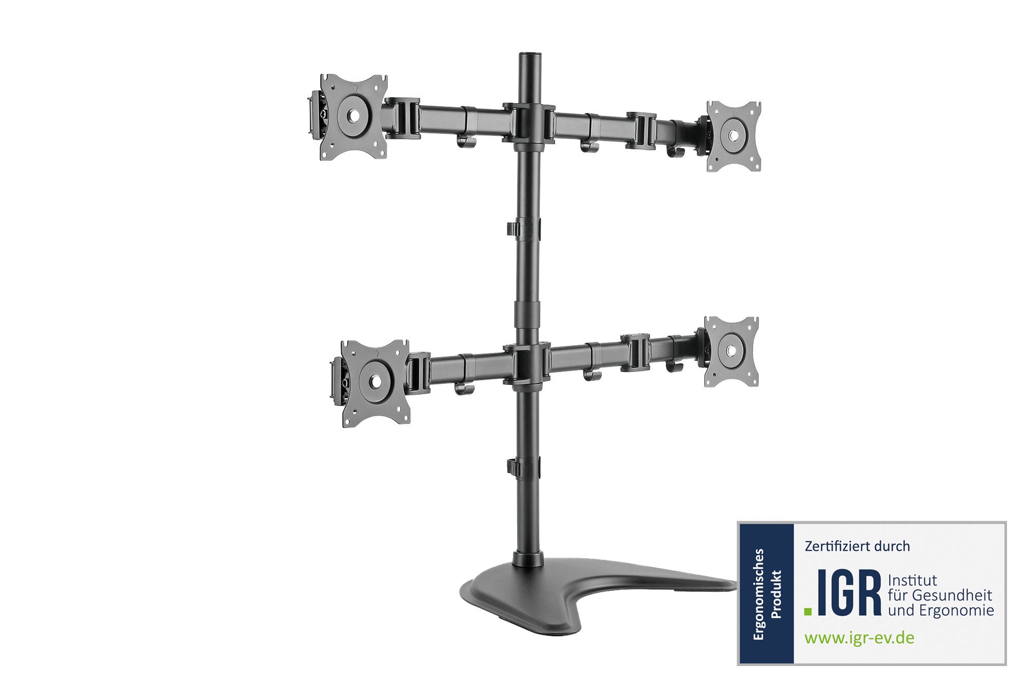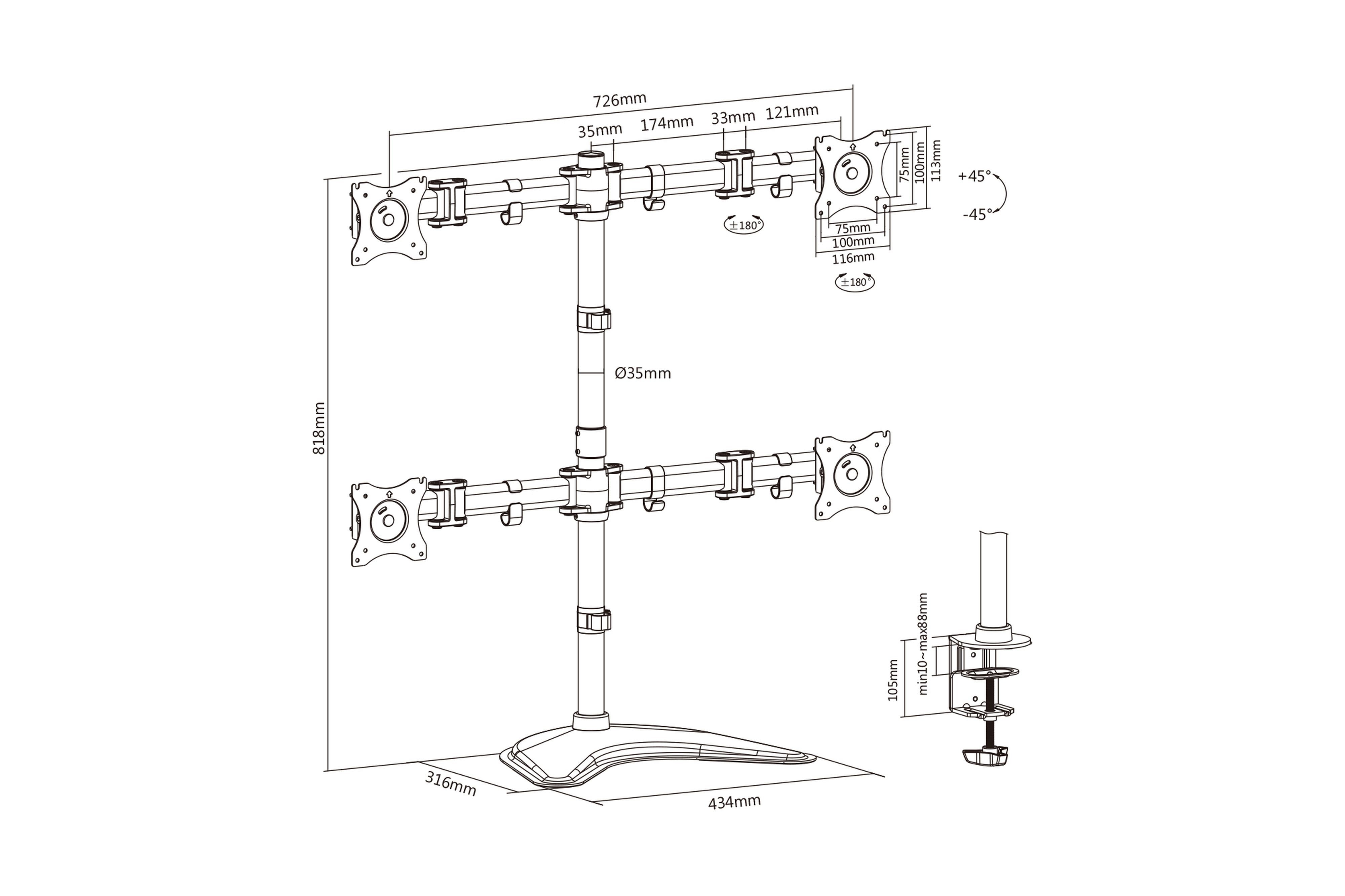 Assmann Electronic - Support 4 écrans universel avec fixation pince, noir 15-27", 4x8Kg VESA 100x100 - DA-90364