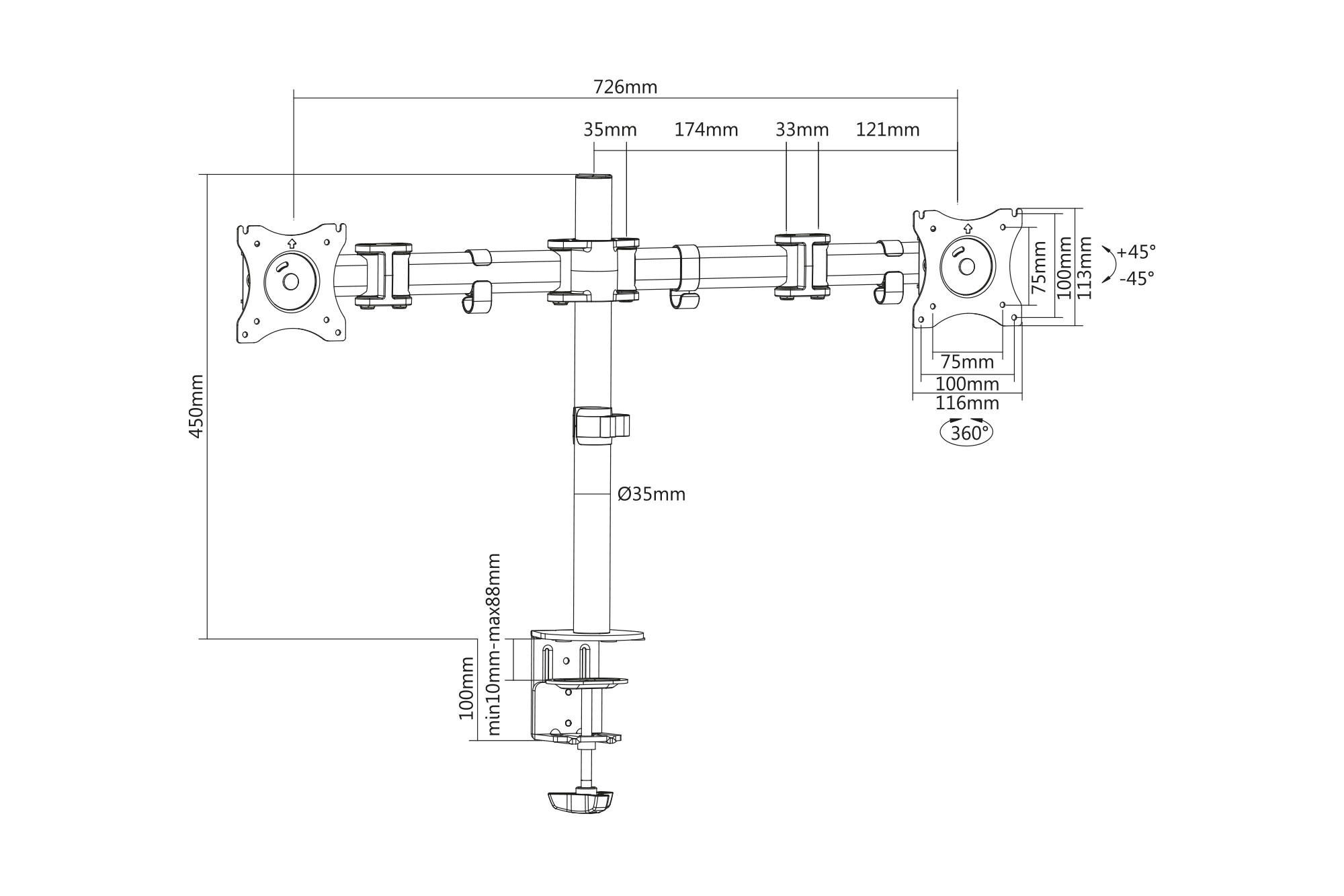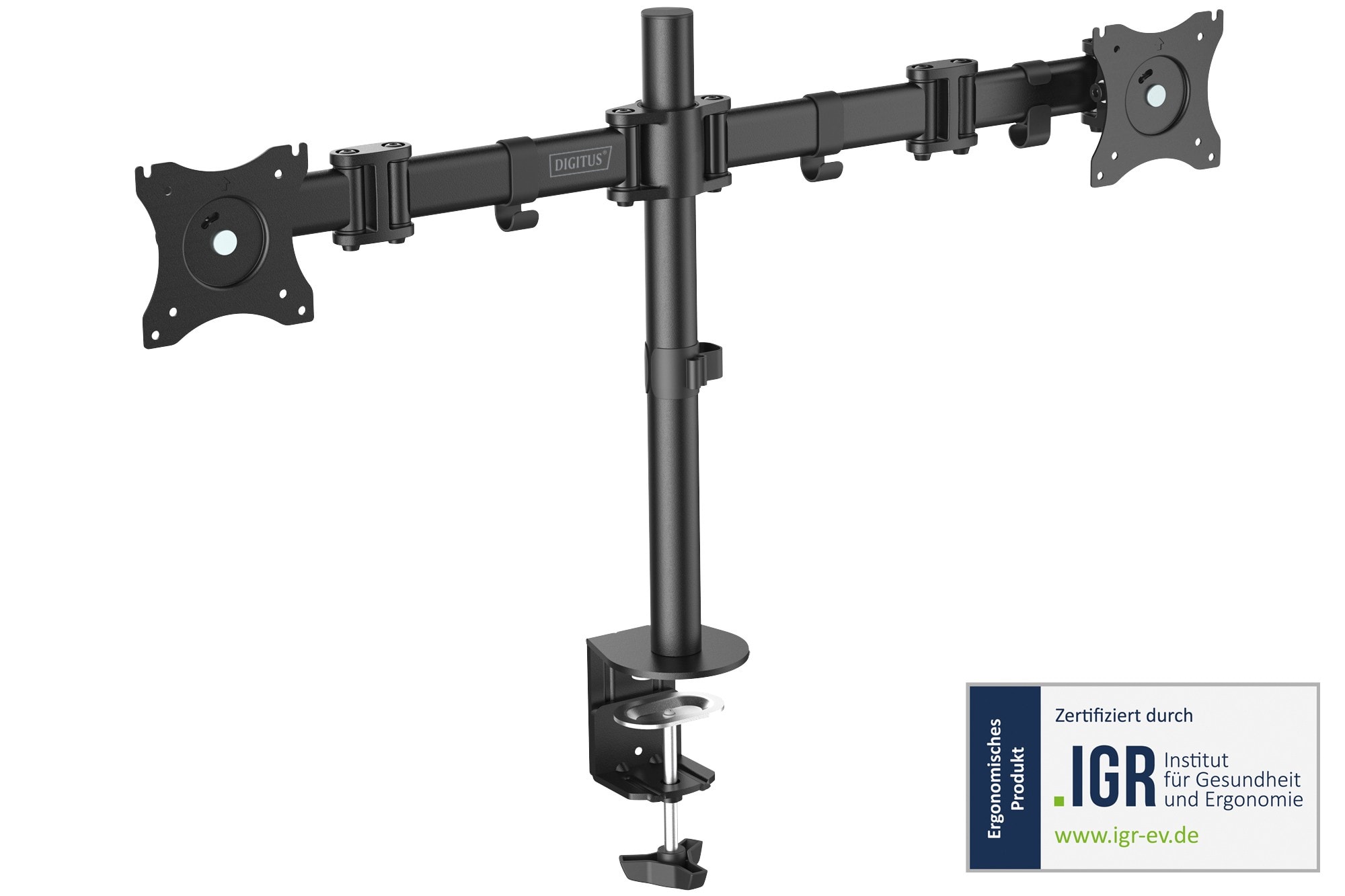 Assmann Electronic - Support bi-écran avec fixation par serrage, 15-27" noir, 2x8 kg VESA 100x100 - DA-90349