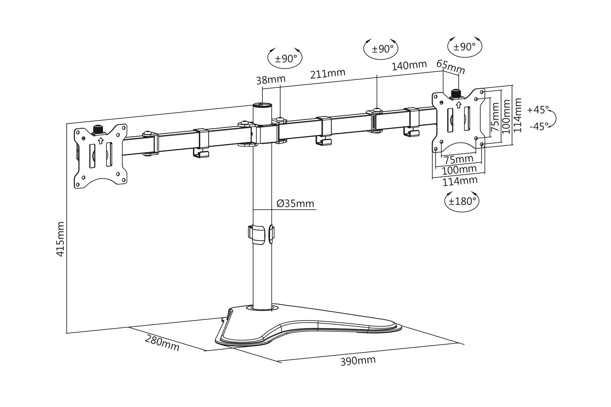 Le socle pour double écran vous offre la possibilité d'orienter des écrans de 15 à 32". Il est possible de faire pivoter l'écran, de l'incliner, de le tourner et de régler sa hauteur. Avec fonction Quick-Release pour un montage simple.