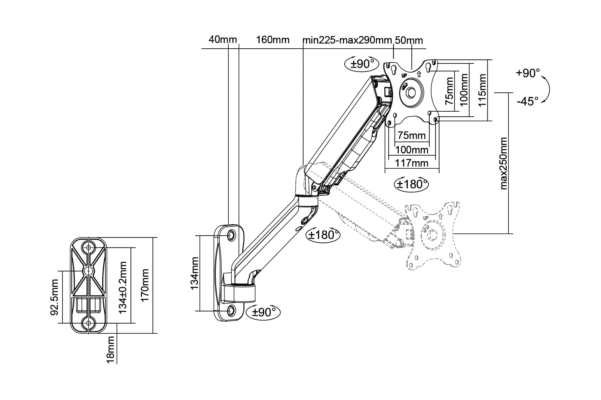 Assmann Electronic - Support mural écran avec ressort à gaz et bras pivotant 32", 9 kg max., noir - DA-90425