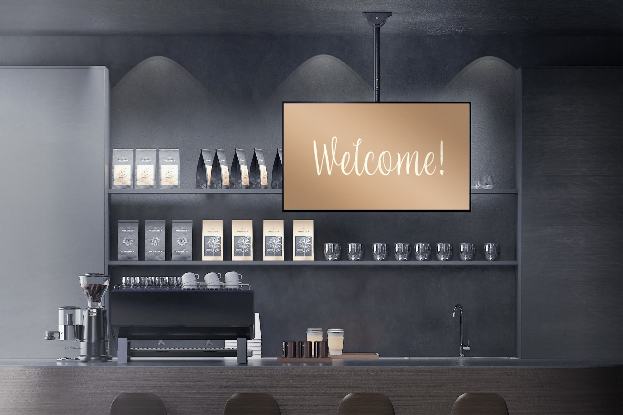 Support plafond réglable pour écrans plats et incurvés jusqu'à 70 pouces / 50 kg, réglable en hauteur