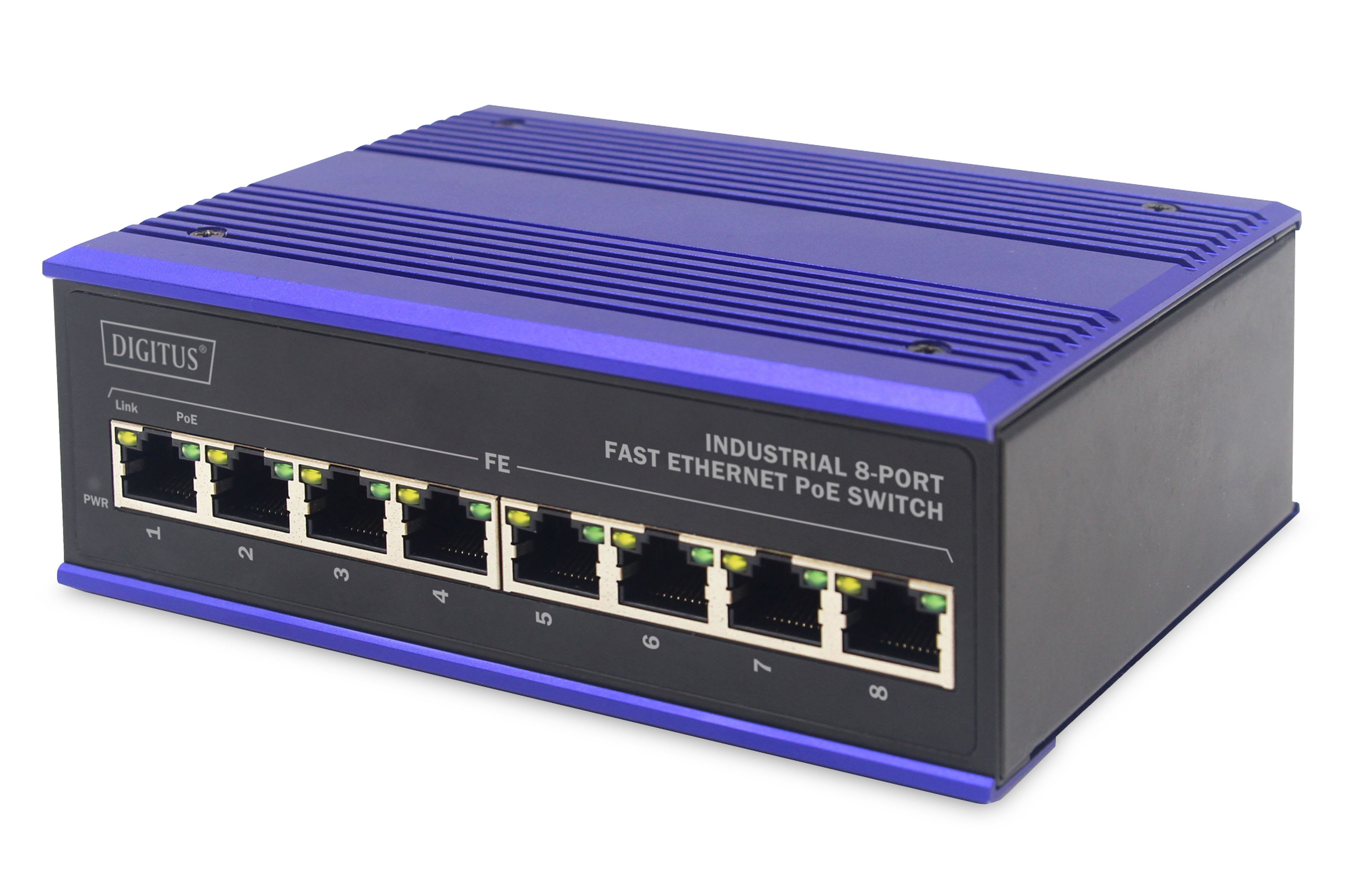 Assmann Electronic - Switch ind. 8 ports Fast Ethernet PoE DIN rail, plage de température étendue - DN-650108