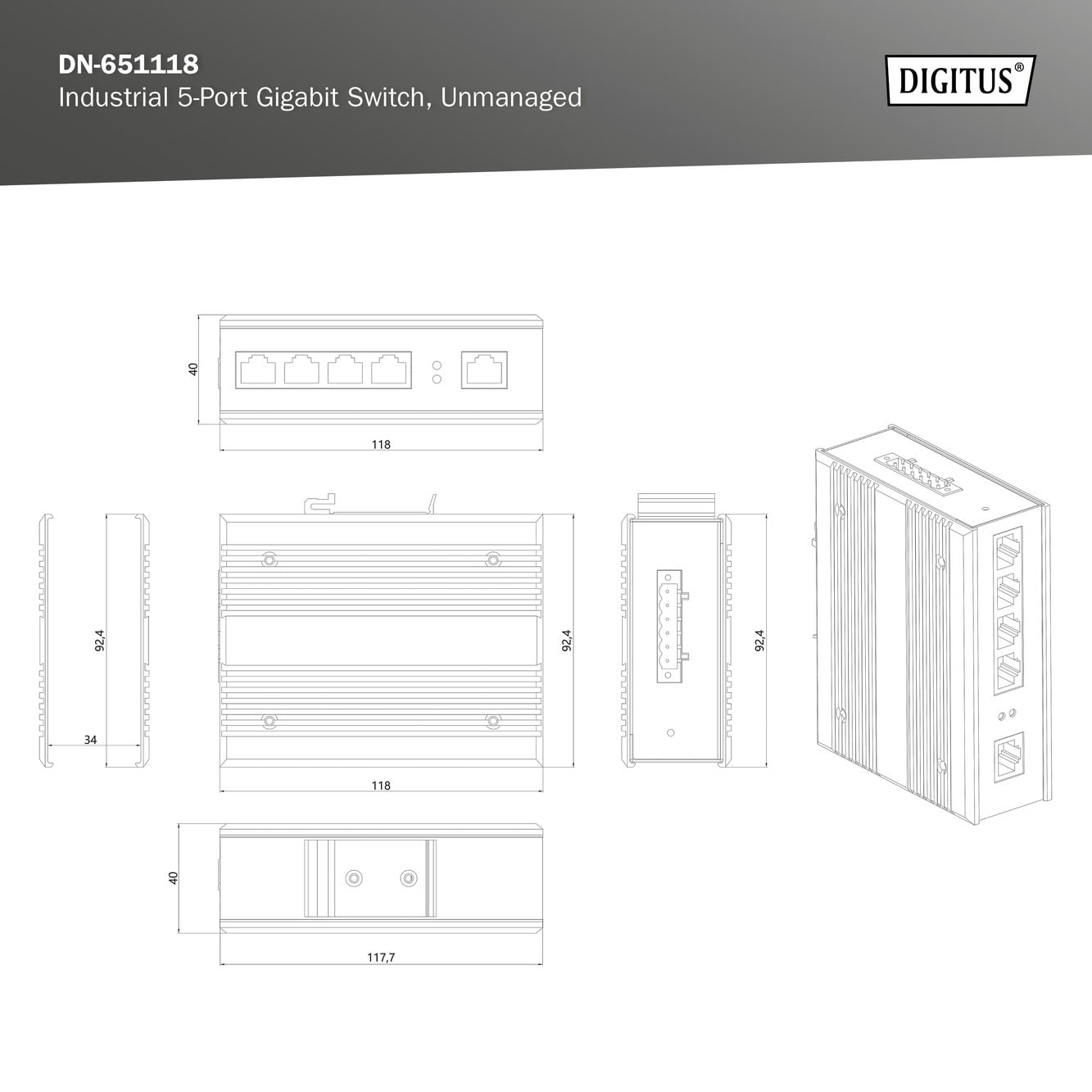 Assmann Electronic - Switch industriel 5 ports Gigabit DIN rail, plage de température étendue - DN-651118