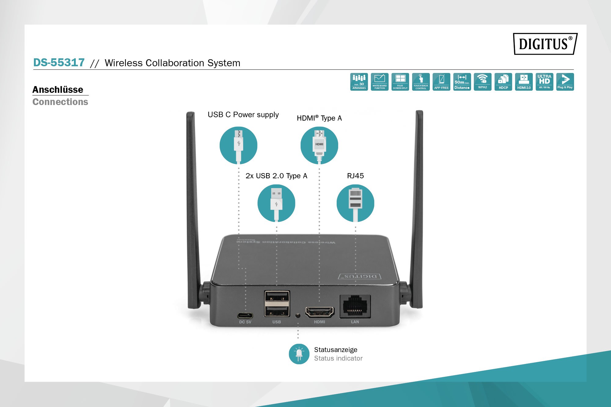 Assmann Electronic - Système de collaboration complet sans fil Click & Present Pro HDMI, 2xTX, 1xRX - DS-55317