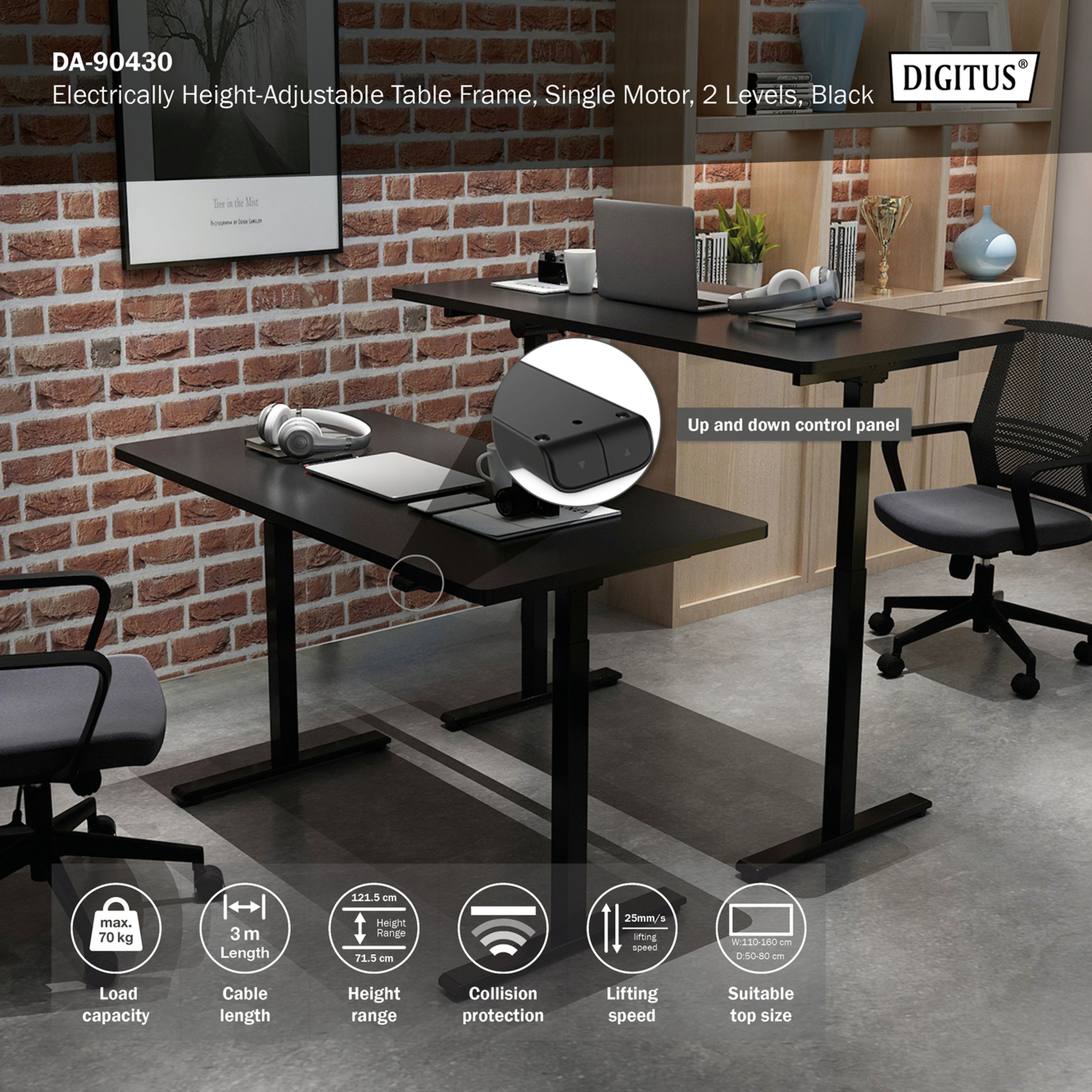 Assmann Electronic - Table réglable en hauteur électriquement, 1 moteur, 2 vitesses, noir - DA-90430