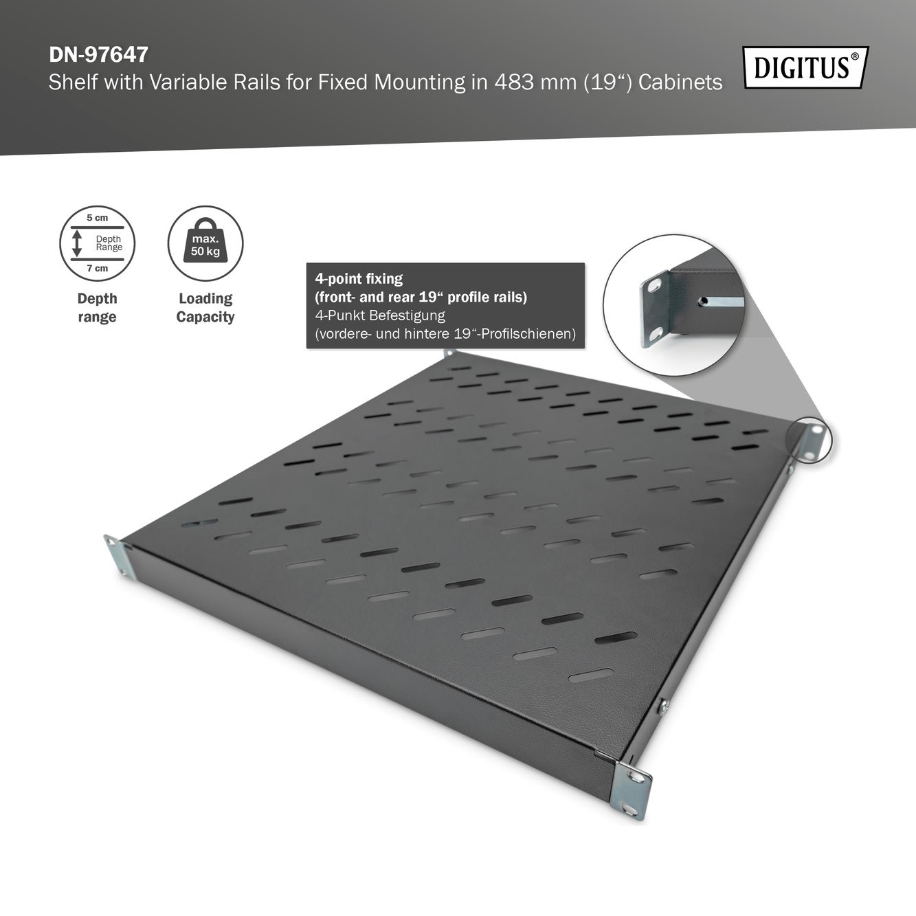 Assmann Electronic - Tablette 1U fixe 800mm profondeur 44x482x500mm 500 à 700 mm noir - DN-97647