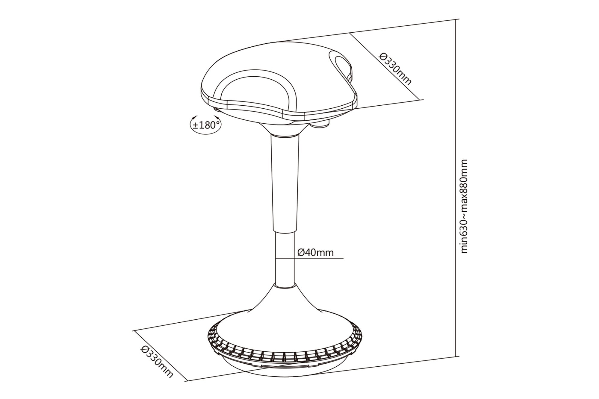 Assmann Electronic - Tabouret ergonomique noir, réglable en hauteur avec ressort à gaz - DA-90422