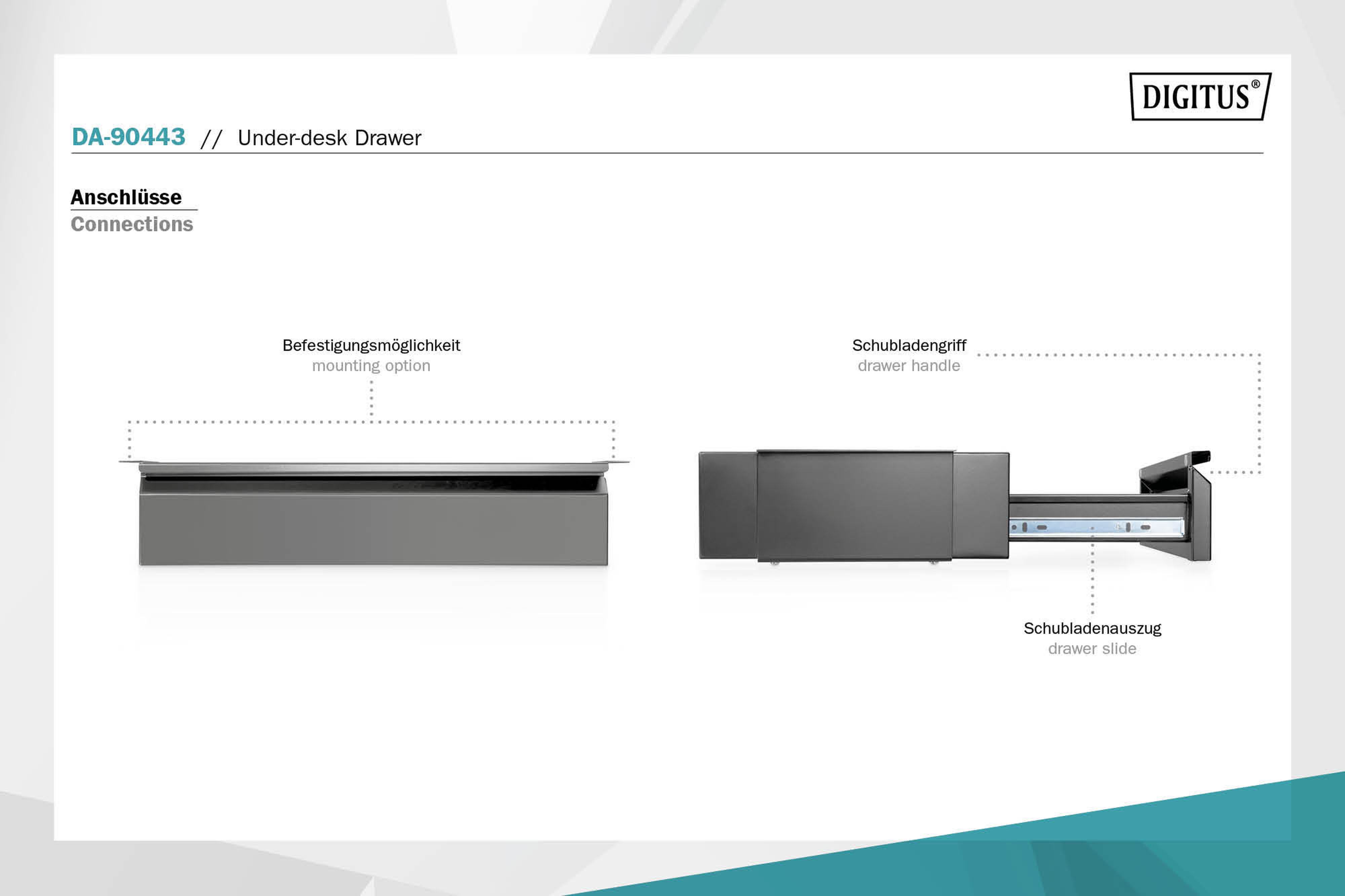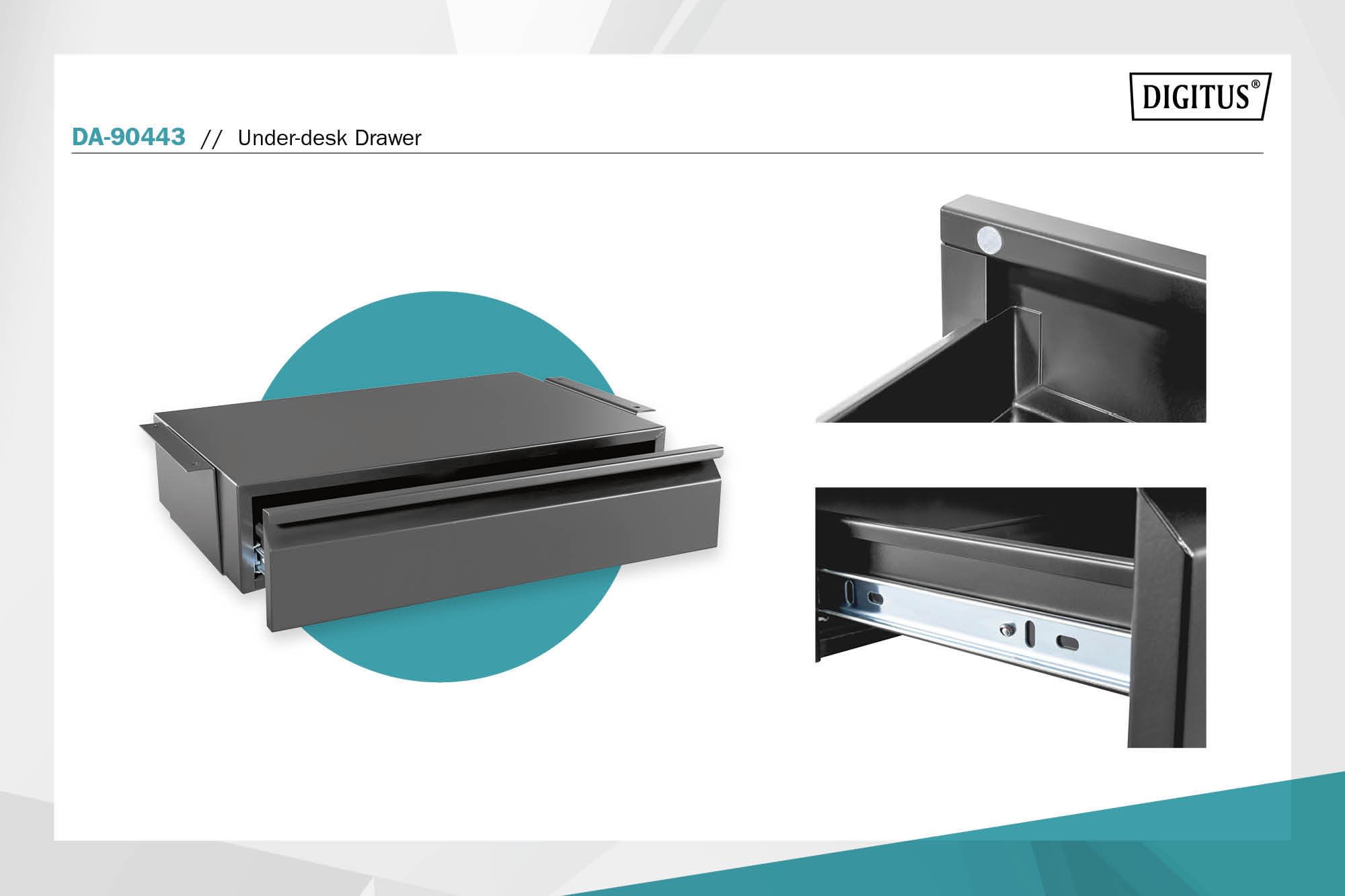 Assmann Electronic - Tiroir de bureau noir extensible 17cm, charge maximale 5 kg, 51,3x 31-48x10,8cm - DA-90443