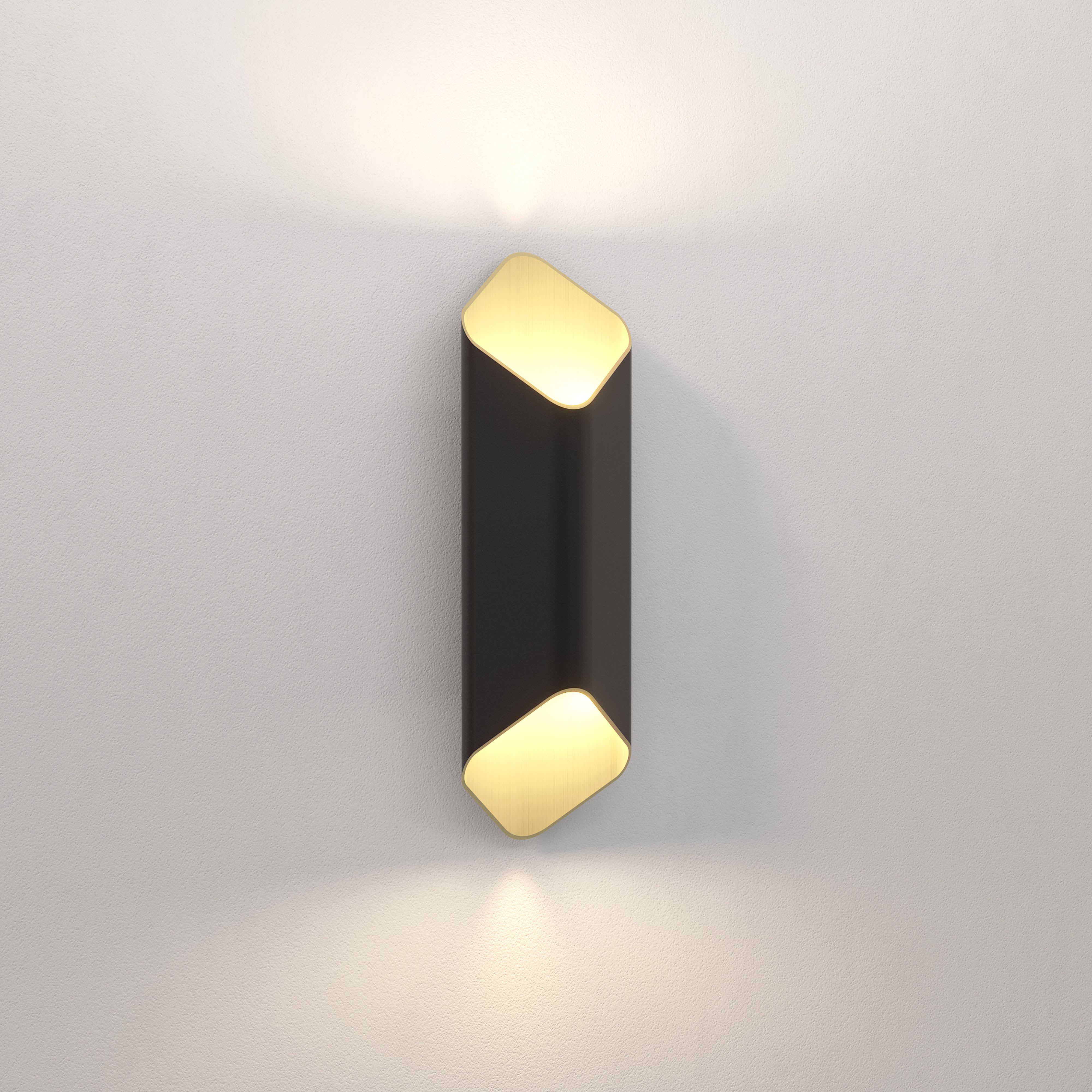 Avec sa riche finition or et noir mat, Ako ajoute un accent architectural luxueux aux murs des couloirs et des espaces d'accueil. Son diffuseur en polycarbonate opalescent projette une douce lumière sur le mur sans angles prononcés.