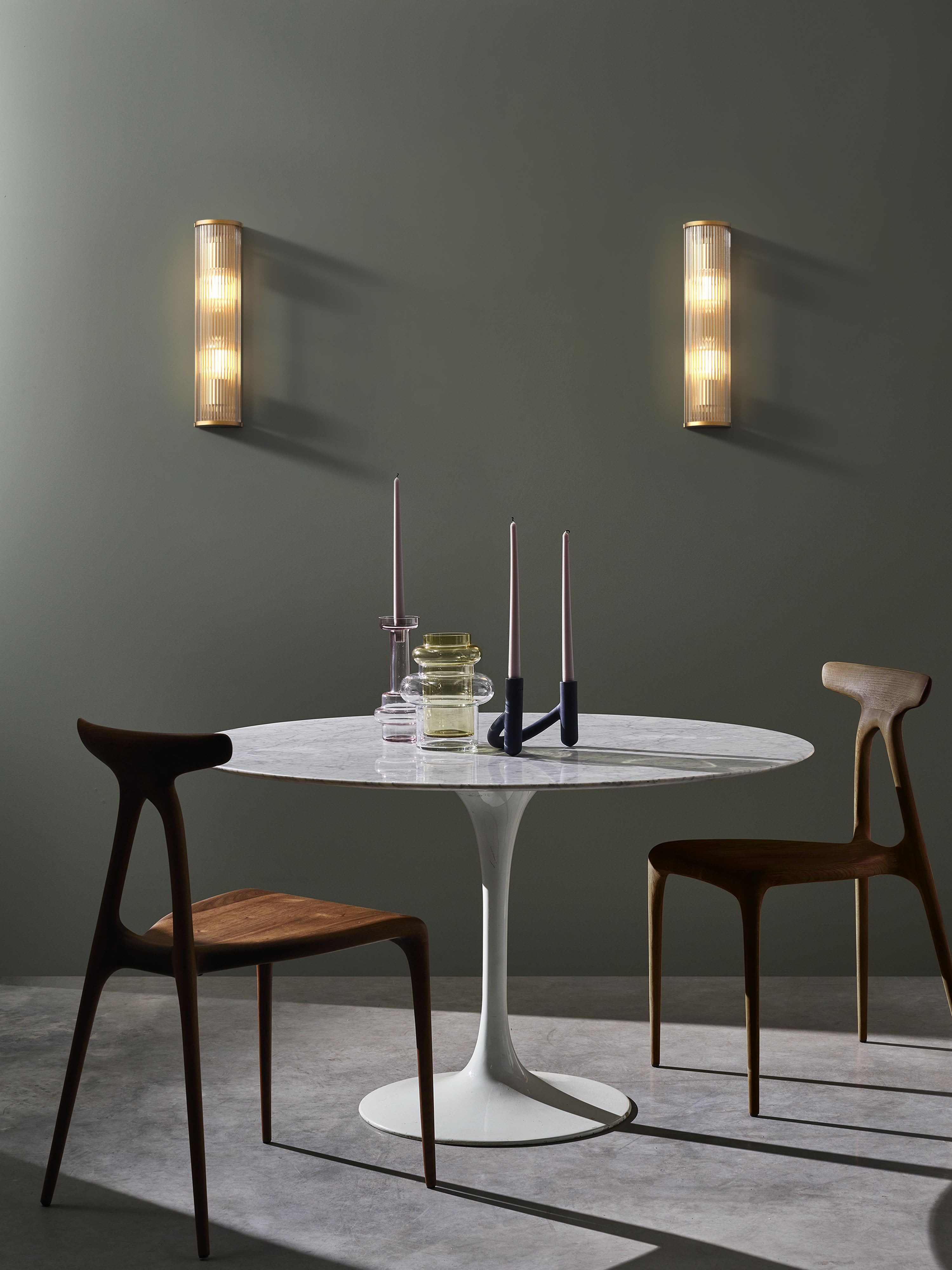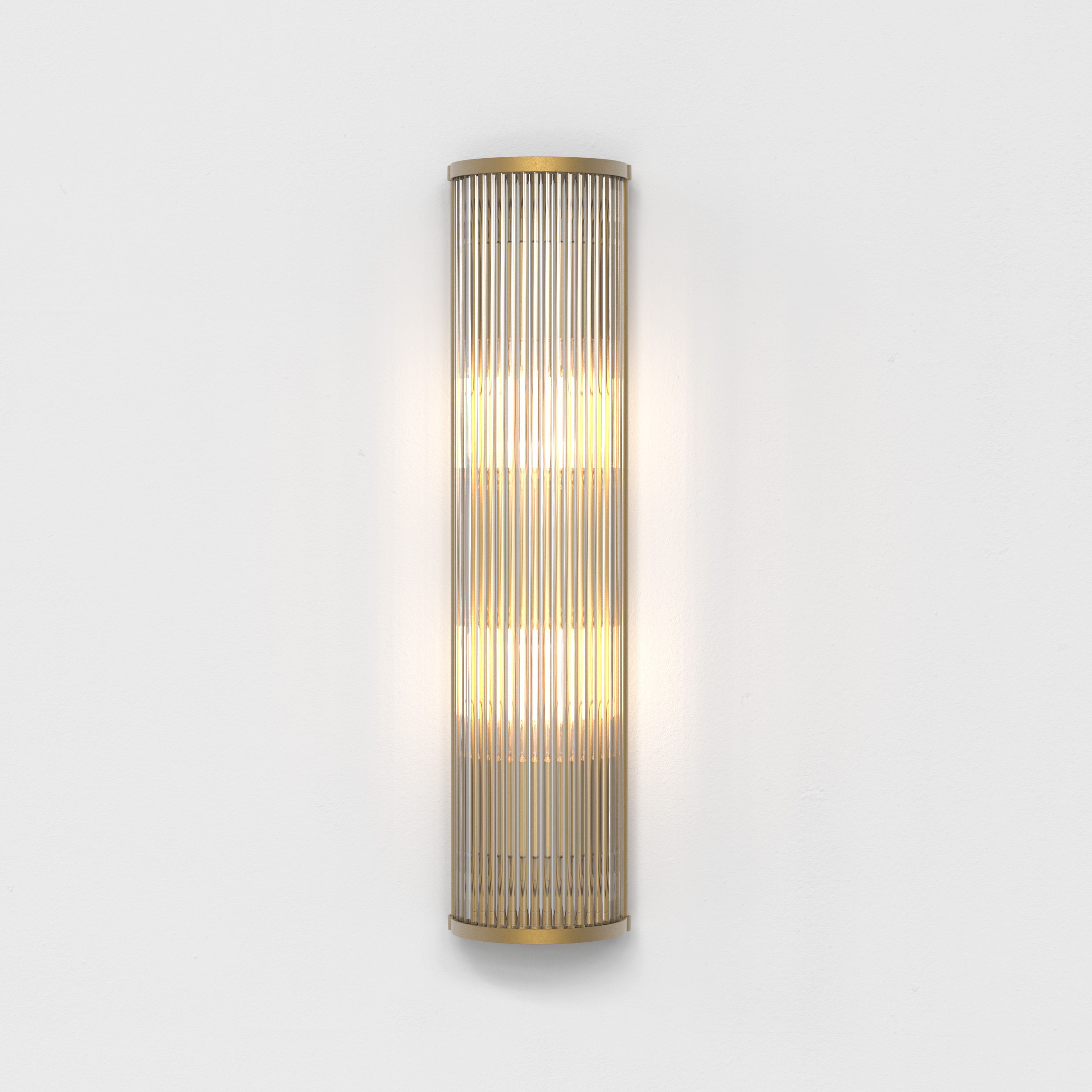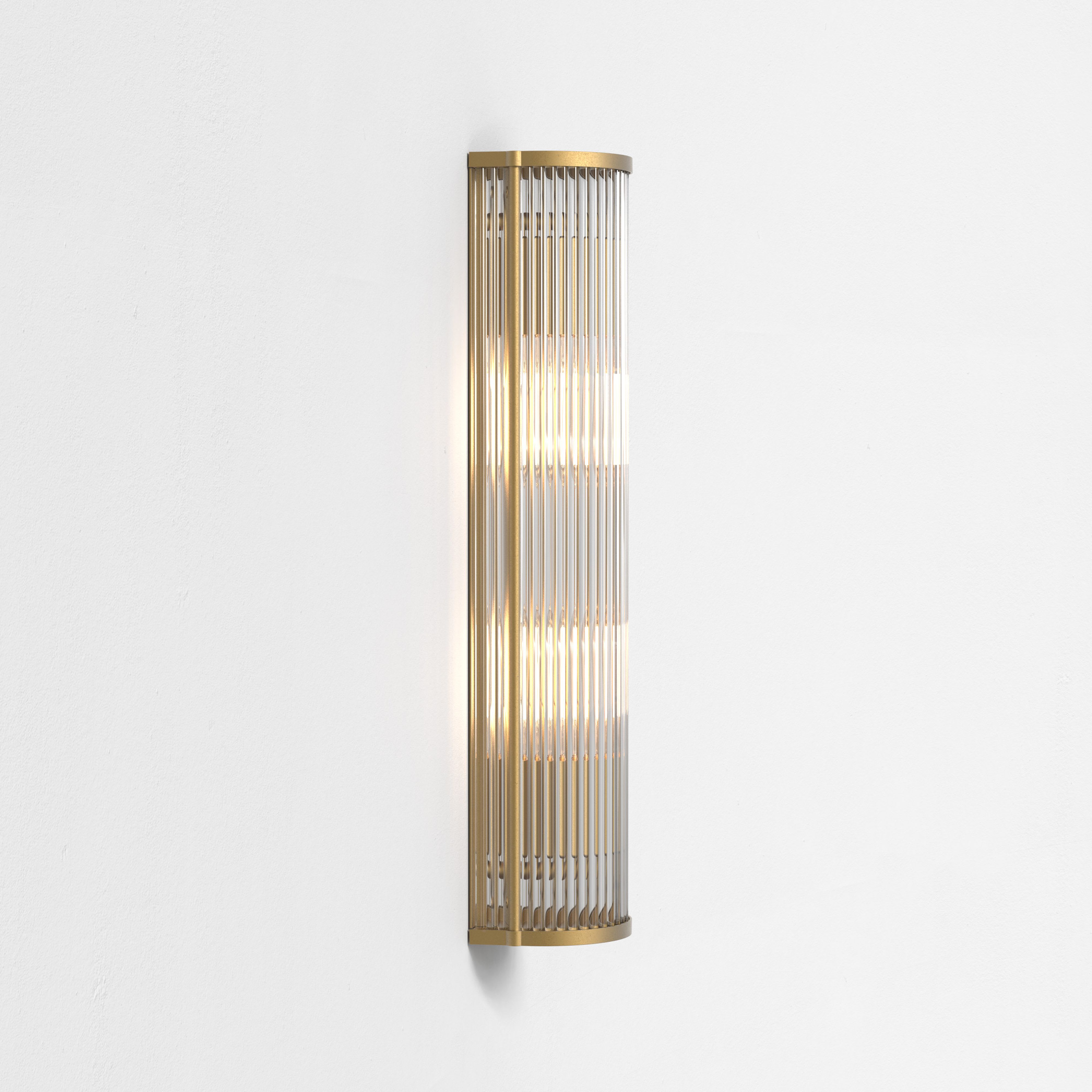 Inspirée des luminaires art déco, les imposantes dimensions de l'applique Avignon Round 525 font instantanément sensation, marquant tout espace de sa présence. Longue et filiforme, dotée d'un profil arrondi, elle se compose de tiges en verre transparent et étincelant et d'embouts en laiton ancien moulé sous pression. Elle émet un éclairage d'ambiance, sans éblouir. Pensée pour les environnements hôteliers, ce luminaire se fixe au mur via une seule vis discrète, afin que rien ne vienne détourner le regard de son esthétique uniforme.