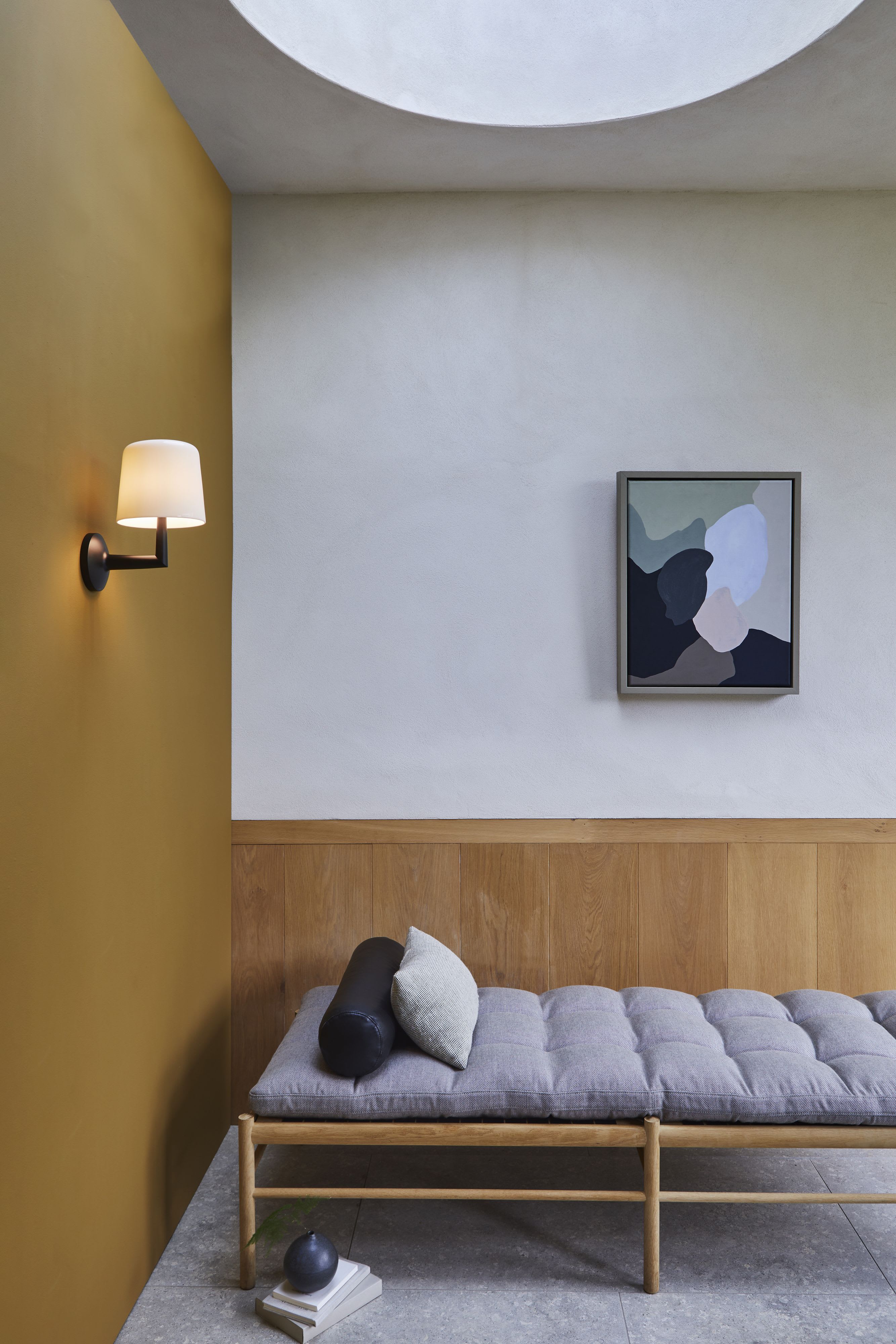 Ella présente une base angulaire étonnamment moderne, associée à un élégant abat-jour en porcelaine. La porcelaine translucide diffuse délicatement la lumière des deux ampoules LED G9, projetant une lueur chaude et ambiante. Ella est l'applique murale idéale pour les couloirs et les salons.