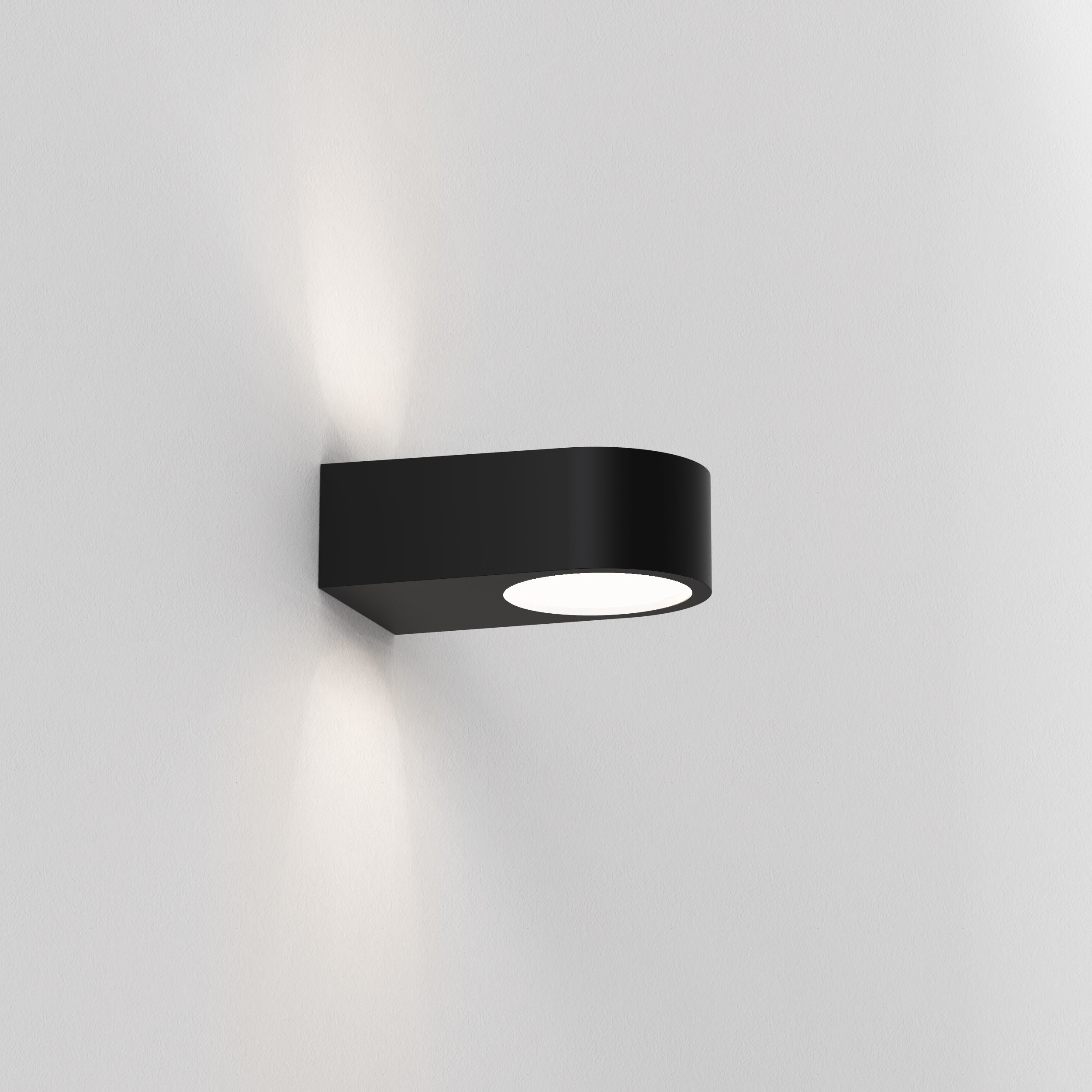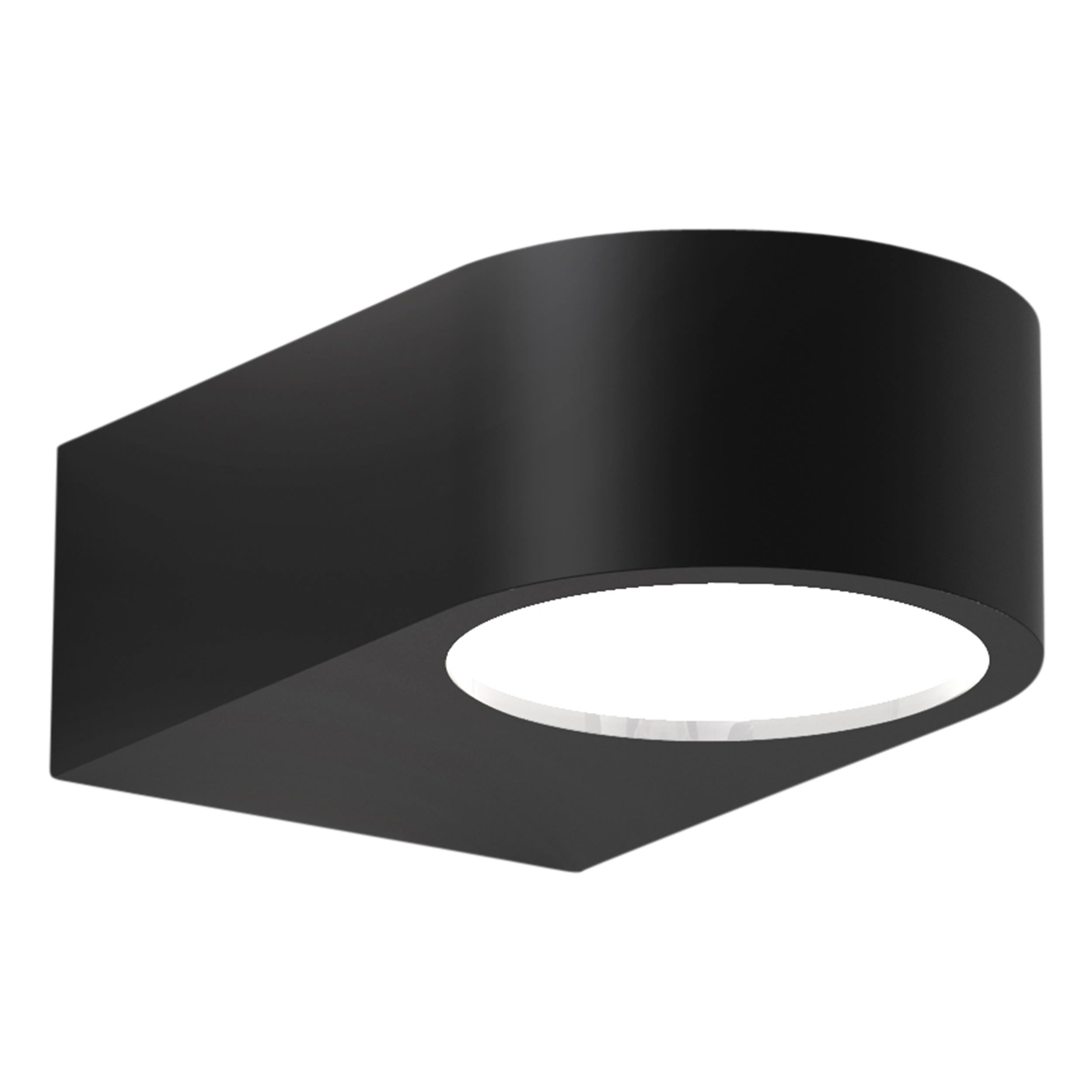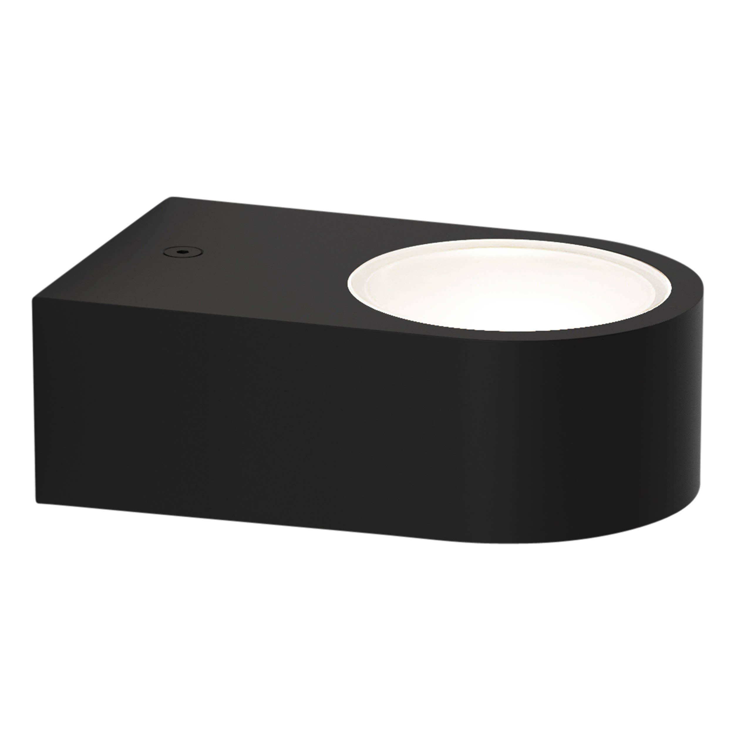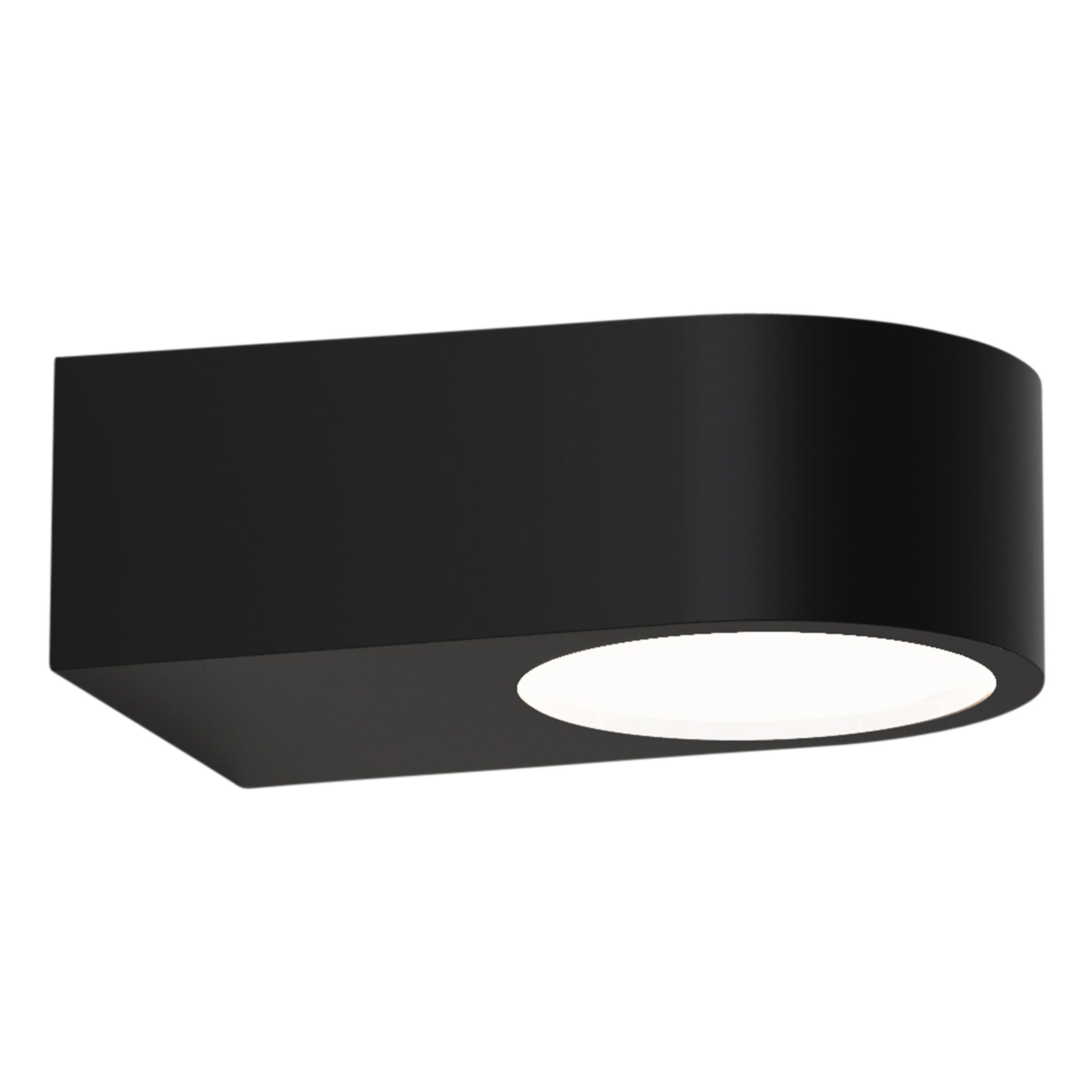 Applique murale pour salle d'eau.Fini noir mat.Fonctionne avec 1 LED de 3,4 W. 3000 K.Indice de protection IP 44, peut être utilisé dans les salles d'eau, zones 2 et 3.Classe II, double isolation.Dimensions : H 45 l 82 P 130 mm
