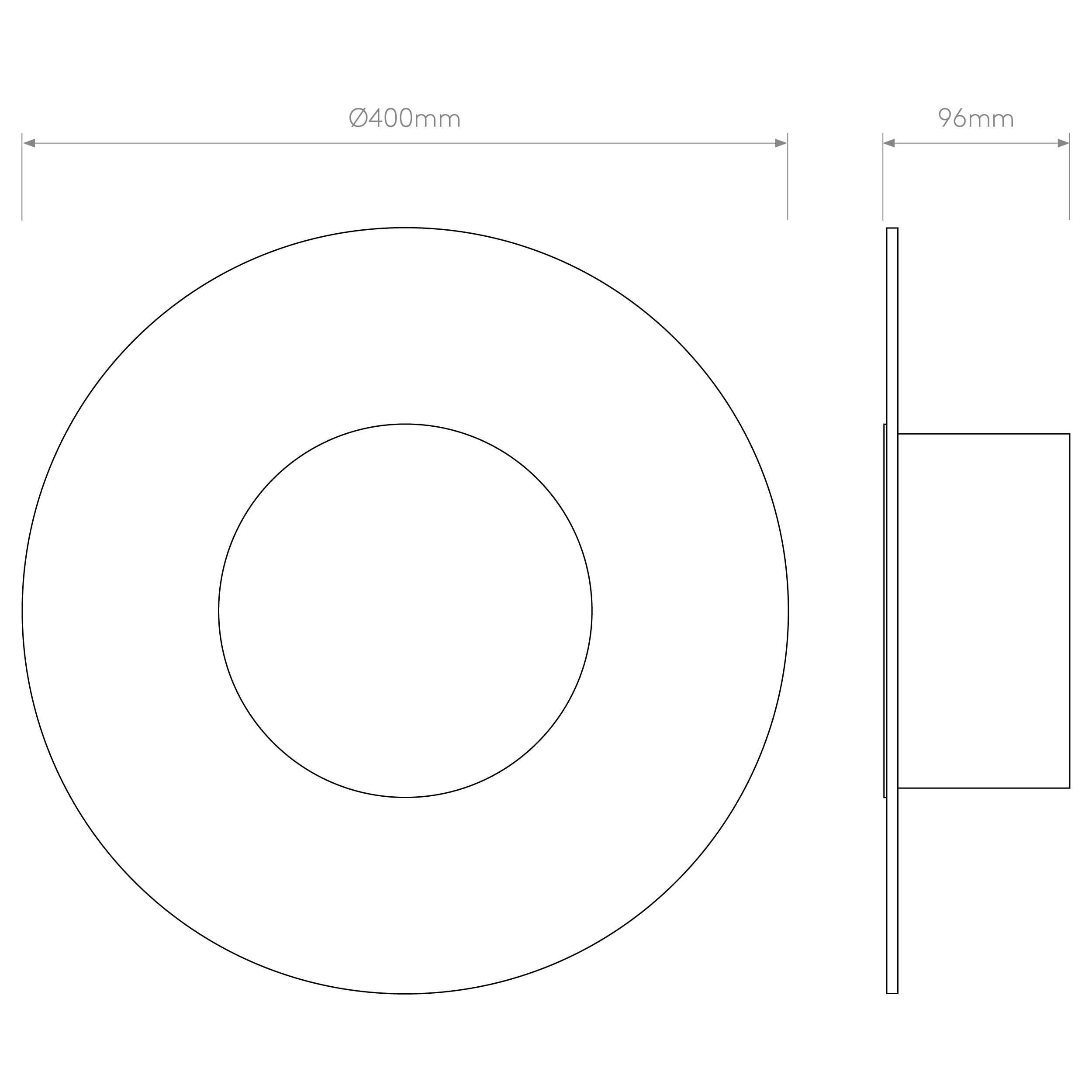 Applique murale intérieure.Finition Blanc mat.Ampoule LED 7,5W. 2700K.Protection IP20, convient aux salles de bain (zone 3).Classe I, mise à la terre.Dimensions : P97,2 Dia400 mm