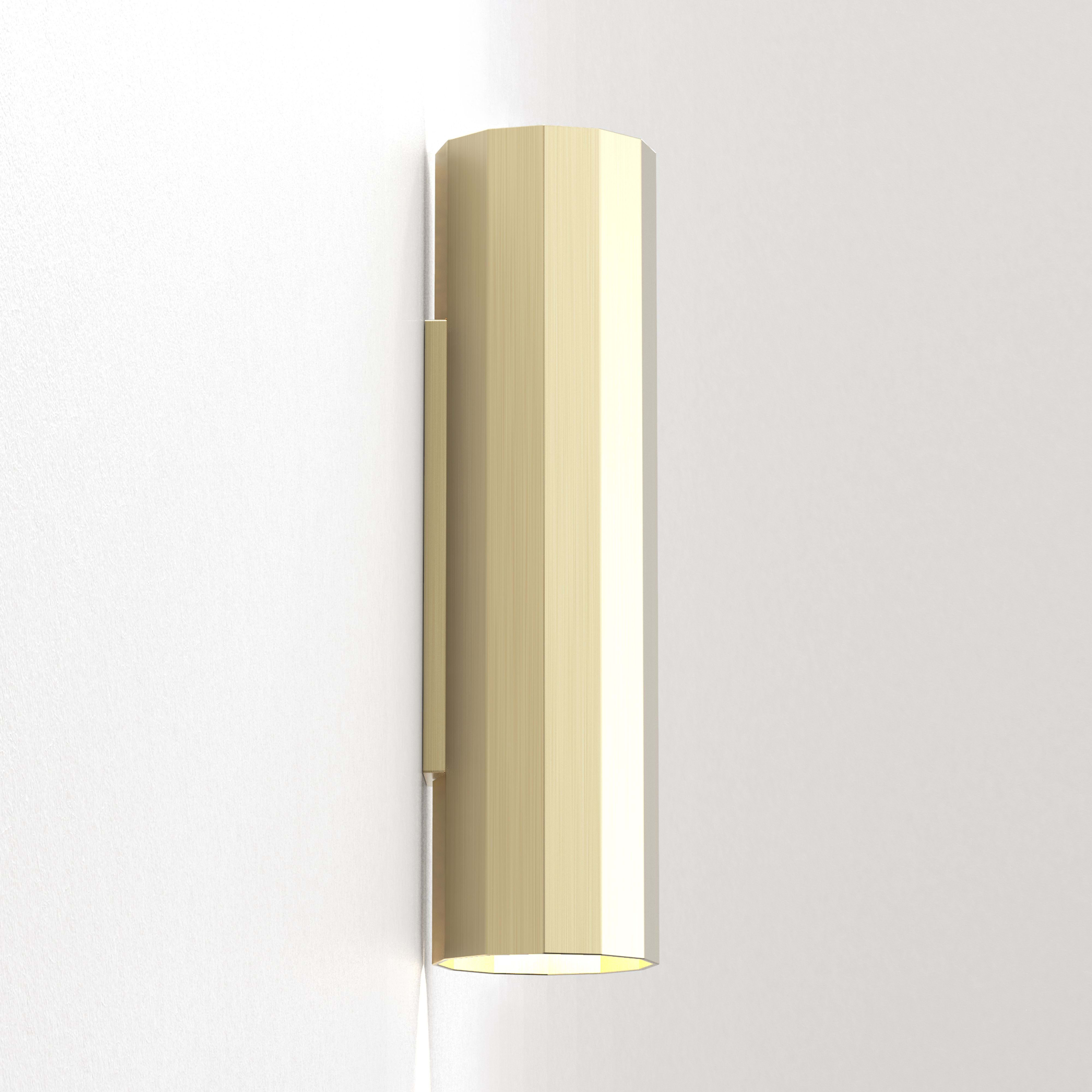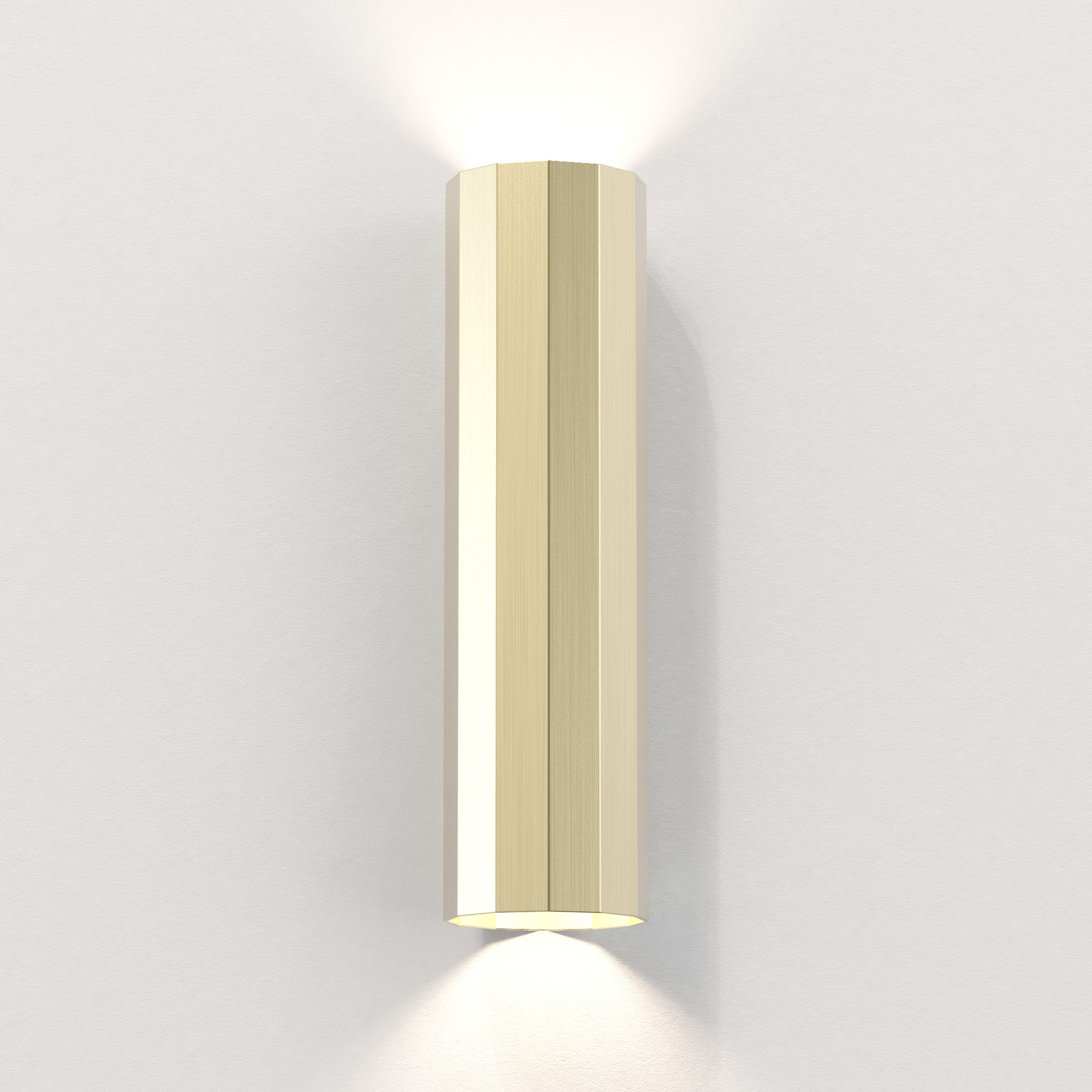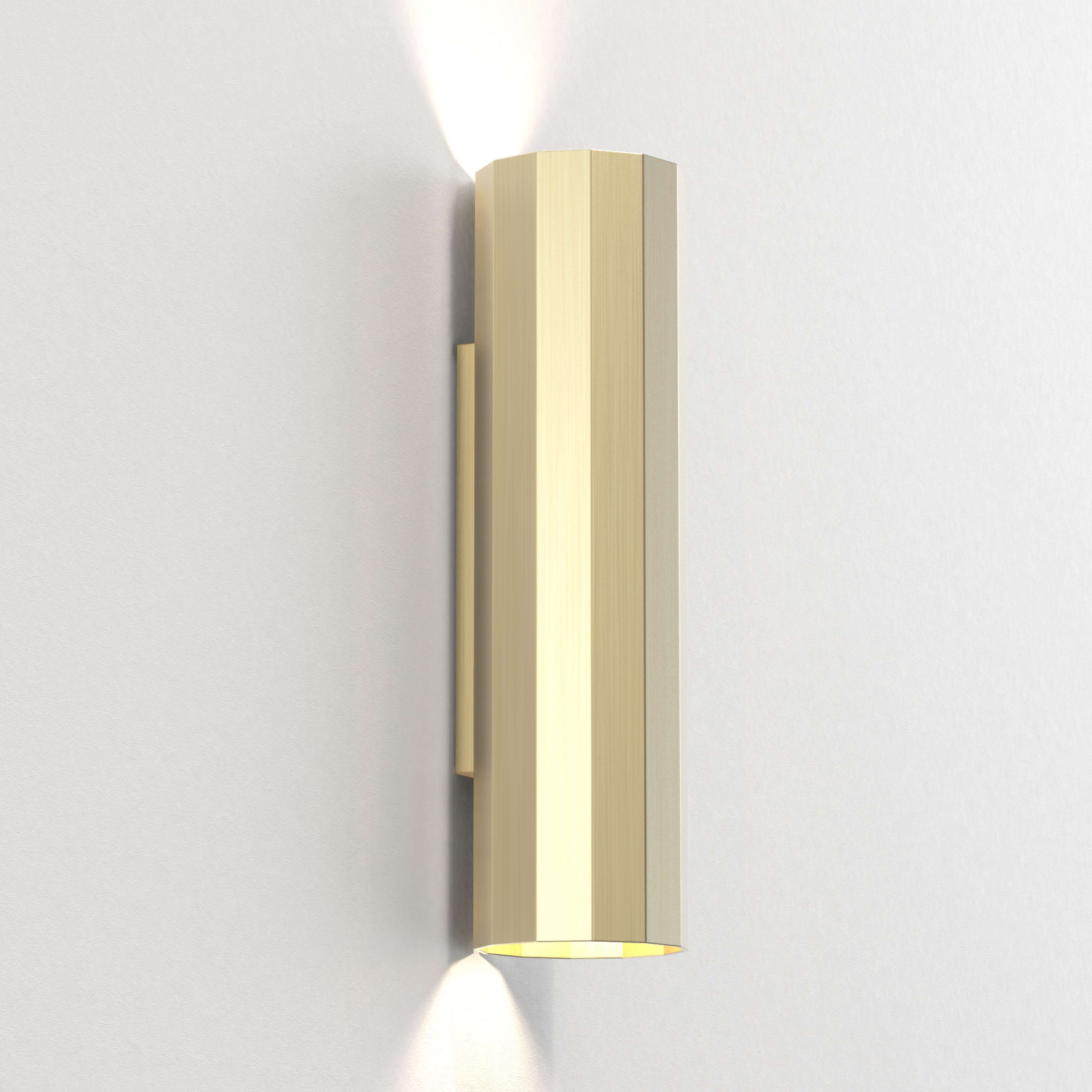 L'applique Hashira 300 offre une forme facettée contemporaine inspirée de l'architecture néoclassique. Elle émet des îlots de lumière définis, ascendants et descendants, produisant des ombres élaborées qui évoquent sa forme. Elle se décline en finitions or mat, nickel mat ou noir mat. Elle est dépourvue de fixations visibles pour un rendu uniforme. Son bornier à insertion directe permet un câblage entrée/sortie facile et une connexion sans outils. Tous les raccordements sont faits à l'intérieur du plateau arrière.