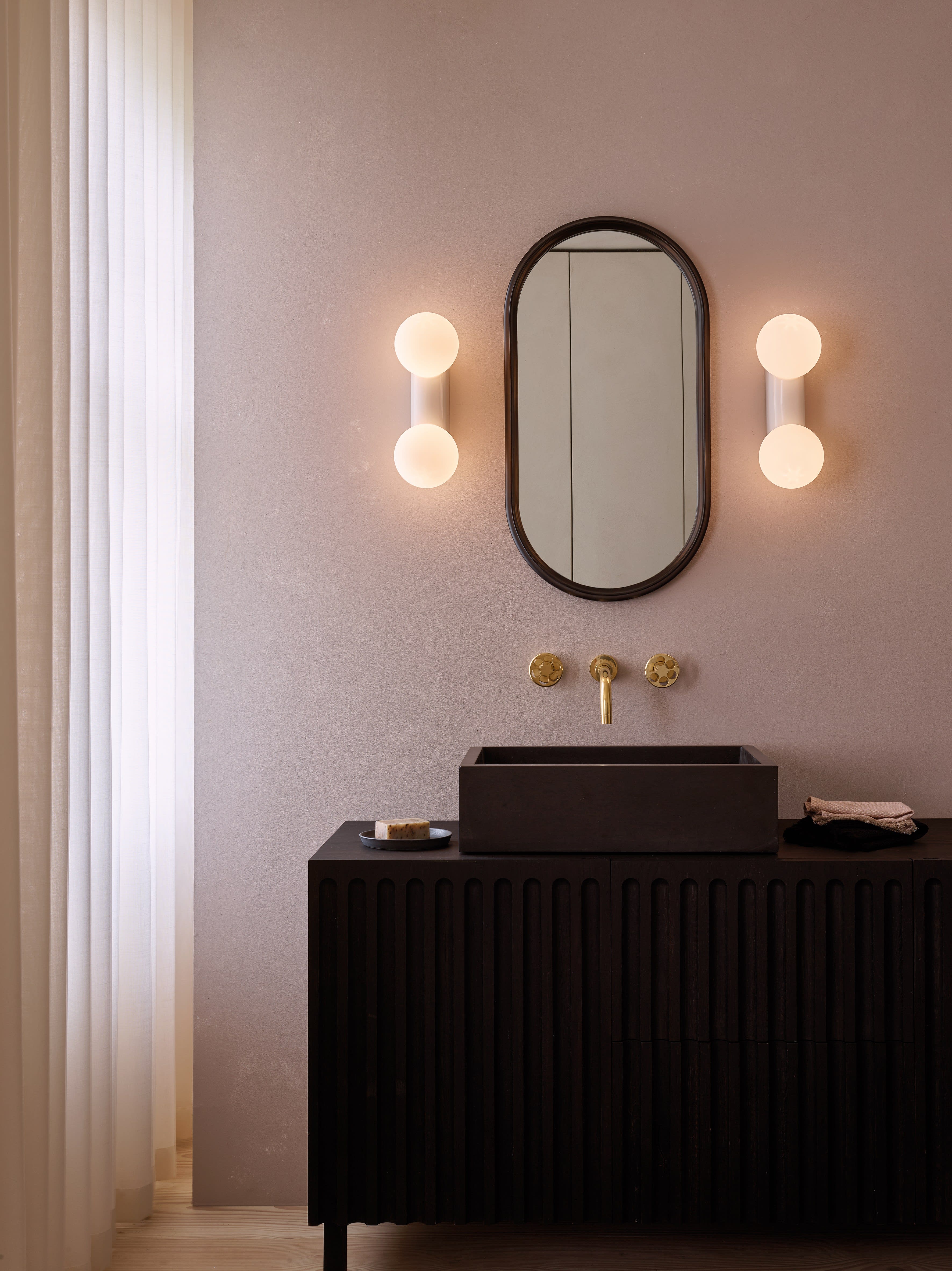 Avec sa base en céramique blanche brillante et élégante et ses deux lampes, Lyra ajoute un éclairage d'appoint lumineux et fonctionnel à tout mur de salle de bains moderne. Grâce à son design moderne et symétrique, vous pouvez installer Lyra au-dessus ou à côté du miroir selon vos préférences en matière d'éclairage.