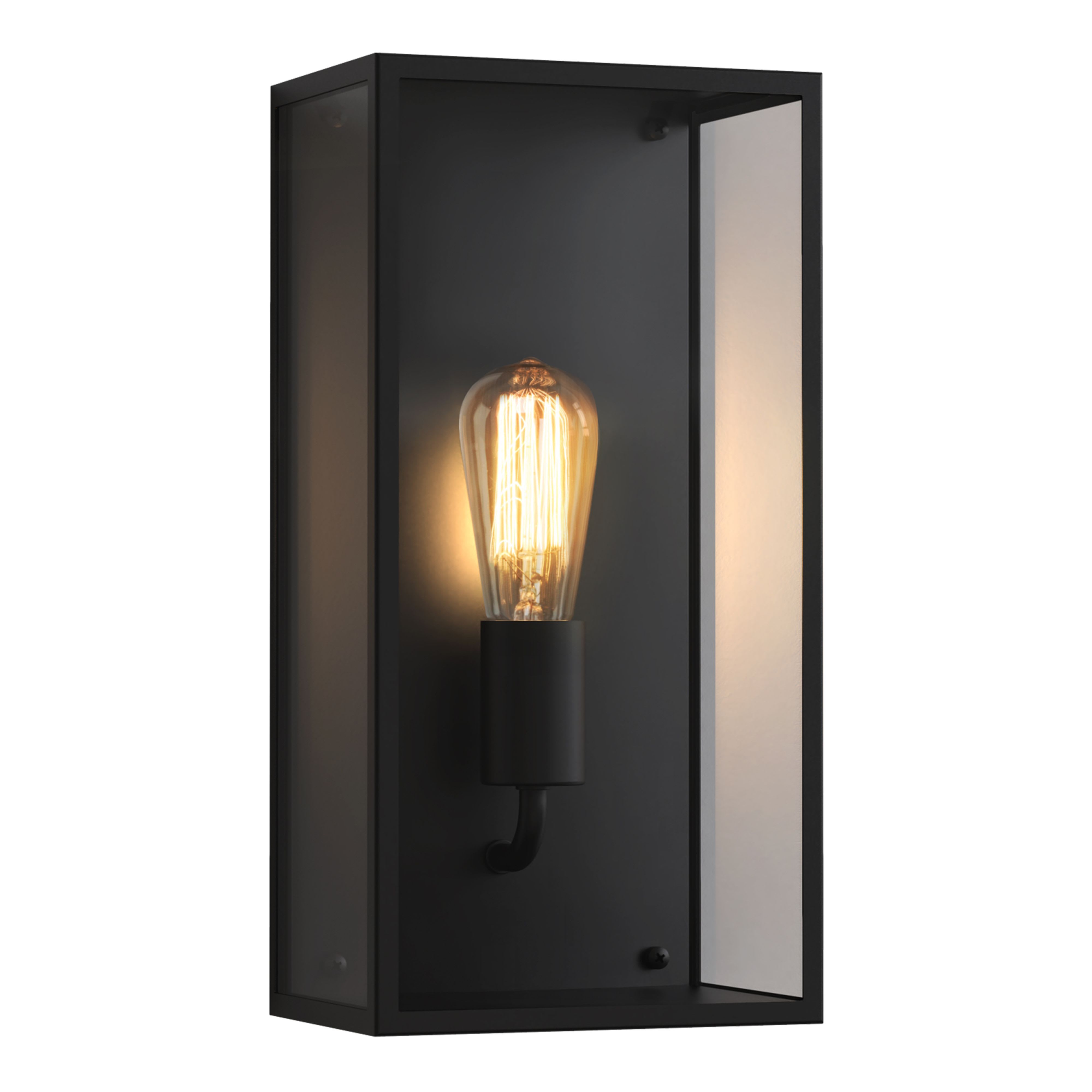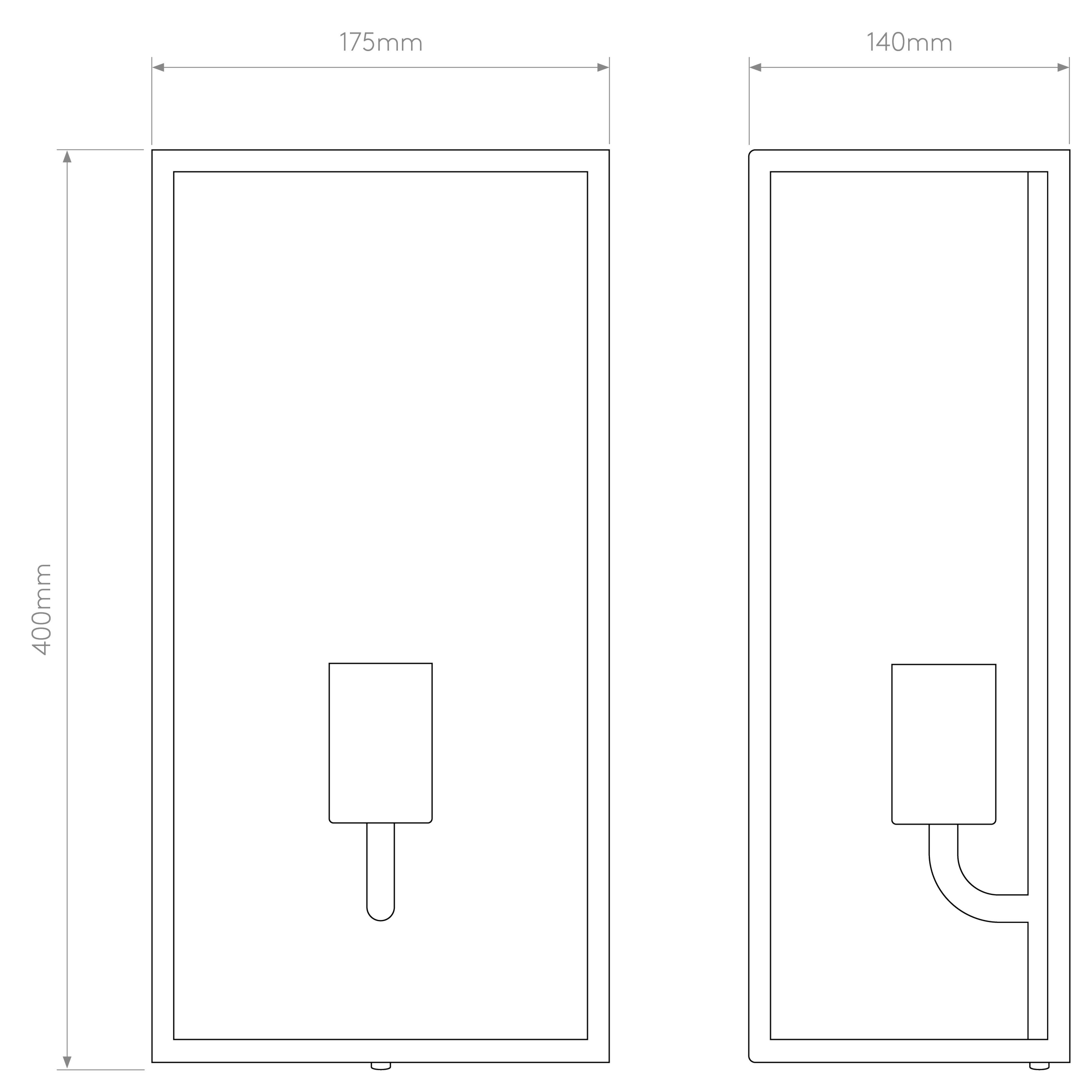 Applique murale d'extérieur.Fini noir texturé.Fonctionne avec 1 LED de 12 W (maxi.) E27/ES.Indice de protection IP 44, peut être utilisé dans les salles d'eau, zones 2 et 3.Classe I, relié à la terre.Dimensions : H 400 l 200 P 140 mm