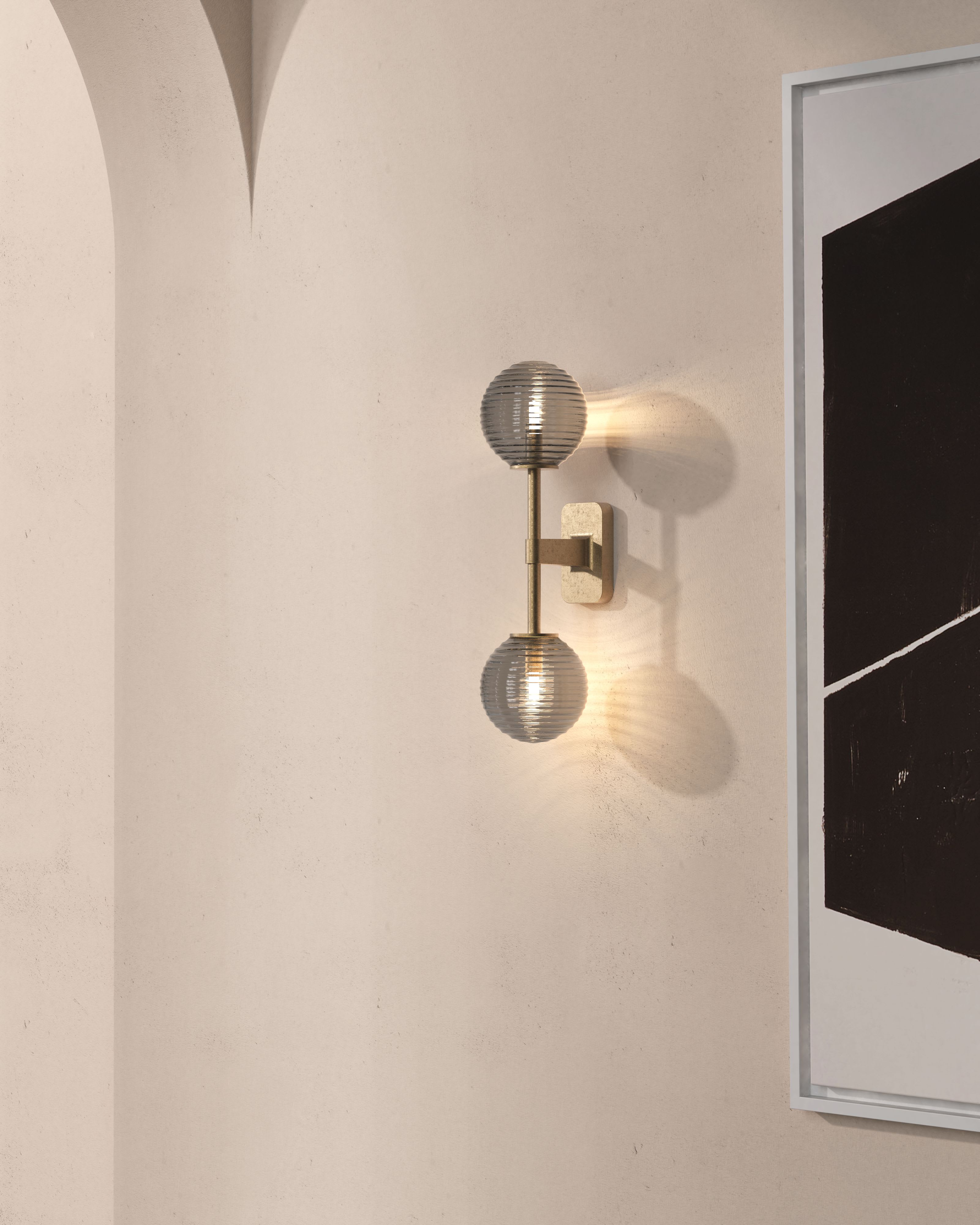 Applique murale d'intérieur.Fini laiton ancien.Fonctionne avec 2 LED de 3 W (maxi.) G9.Indice de protection IP 44, peut être utilisé dans les salles d'eau, zones 2 et 3.Classe I, relié à la terre.Dimensions : H 300 l 70 P 135 mm