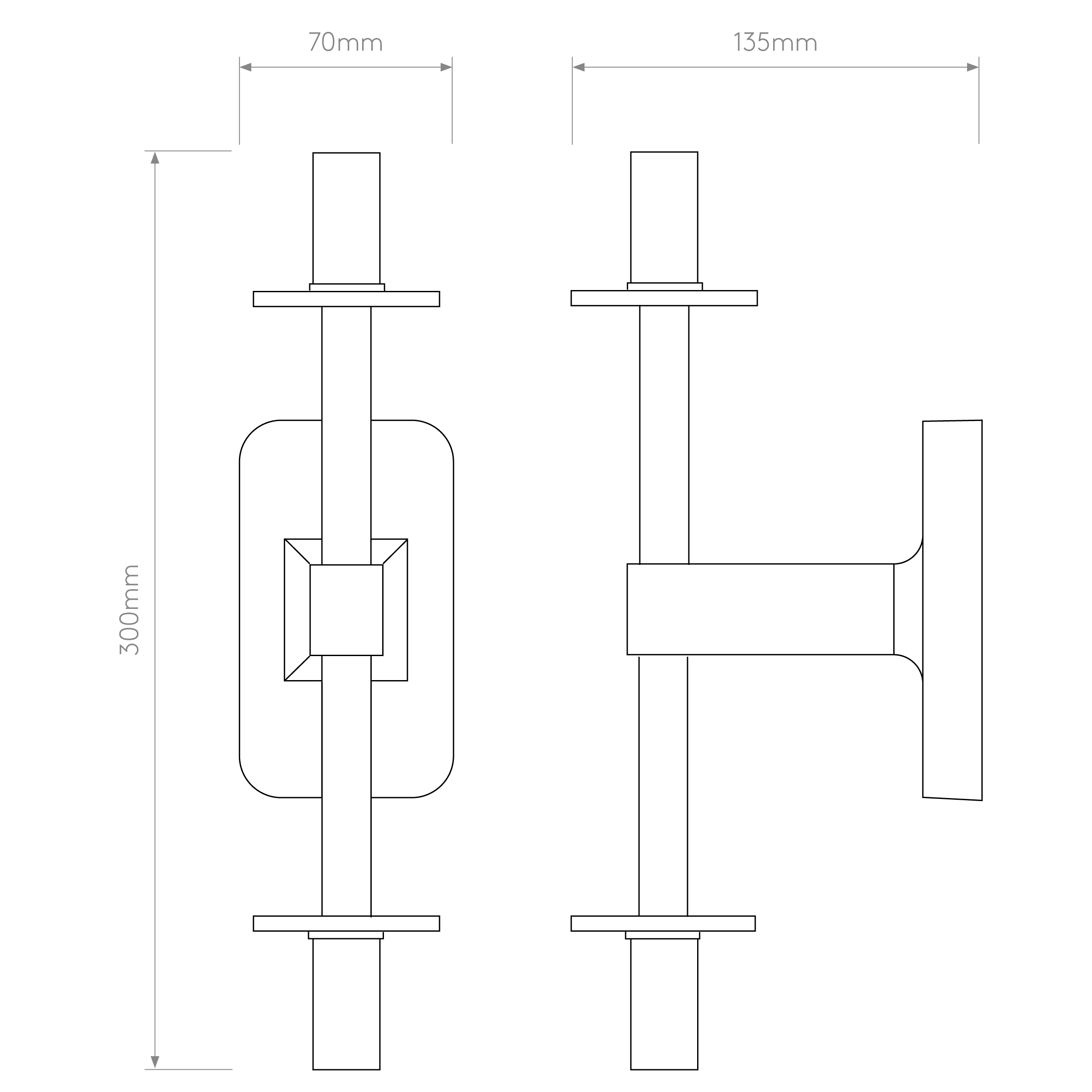 Applique murale d'intérieur.Fini noir mat.Fonctionne avec 2 LED de 3 W (maxi.) G9.Indice de protection IP 44, peut être utilisé dans les salles d'eau, zones 2 et 3.Classe I, relié à la terre.Dimensions : H 300 l 70 P 135 mm