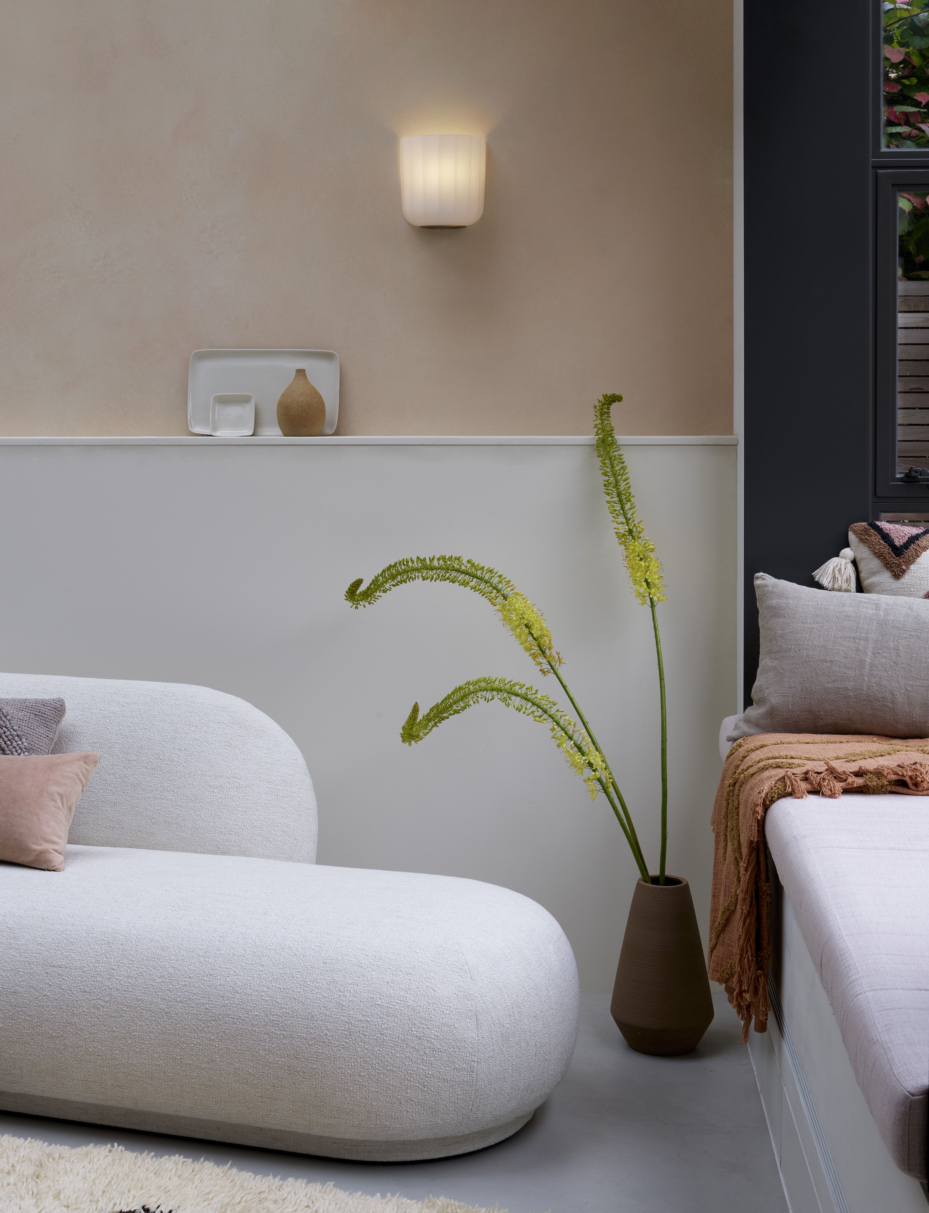 Inspirée par les colonnes cannelées de l'architecture grecque classique, Veo ajoute une élégance intemporelle et une lueur chaude et ambiante à votre intérieur. Avec son abat-jour en verre décoratif et sa base métallique élégante, elle constitue un ajout attrayant à tout salon ou couloir moderne.