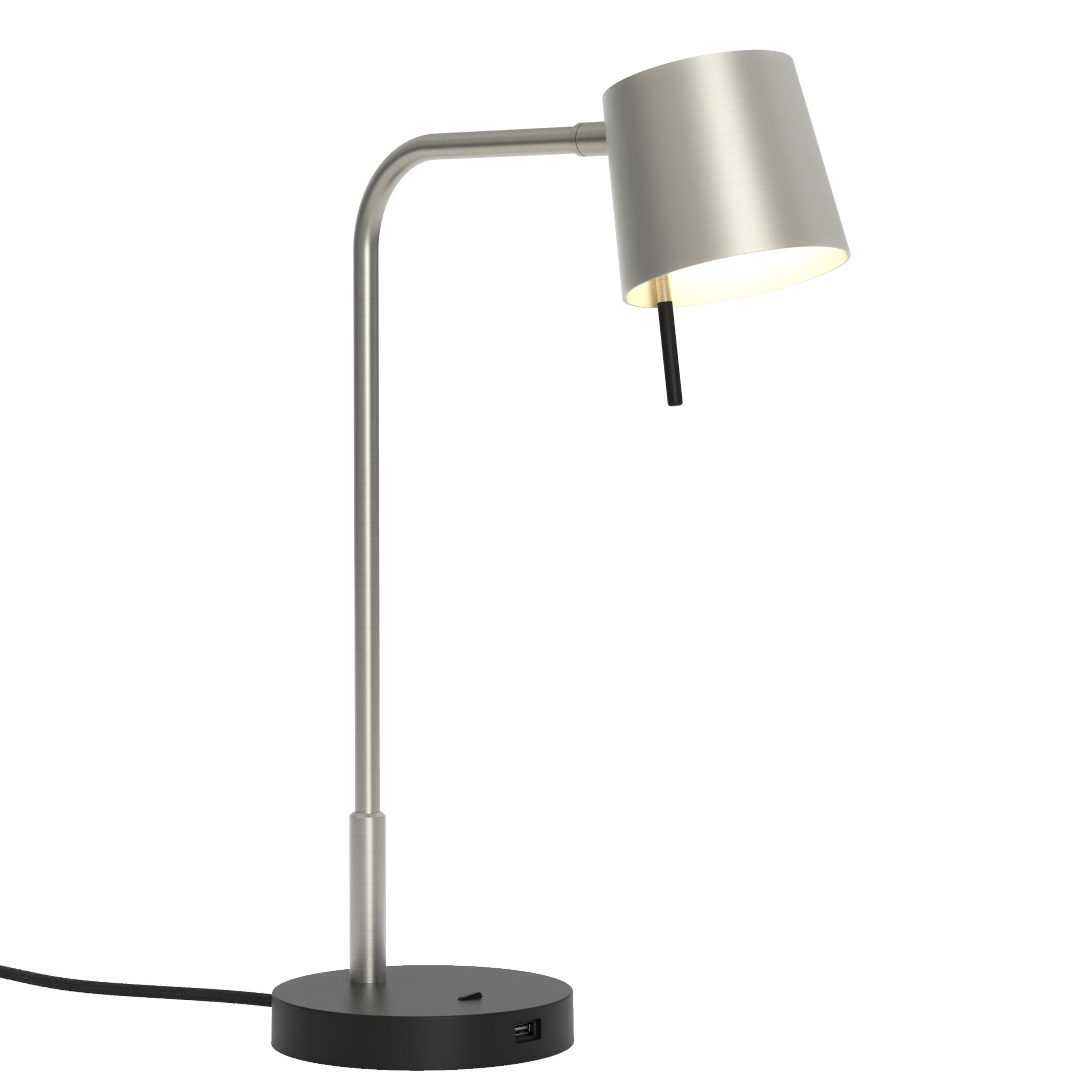 Lampe de table Miura Desk USB Nickel mat référence 1444007 univers Intérieur abat-jour non-inclus source incluse 7.5W LED non-dimmable driver non-requis IP20 Classe II - Double isolation Zone 3 statut : actif