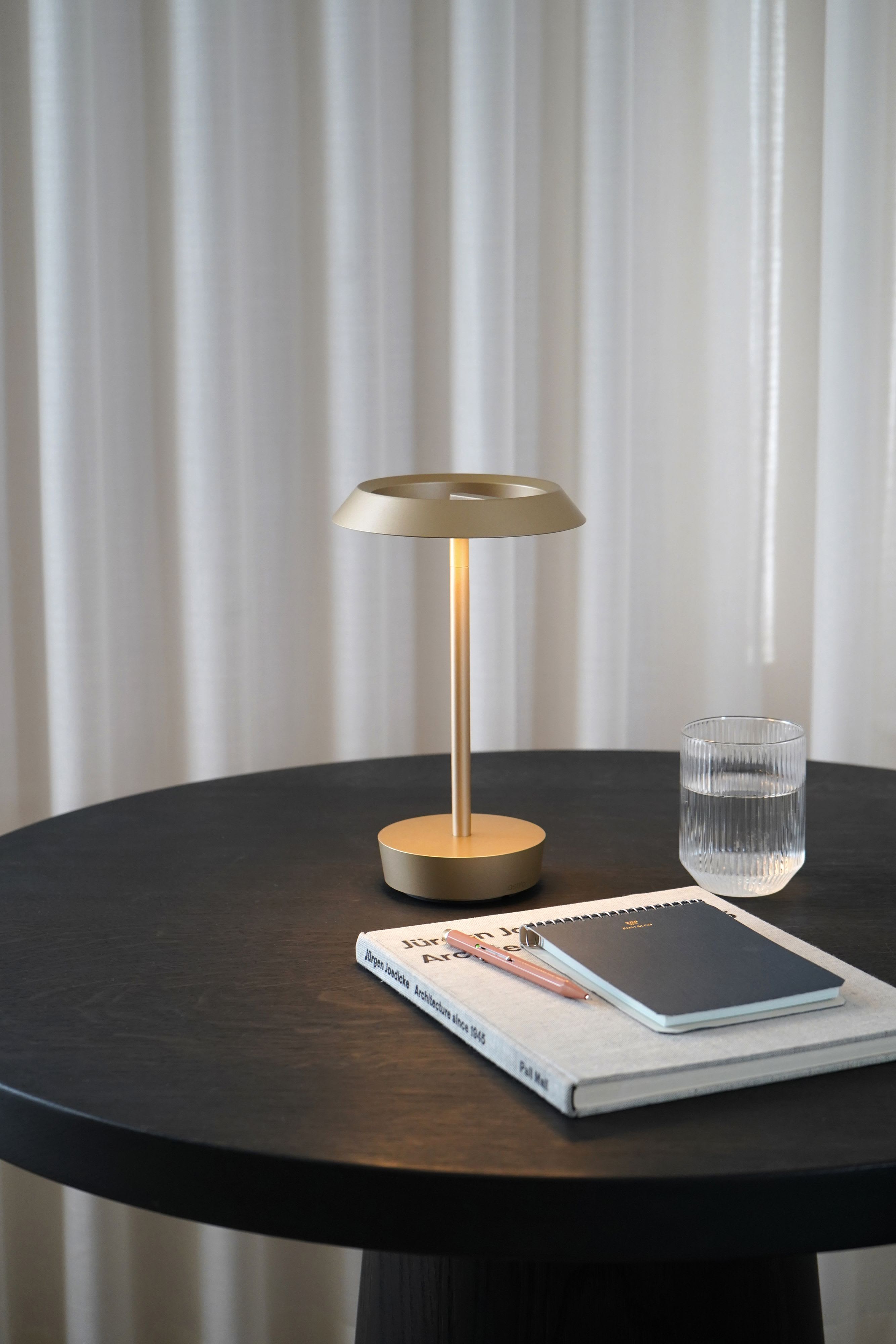 Halo est une lampe portable qui apporte un éclairage d'appoint confortable dans n'importe quel espace de votre maison, notamment les tables de chevet, les plans de travail ou le salon. Disponible en bronze clair, elle complète tout décor moderne. La commande tactile intuitive de Halo et son design durable et contemporain en font le choix idéal pour un éclairage d'appoint moderne.