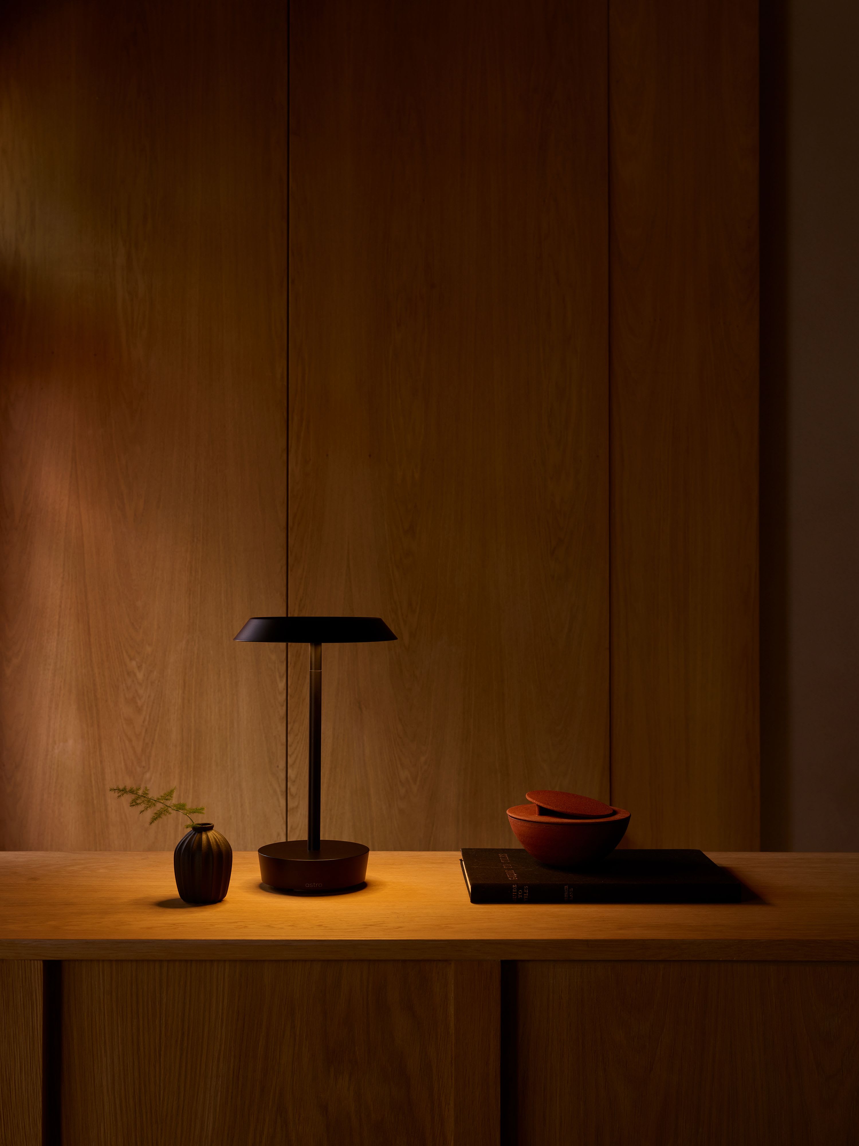 Halo est une lampe portable qui apporte un éclairage d'appoint confortable dans n'importe quel espace de votre maison, notamment les tables de chevet, les plans de travail ou le salon. Disponible en noir mat, elle complète tout décor moderne. La commande tactile intuitive de Halo et son design durable et contemporain en font le choix idéal pour un éclairage d'appoint moderne.