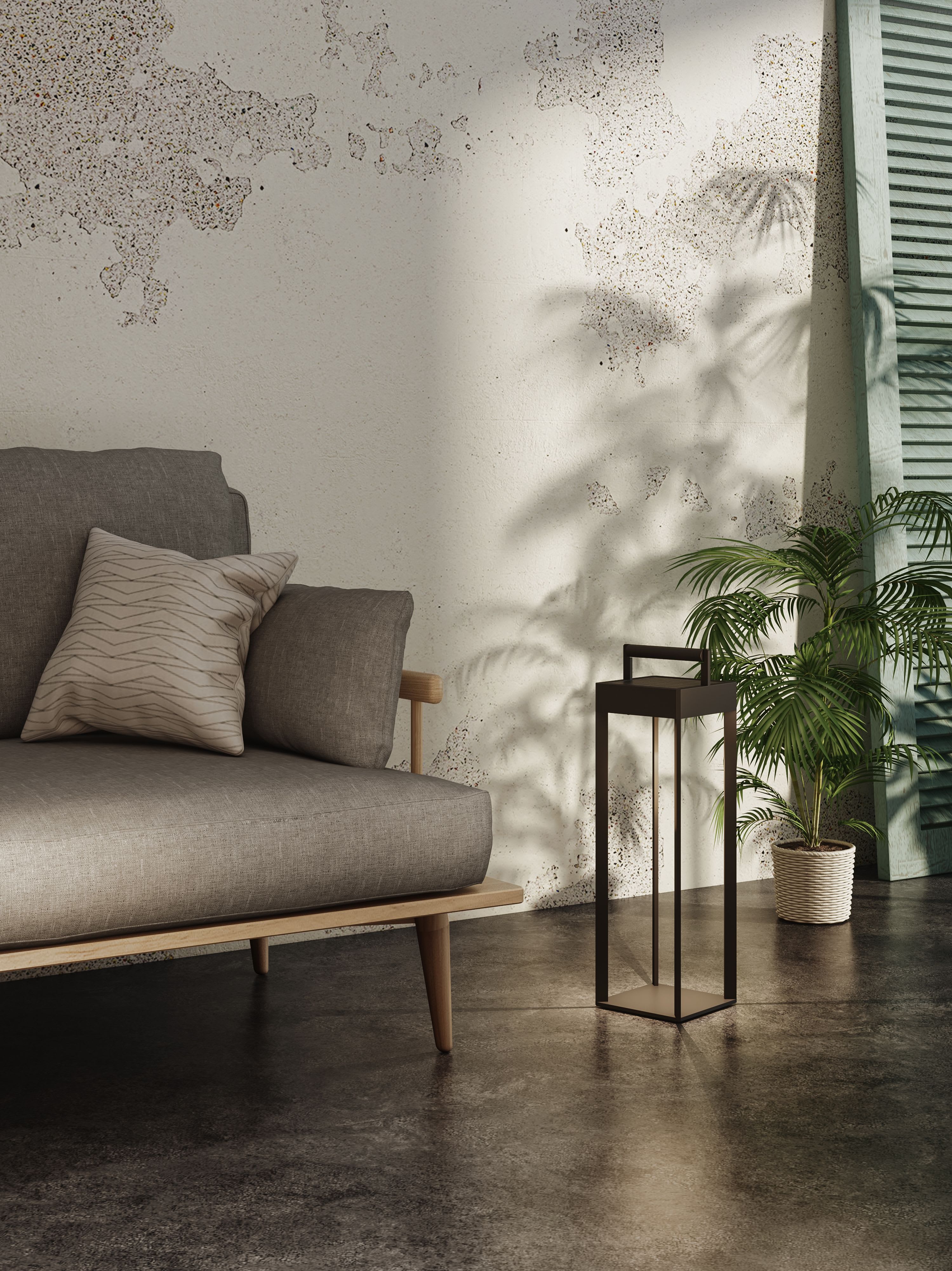 Kuro 450 est notre premier luminaire d'extérieur portatif, solaire et rechargeable. Un précieux plus sur toutes les terrasses d'hôtel ou tous les jardins particuliers, cette lanterne contemporaine offre 3 niveaux d'intensité lumineuse et est dotée d'une LED cachée anti-éblouissement qui dirige la lumière vers le bas. Son look épuré se fond naturellement dans tous les styles de décoration. Il peut être utilisé à l'extérieur et à l'intérieur grâce à une source de charge USB supplémentaire.