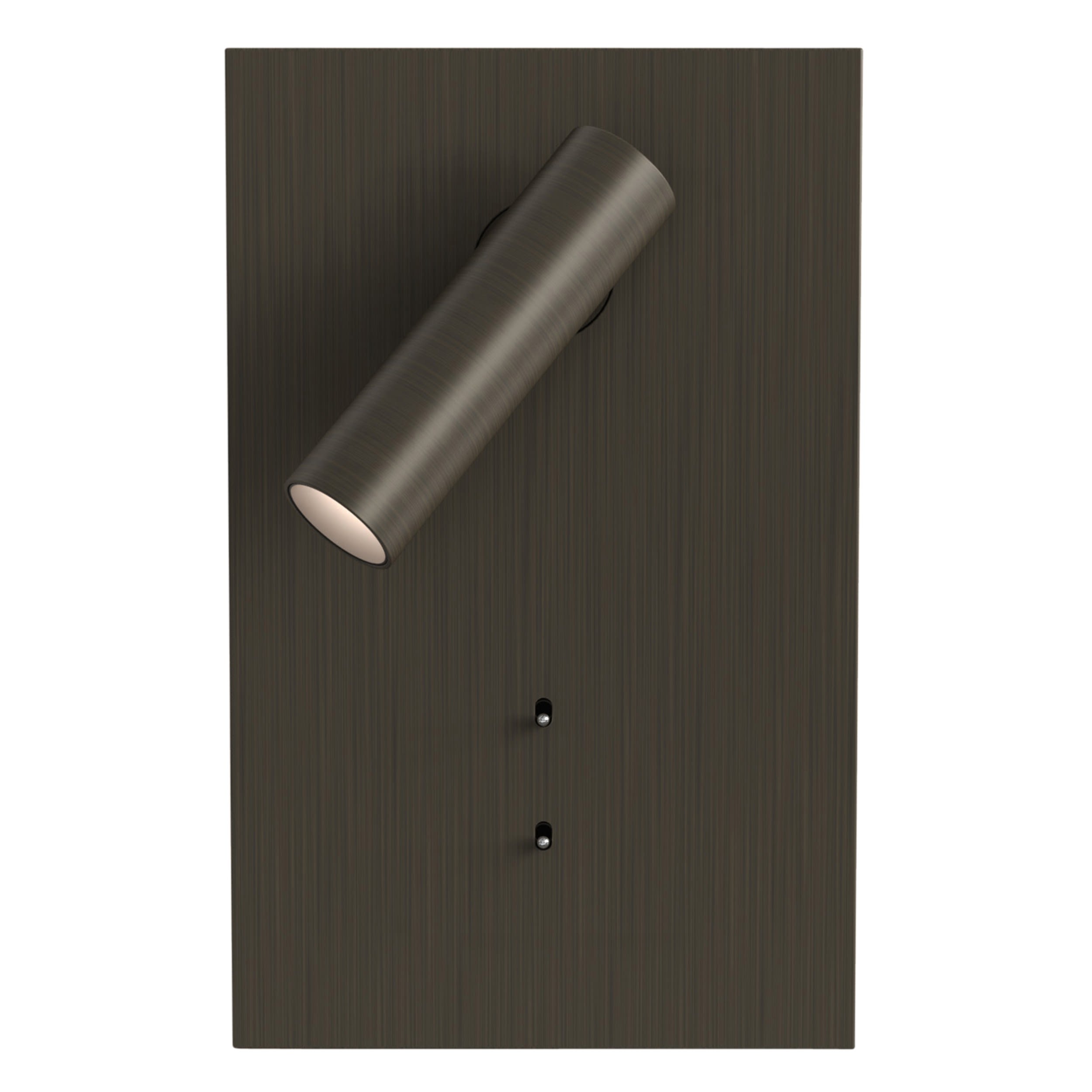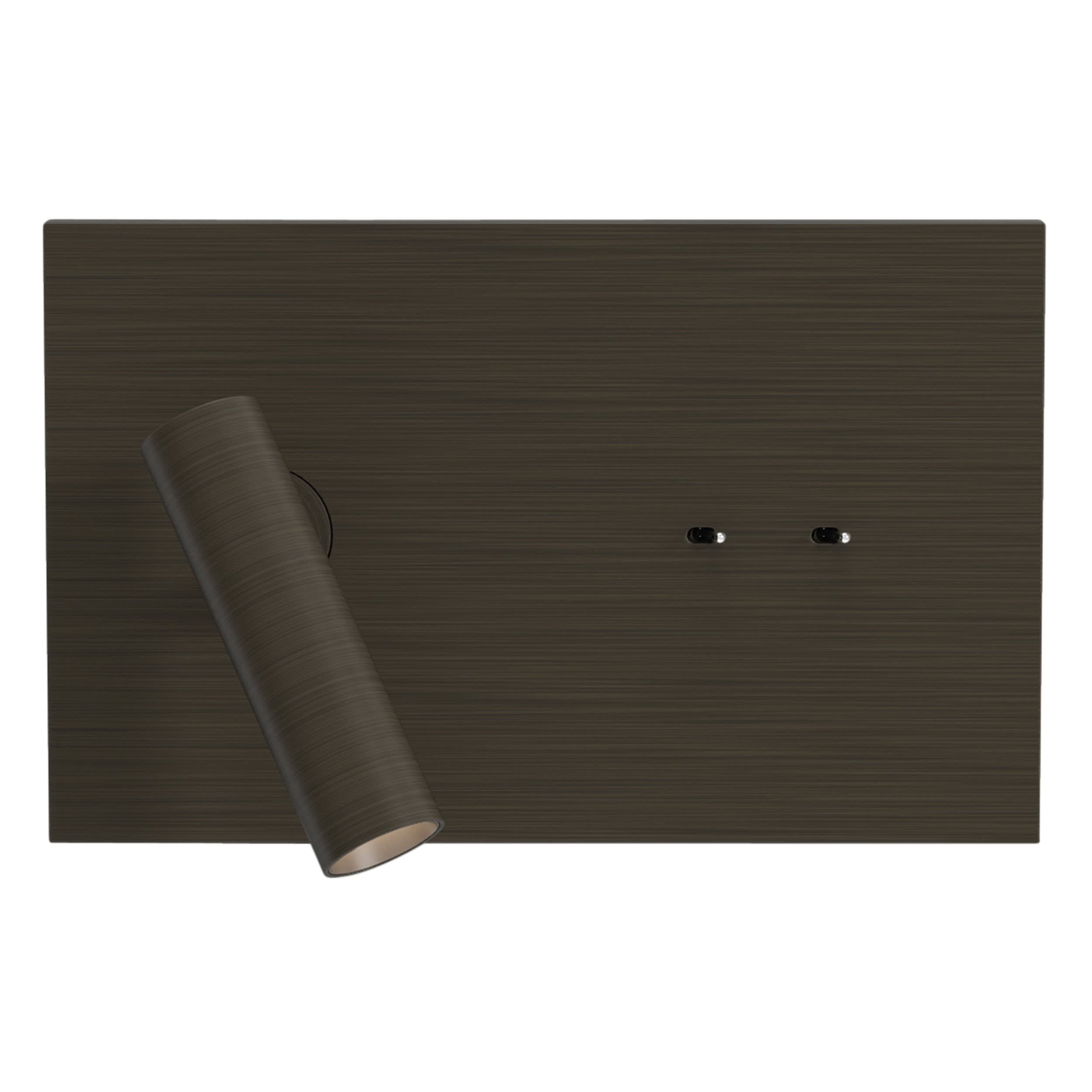 Liseuse d'intérieur.Fini bronze.Fonctionne avec 1 LED de 8,7 W 2700K et 1 LED de 3,4 W 2700K.Indice de protection IP 20.Classe I, relié à la terre.Dimensions : H 241 l 151 P 88 mm