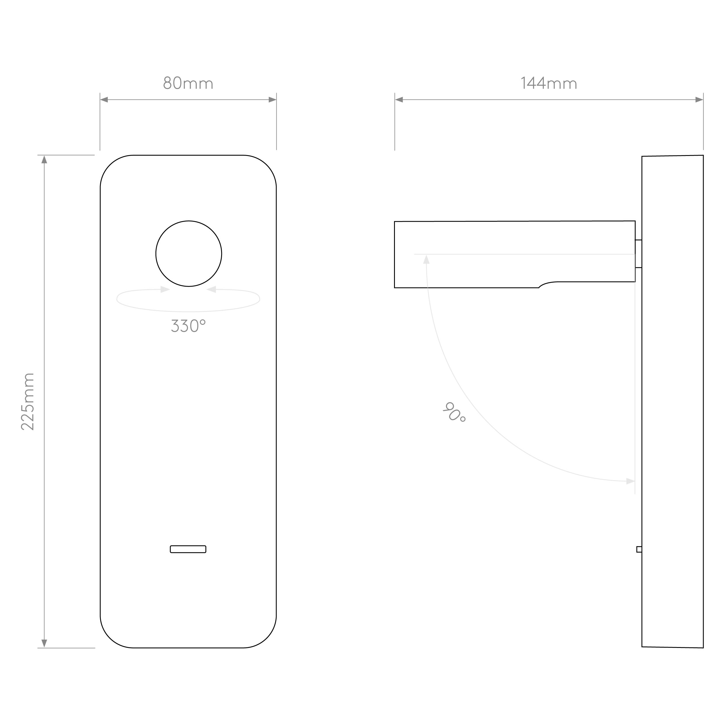 Liseuse d'intérieur.Fini or mat.Fonctionne avec 1 LED de 3,6 W. 2700K.Indice de protection IP 20, peut être utilisé dans les salles d'eau, zone 3.Classe I, relié à la terre.Dimensions : H 225 l 80 P 144 mm