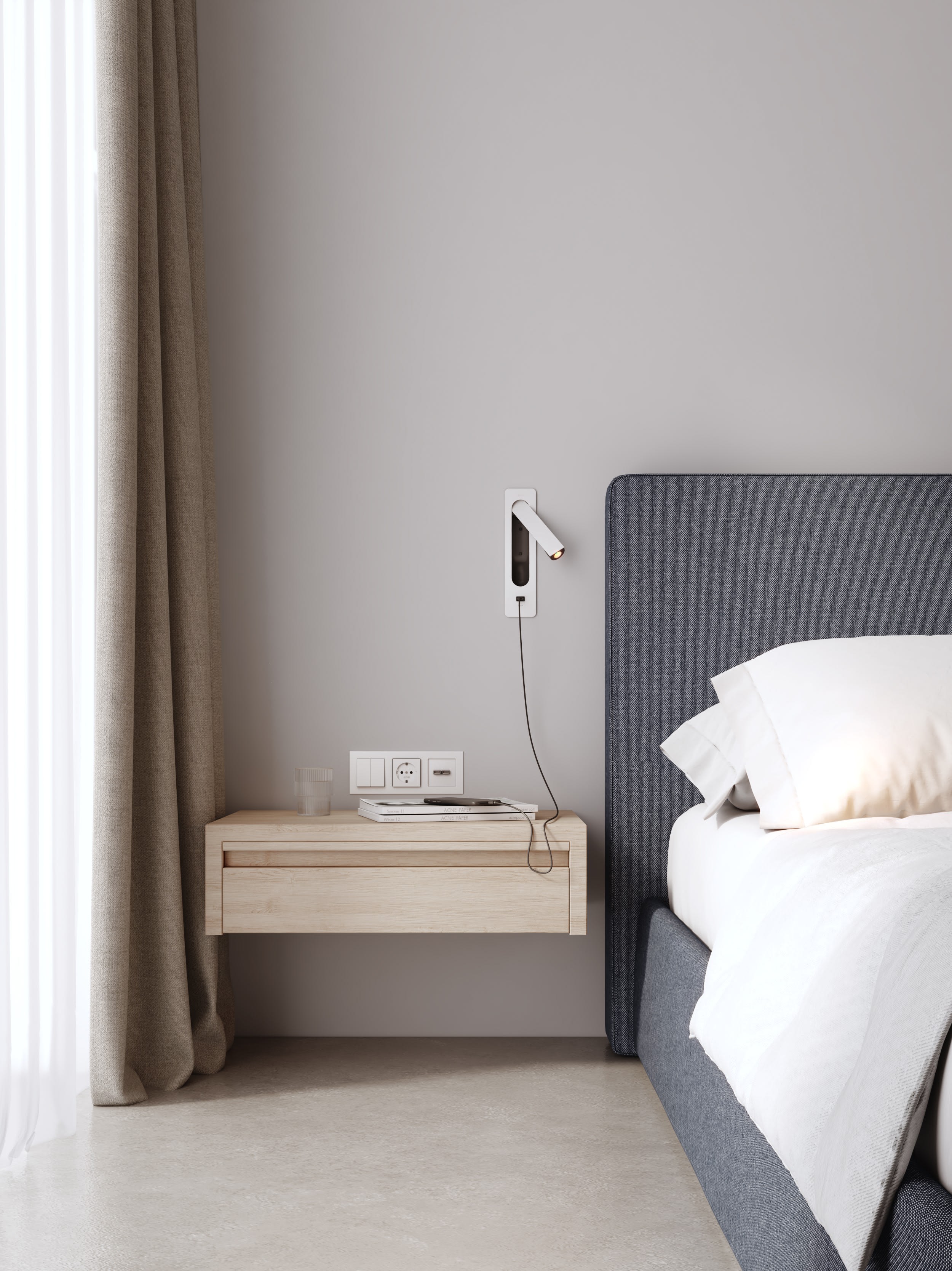 Dix années de développement font de la veilleuse encastrée Keta une merveille d’ingénierie. Conçue pour être montée au mur, verticalement ou horizontalement, elle est dotée d'une source lumineuse encastrée pour réduire l’éblouissement et d’un interrupteur d’allumage-extinction automatique avec mouvement d’accueil. Parmi les détails raffinés, on retiendra des butées pensées pour prévenir l’abrasion et un alignement parfait de la tête et du support.