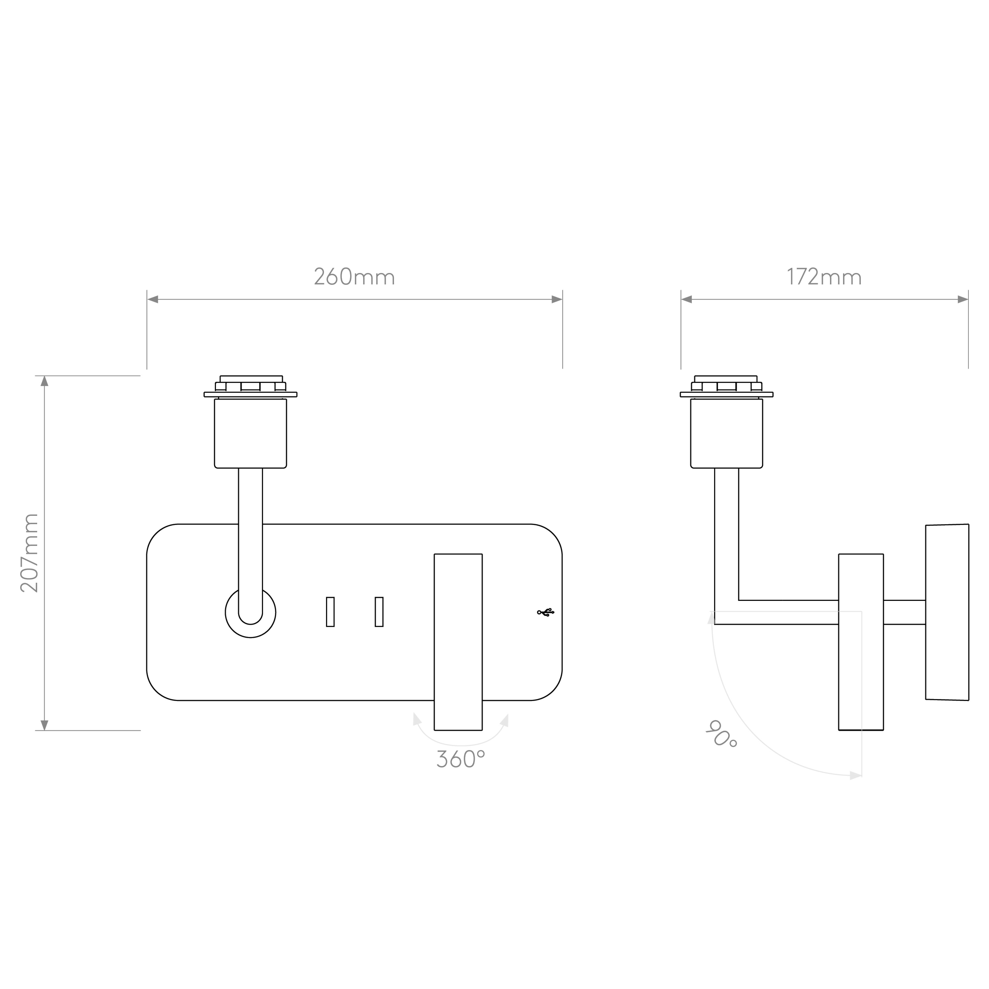 Liseuse Side by Side Grande USB Noir mat référence 1406013 univers Intérieur abat-jour non-inclus source non-incluse 1 x E27 LED 12W Max non-dimmable driver non-requis IP20 Classe I - Mise à la terre Zone 3 statut : actif