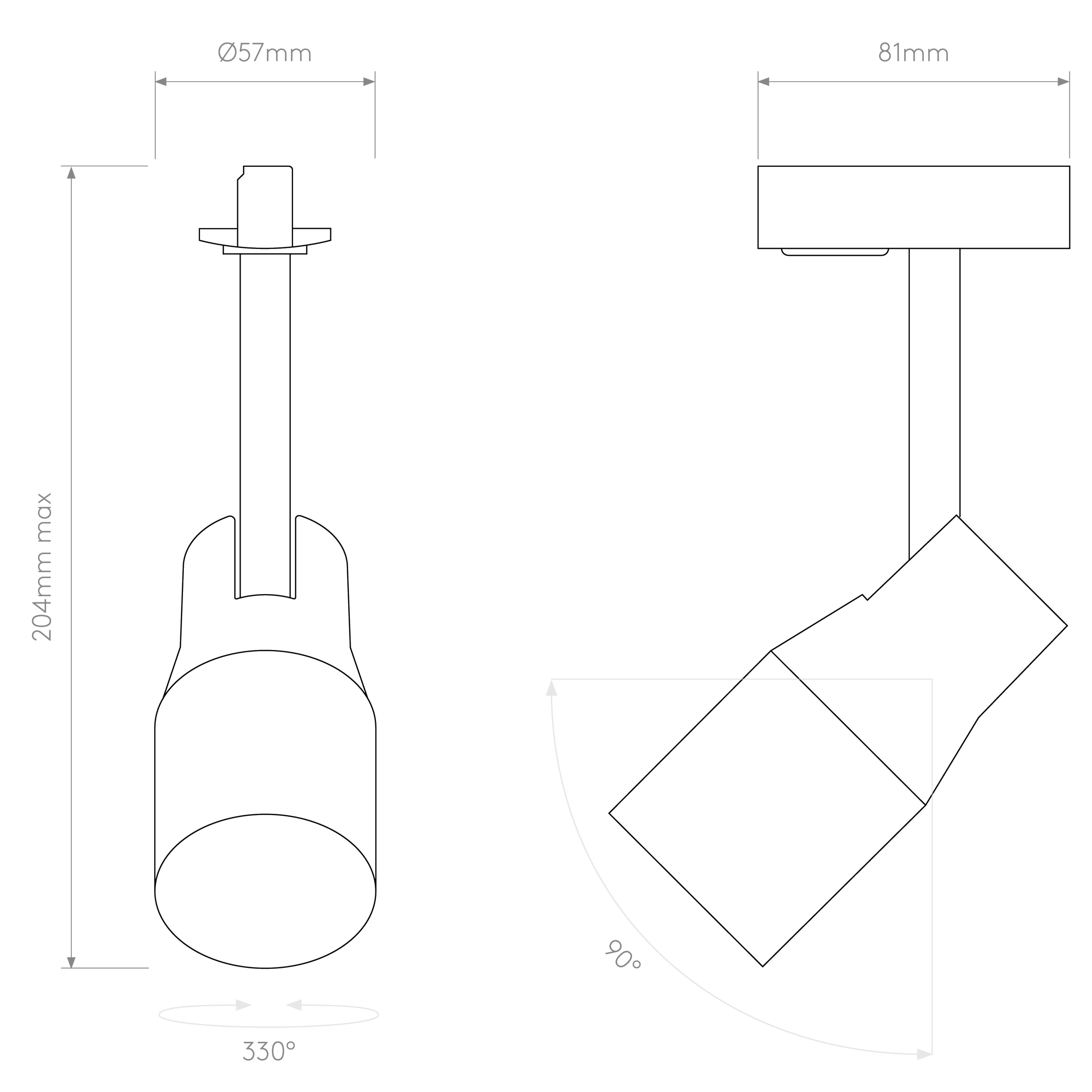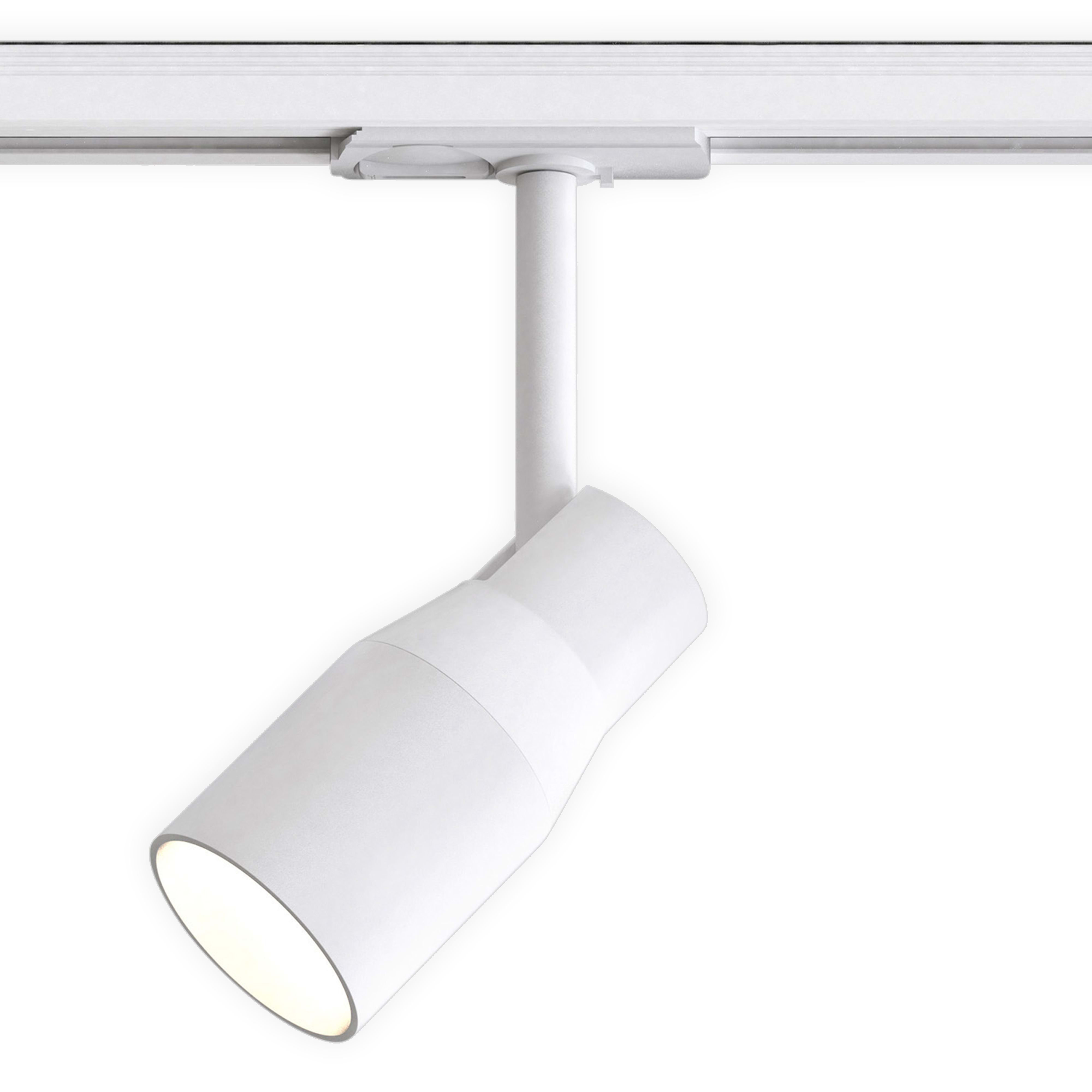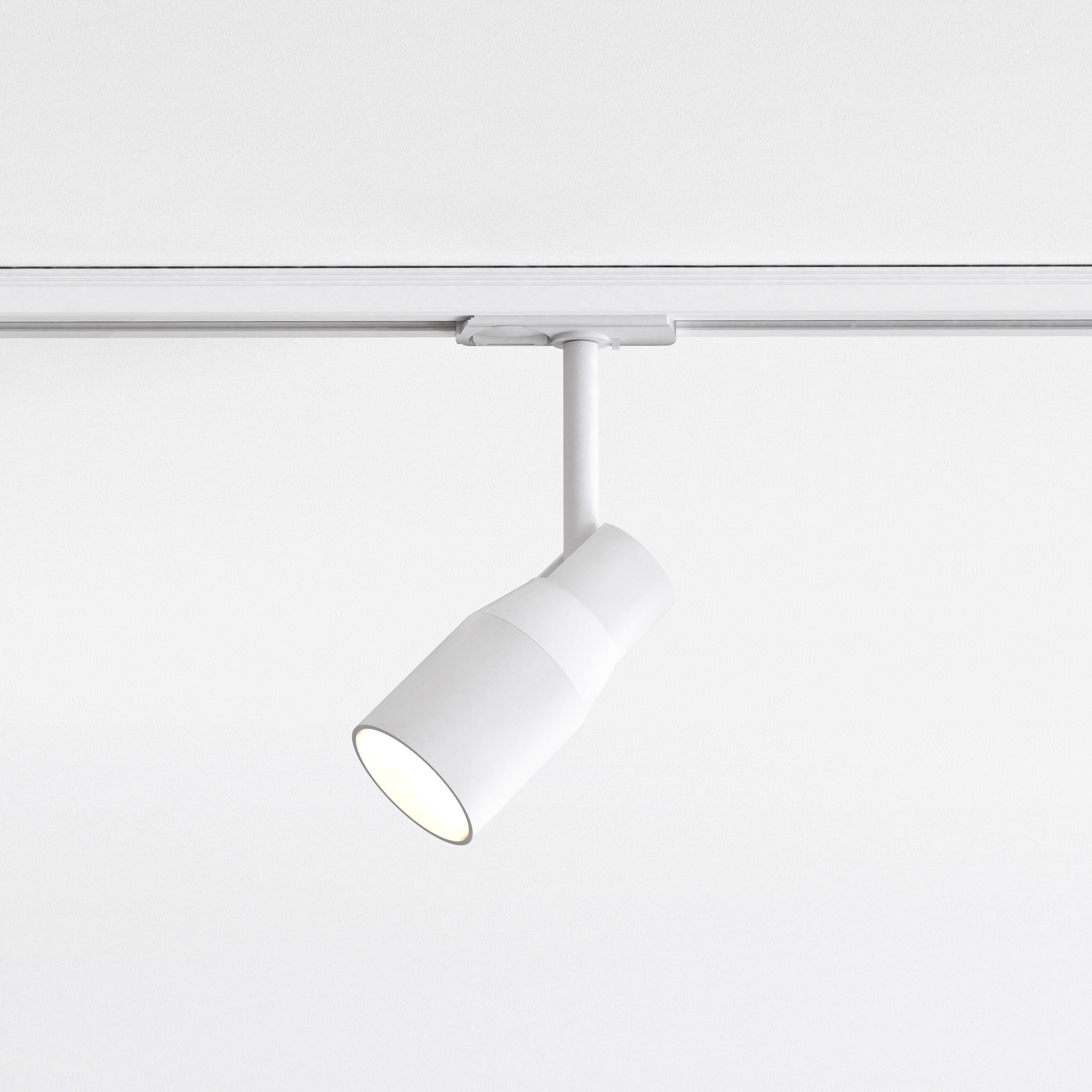 Éclairage sur rails d'intérieur.Fini blanc texturé.Fonctionne avec 1 LED de 6 W (maxi.) GU10.Indice de protection IP 20, peut être utilisé dans les salles d'eau, zone 3.Classe II, double isolation.Dimensions : H 204 (maxi.) P 81 Dia 57 mm