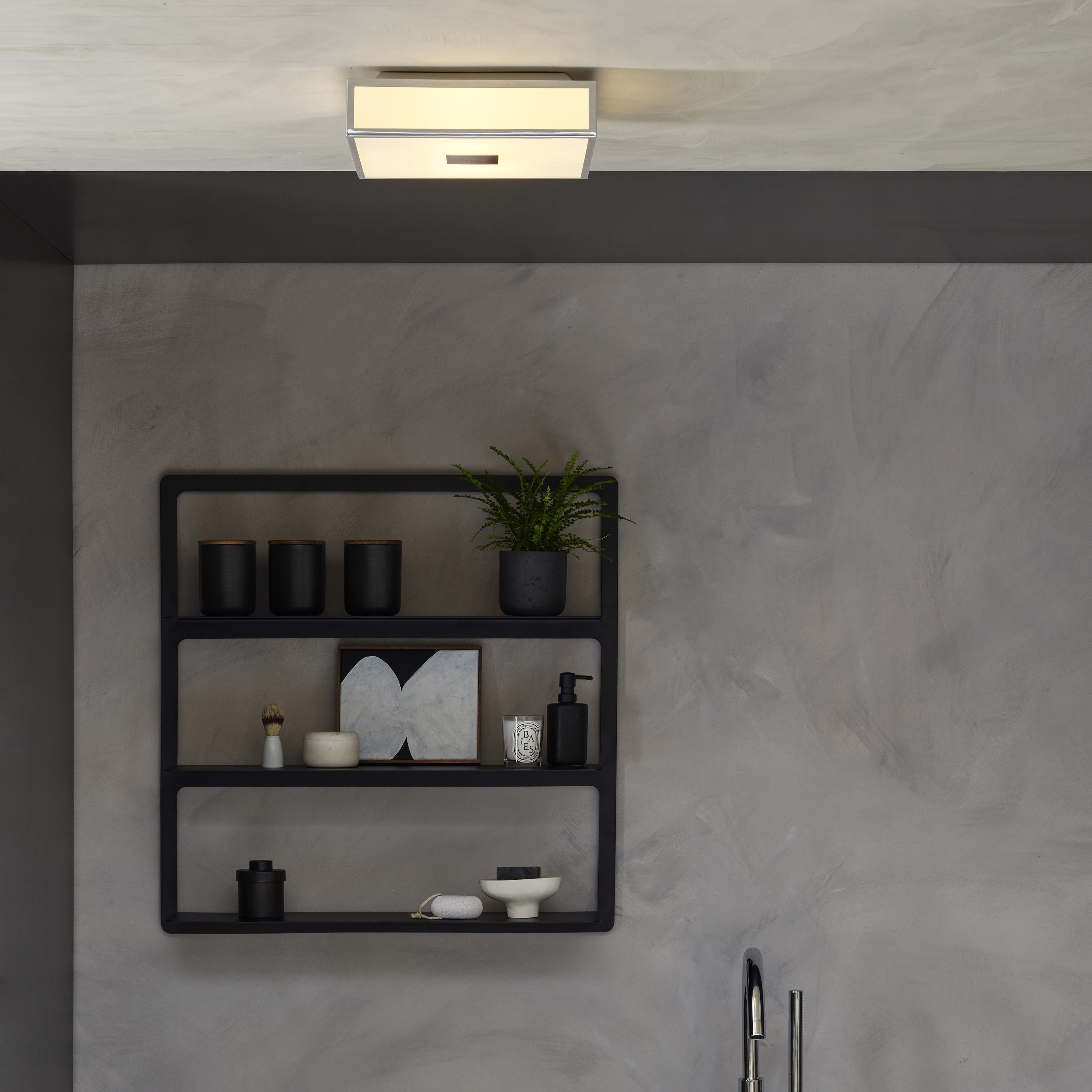 Plafonnier Mashiko Classic 300 Square Chrome poli référence 1121005 univers Salle de bain source non-incluse 2 x E27 12W LED Max dimmable driver non-requis IP44 Classe II - Double isolation Zone 2, 3 statut : actif