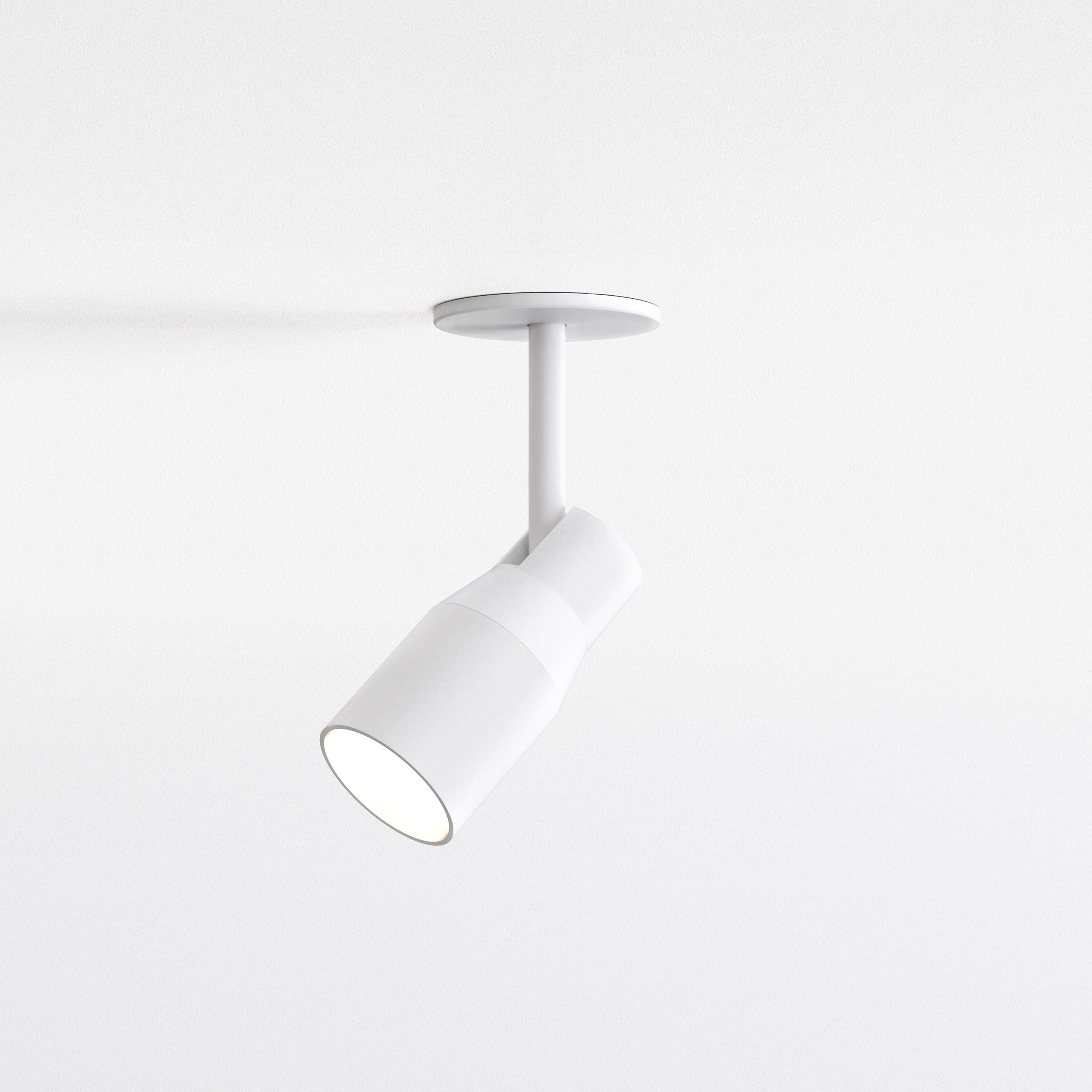 Spot intérieur.Fini blanc texturé.Fonctionne avec 1 LED de 6 W (maxi.) GU10.Indice de protection IP 20, peut être utilisé dans les salles d'eau, zone 3.Classe I, relié à la terre.Dimensions : H 202 (maxi.) P 30 Dia 80 mm