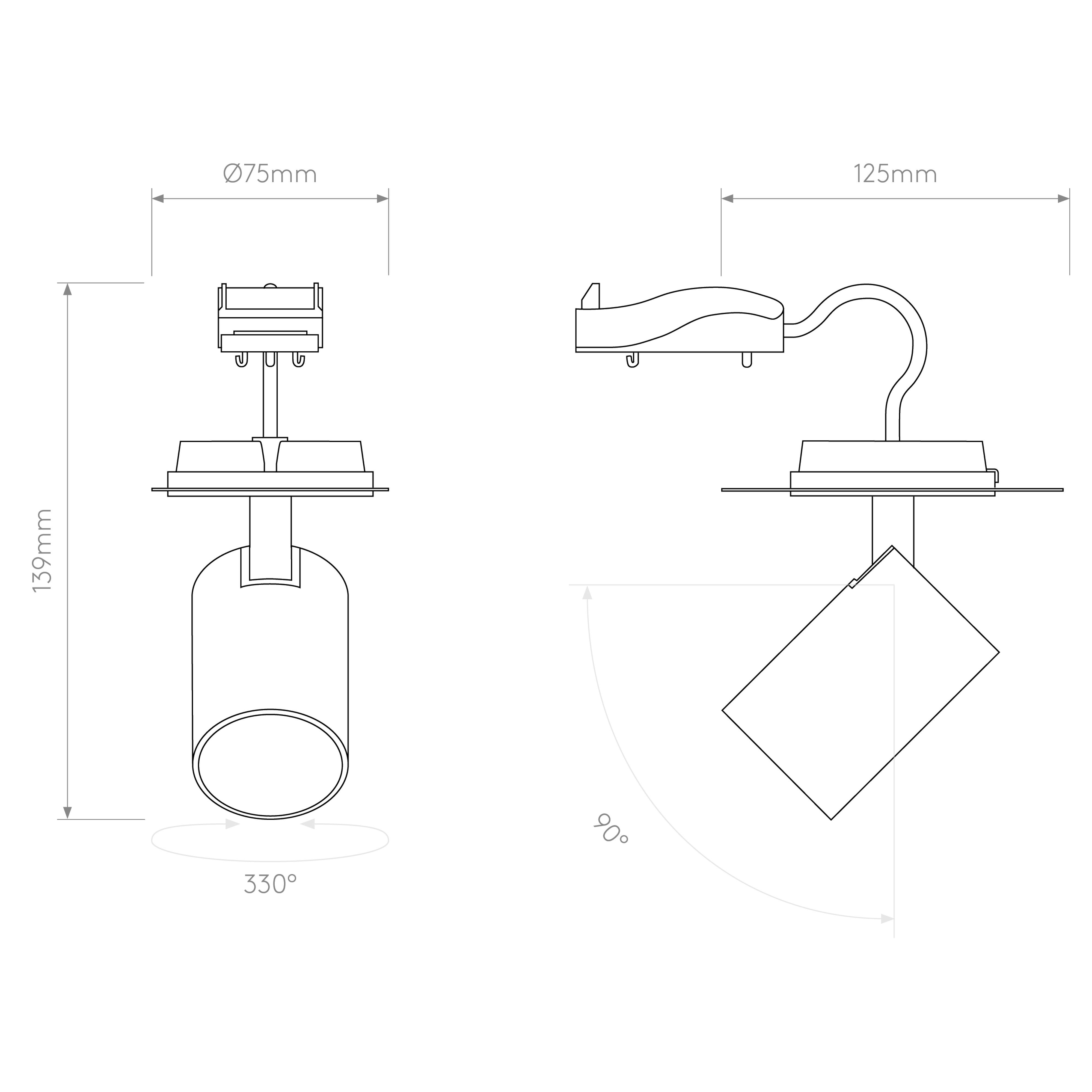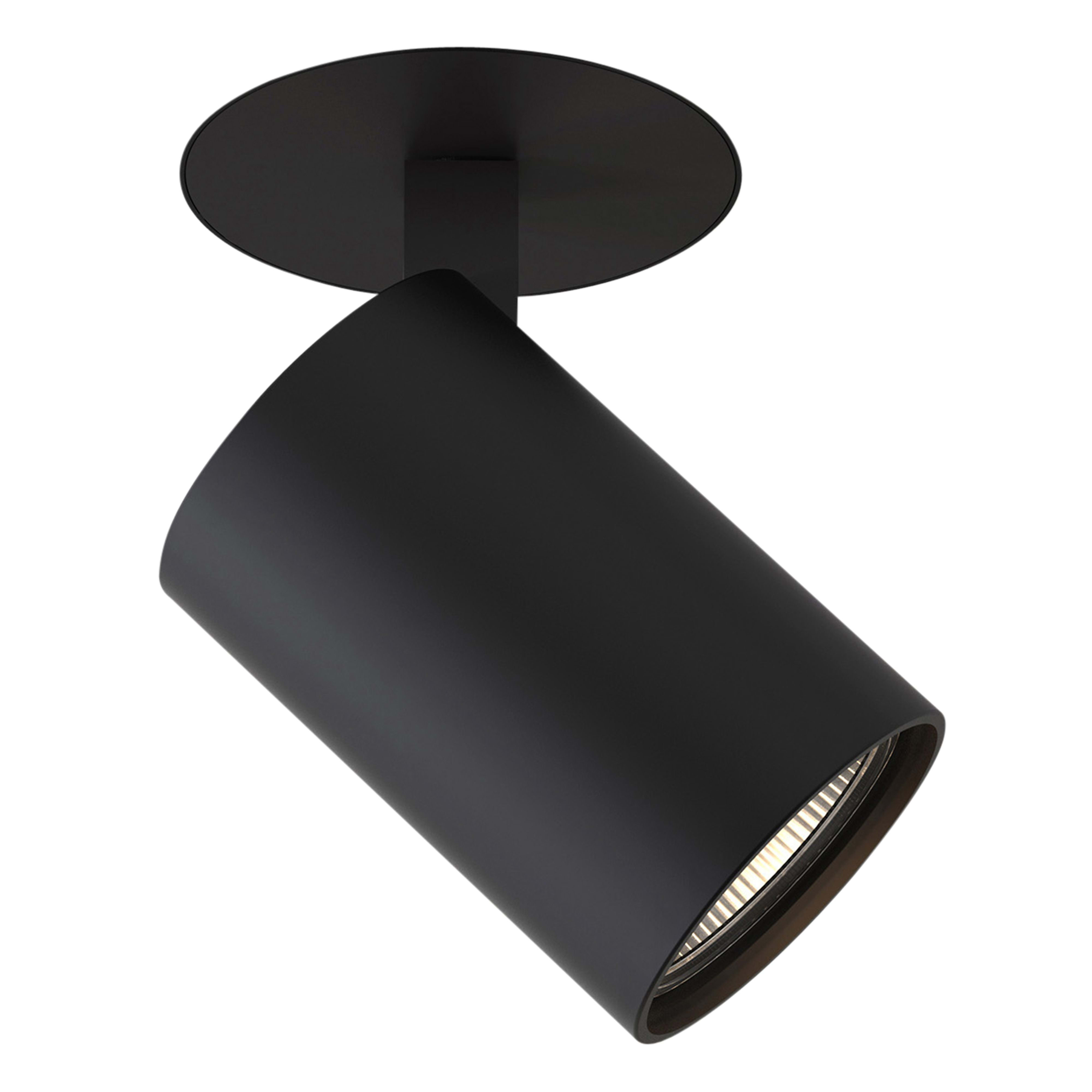 Spot intérieur.Fini noir mat.Fonctionne avec 1 LED de 6 W (maxi.) GU10.Indice de protection IP 21.Classe I, relié à la terre.Dimensions : H 139 P 125 Dia 75 mm