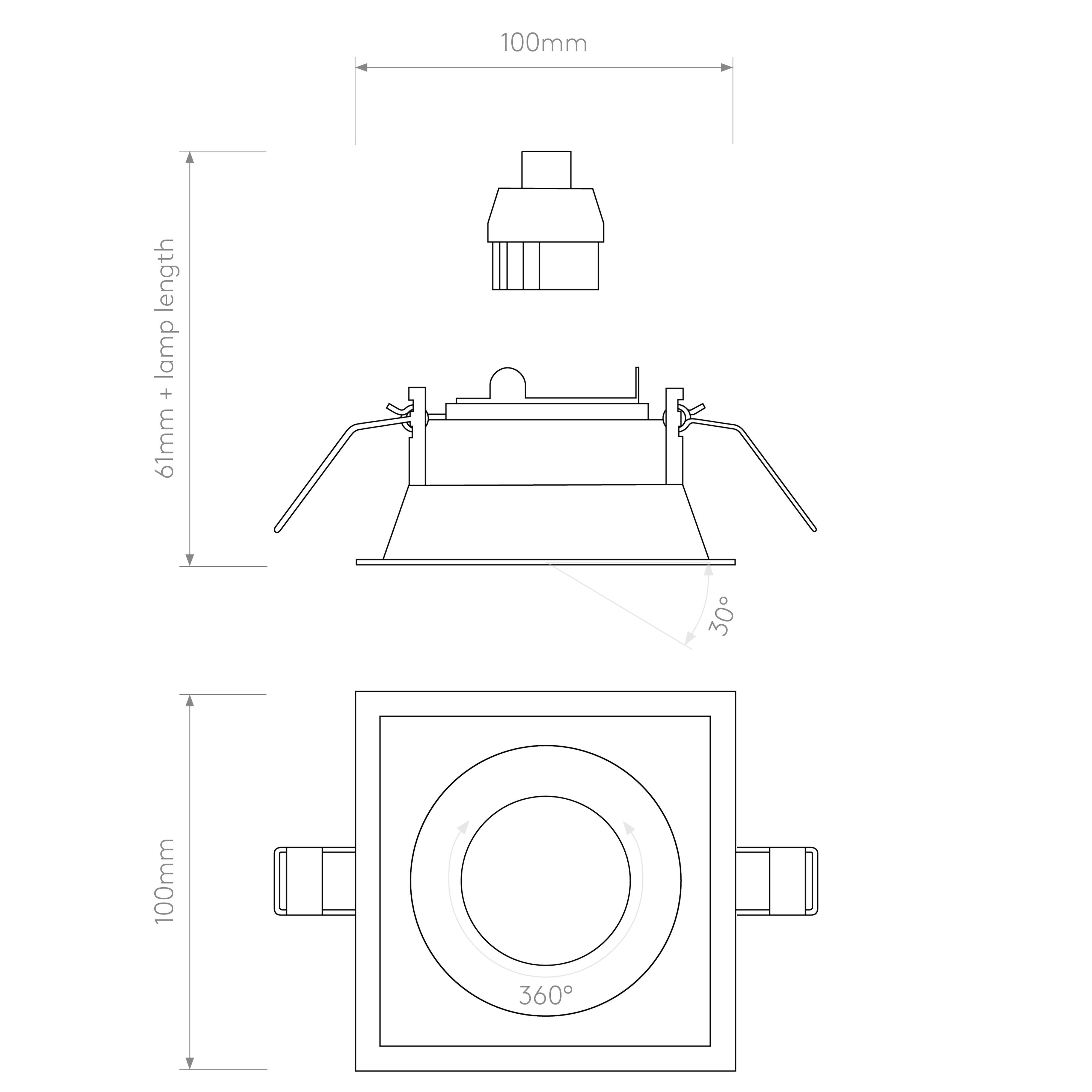 Downlight intérieur.Fini blanc mat.Fonctionne avec 1 LED de 6 W (maxi.) GU10.Indice de protection IP 20, peut être utilisé dans les salles d'eau, zone 3.Classe II, double isolation.Dimensions : H 115 l 100 P 100 mm