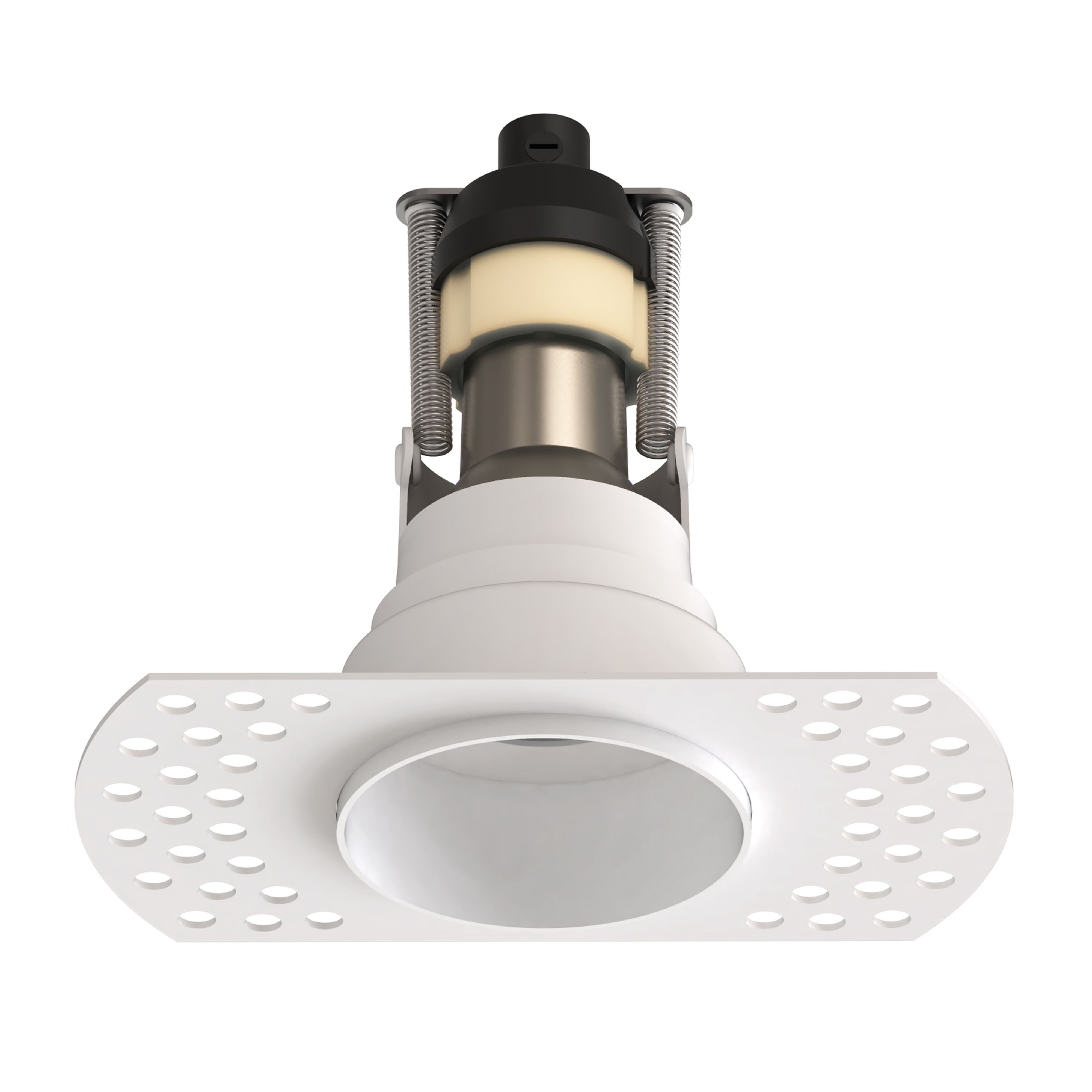 Le modèle Trimless Mini est un petit downlight encastré, simple, en blanc mat, idéal pour éclairer les espaces plus petits, comme les couloirs et les alcôves. Pensé pour être intégré au plâtre dans un plafond, il offre un rendu épuré et sans démarcation. Utilisé avec une ampoule GU10 35 mm, ce downlight novateur se coordonne harmonieusement avec les autres éléments de notre collection Trimless.