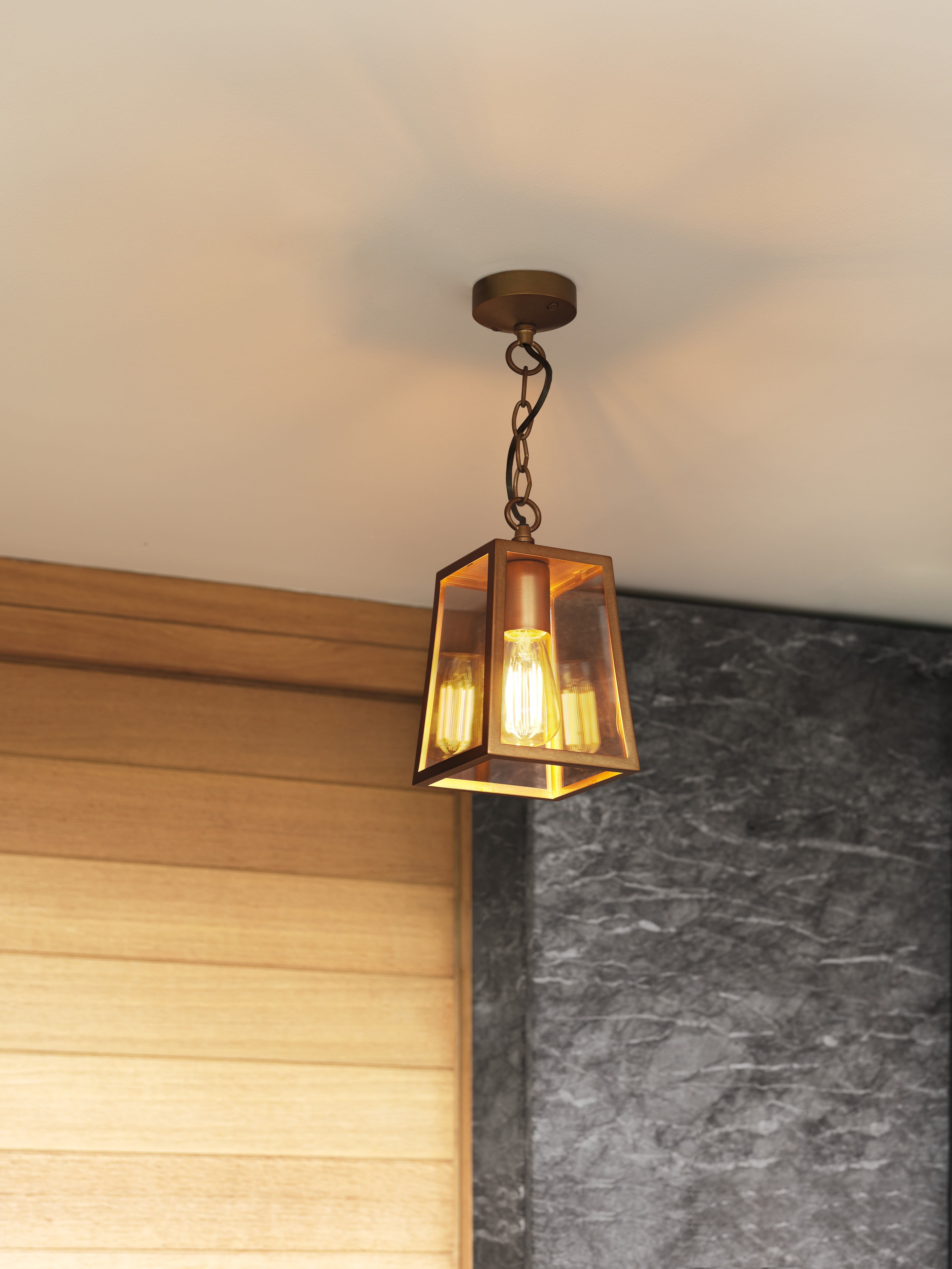 Suspension Calvi Pendant 215 Laiton antique référence 1306006 univers Extérieur source non-incluse 1 x E27 LED 12W Max dimmable driver non-requis IP23 Classe II - Double isolation Zone 3 statut : En cours de suppression