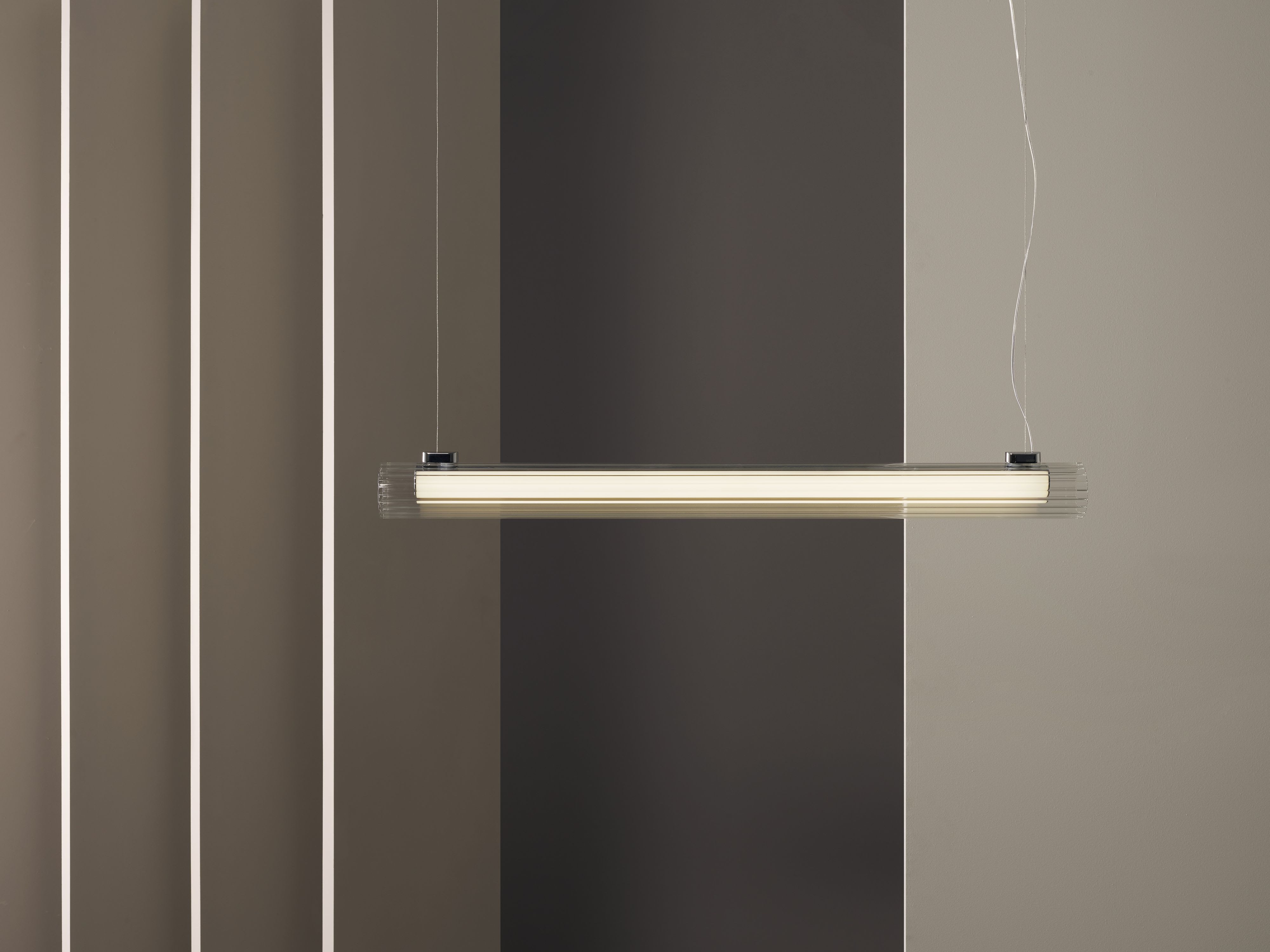 Lampe suspension intérieure.Finition Chrome poli.Trois ampoules LED 6,4W G3. 3000K.Protection IP20, convient aux salles de bain (zone 3).Classe I, mise à la terre.Dimensions : H2113 La1000 P80 mm
